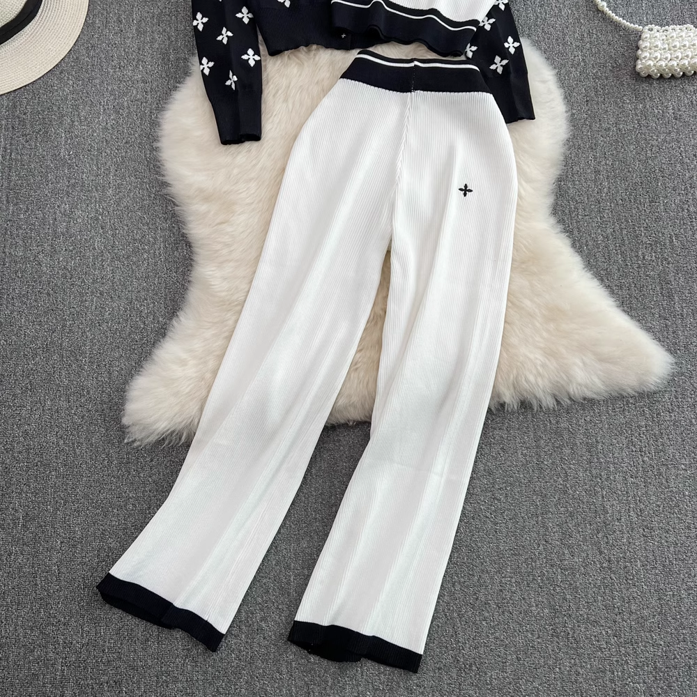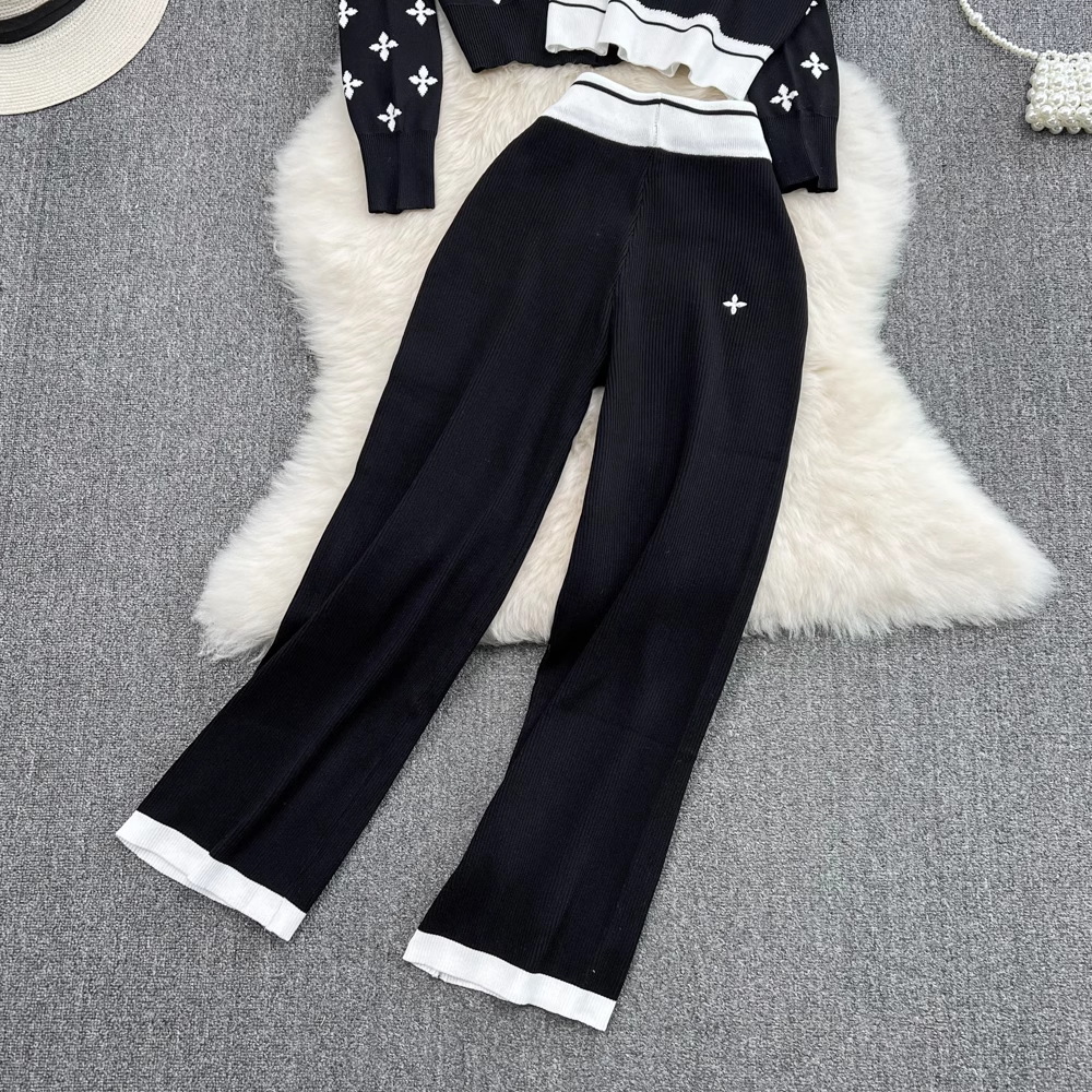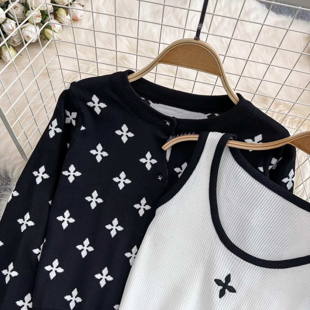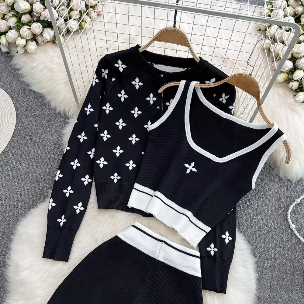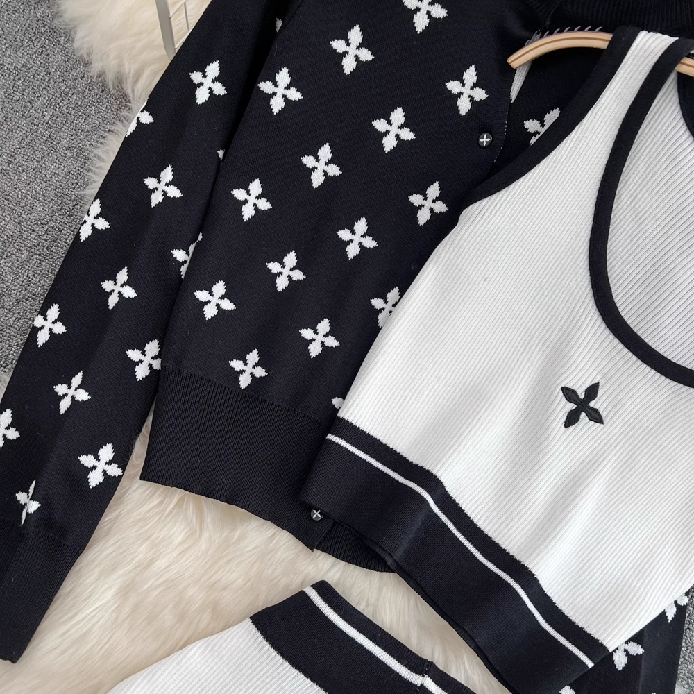 【set】長袖カーディガン+タンクトップ+ガウチョパンツニット3点セットF7986