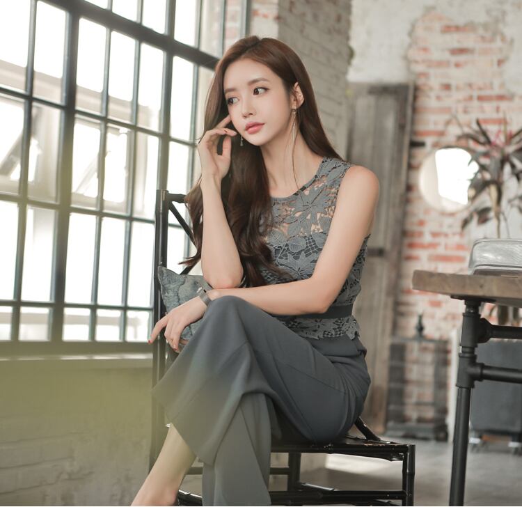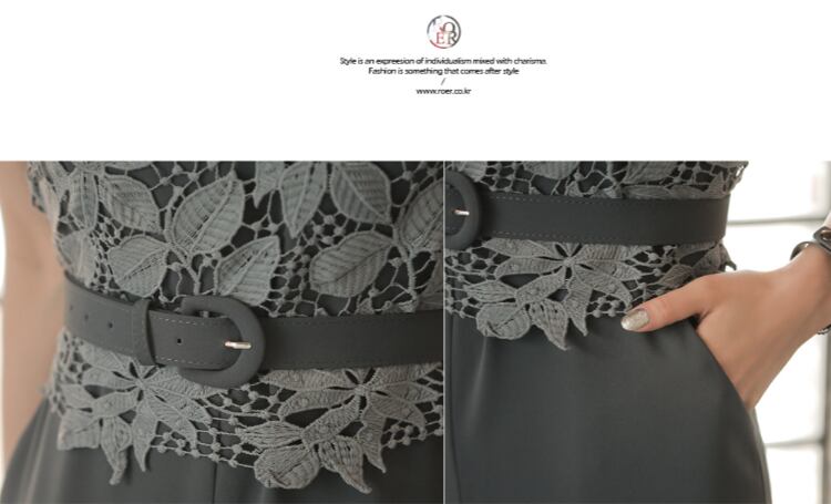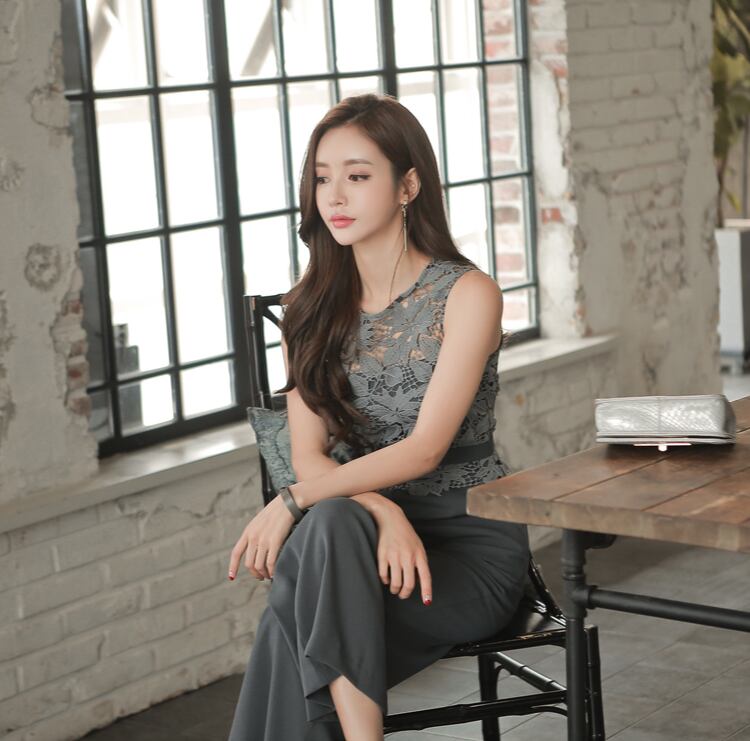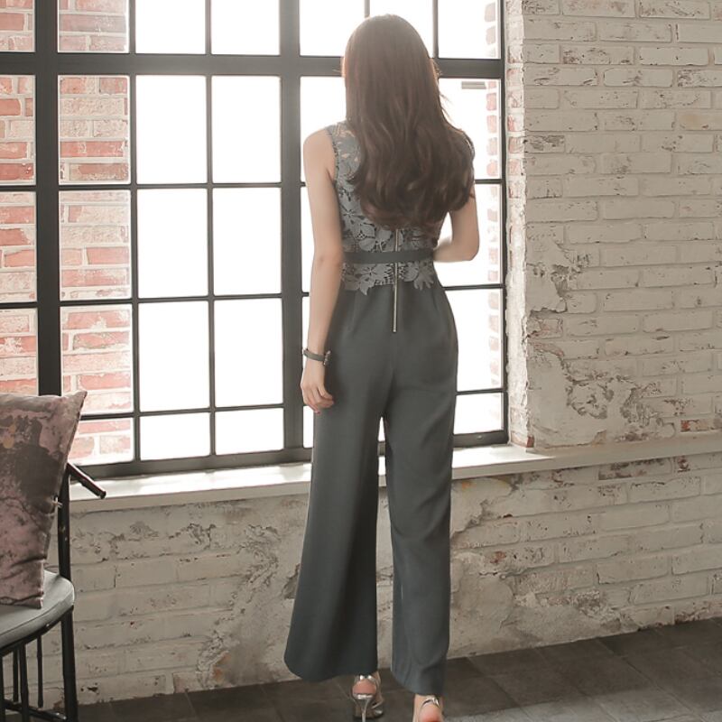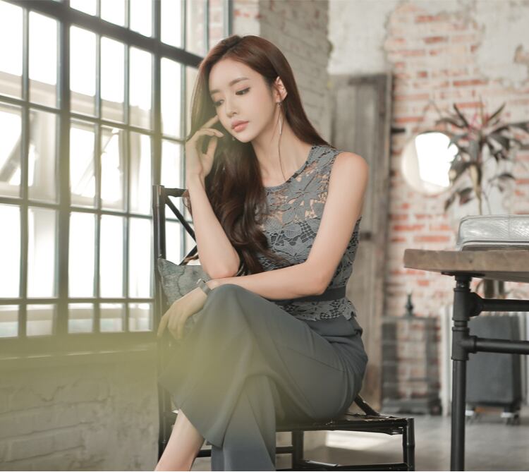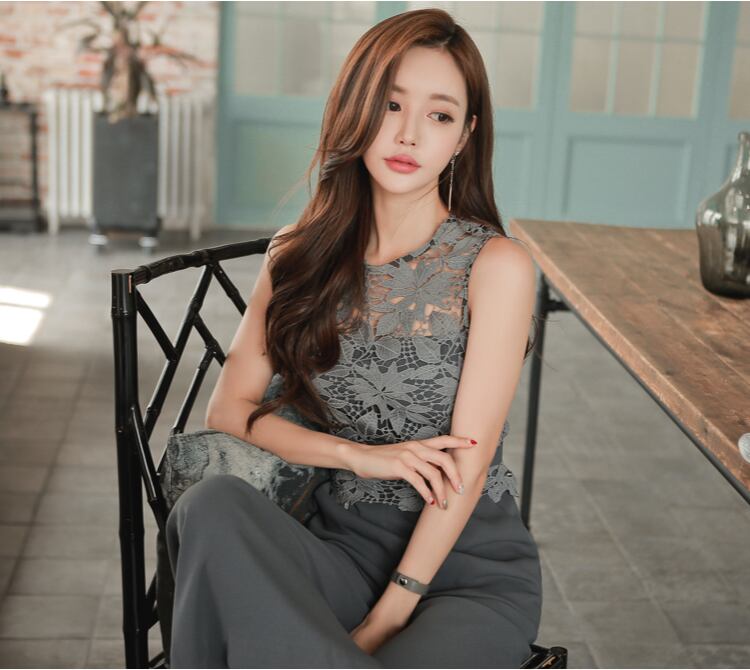 【set】美人度アップ!レース洋気切り替えノースリーブハイウエストオールインワン G0426