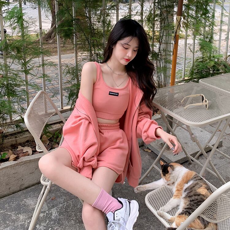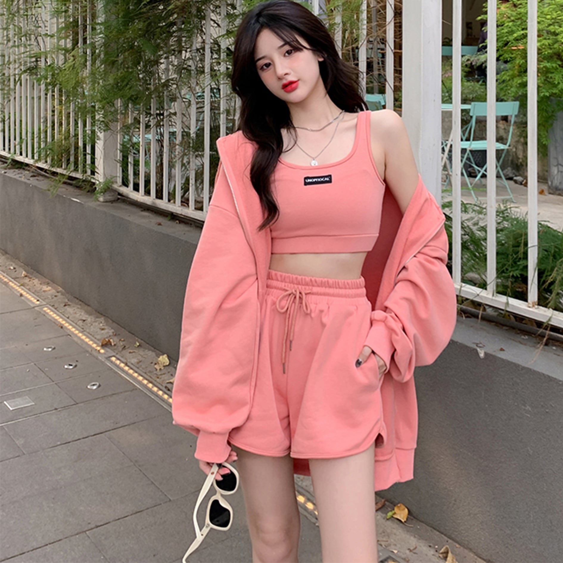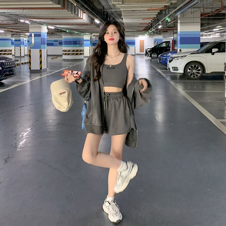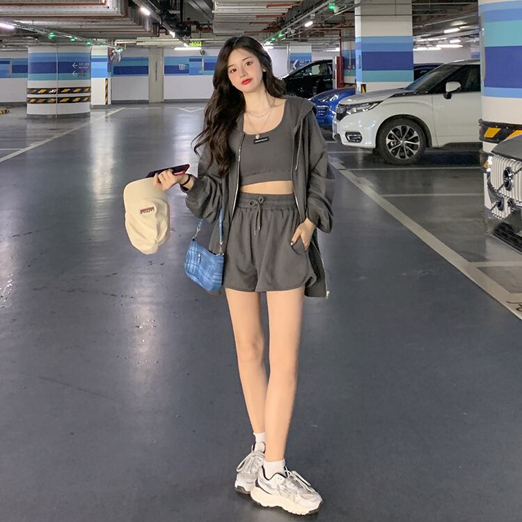 【set】人気を獲得?カジュアル気質満点アウター+キャミソール+ショートパンツ3点セット G13531