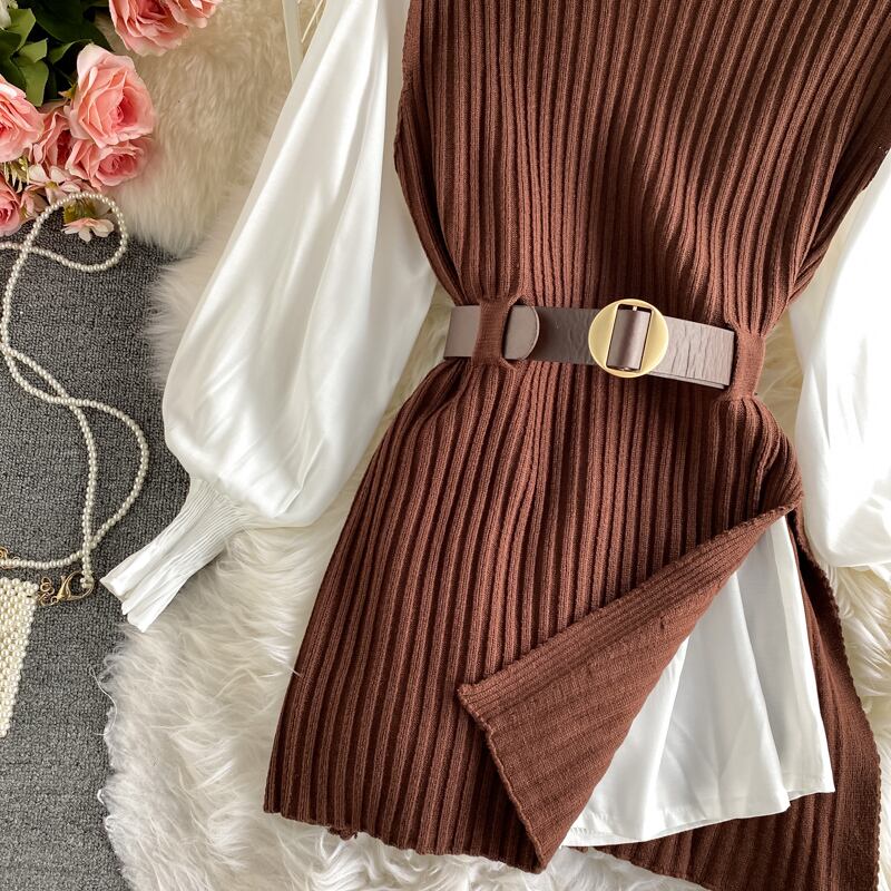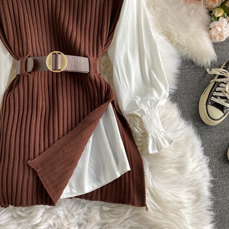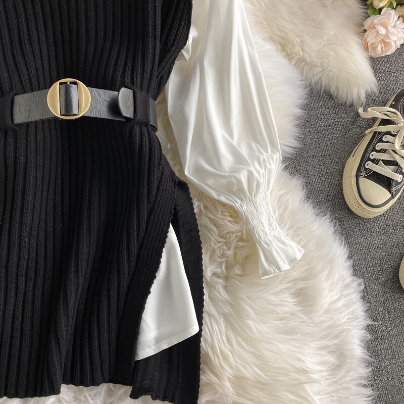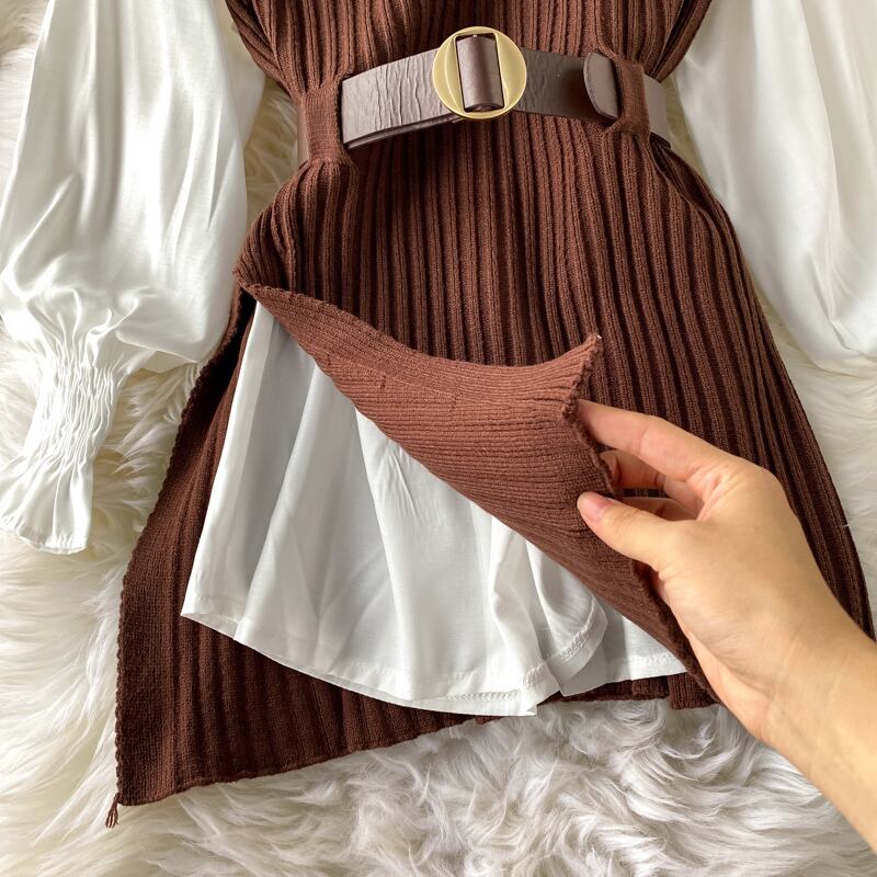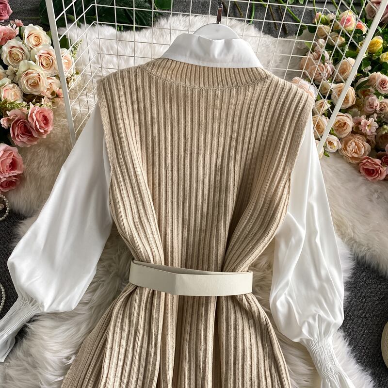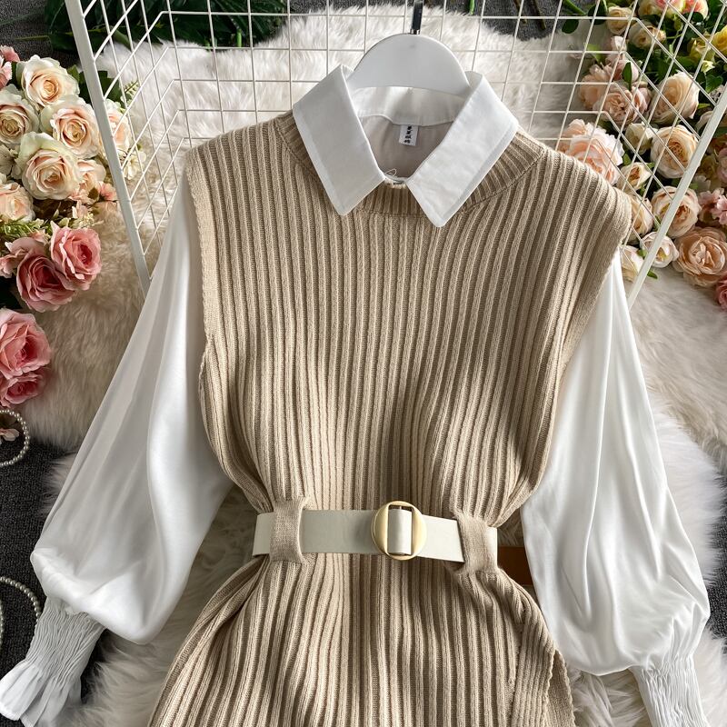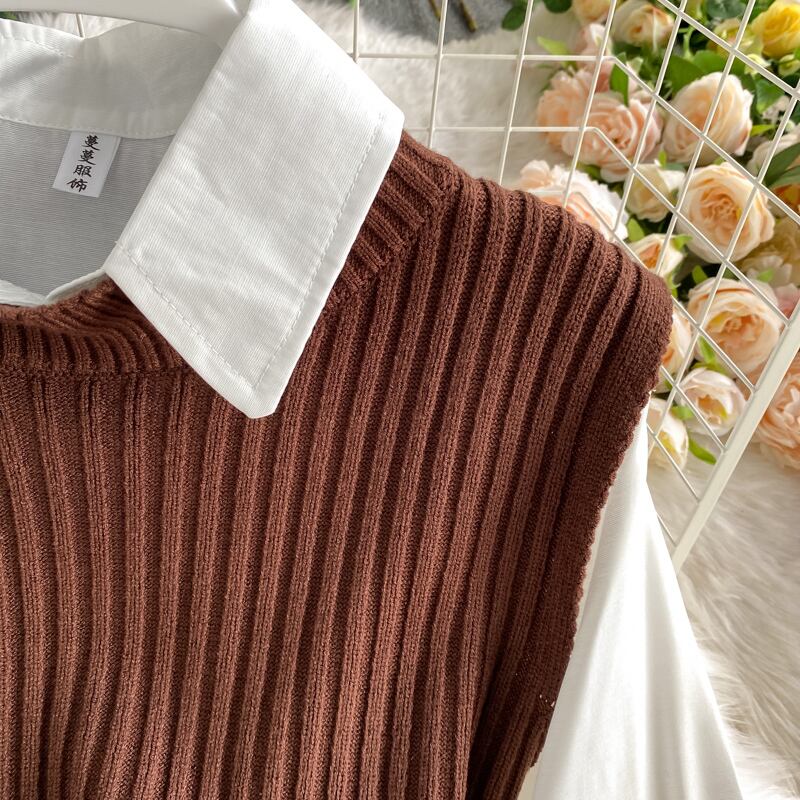 【set】好感度UP!気質満点レトロ韓国系着痩せニットベスト+シャツ2点セット G1682