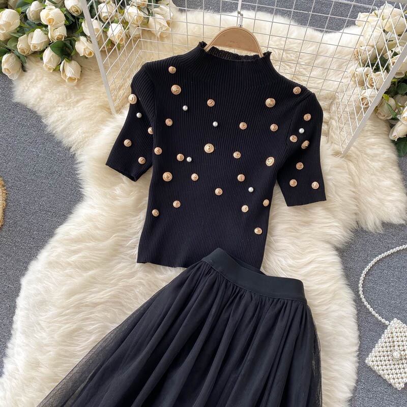 【set】ニットトップス+メッシュスカート2点セットG20201