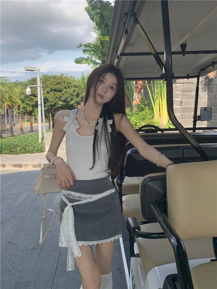 【set】リボンキャミソール+レーススカート2点セットG20413