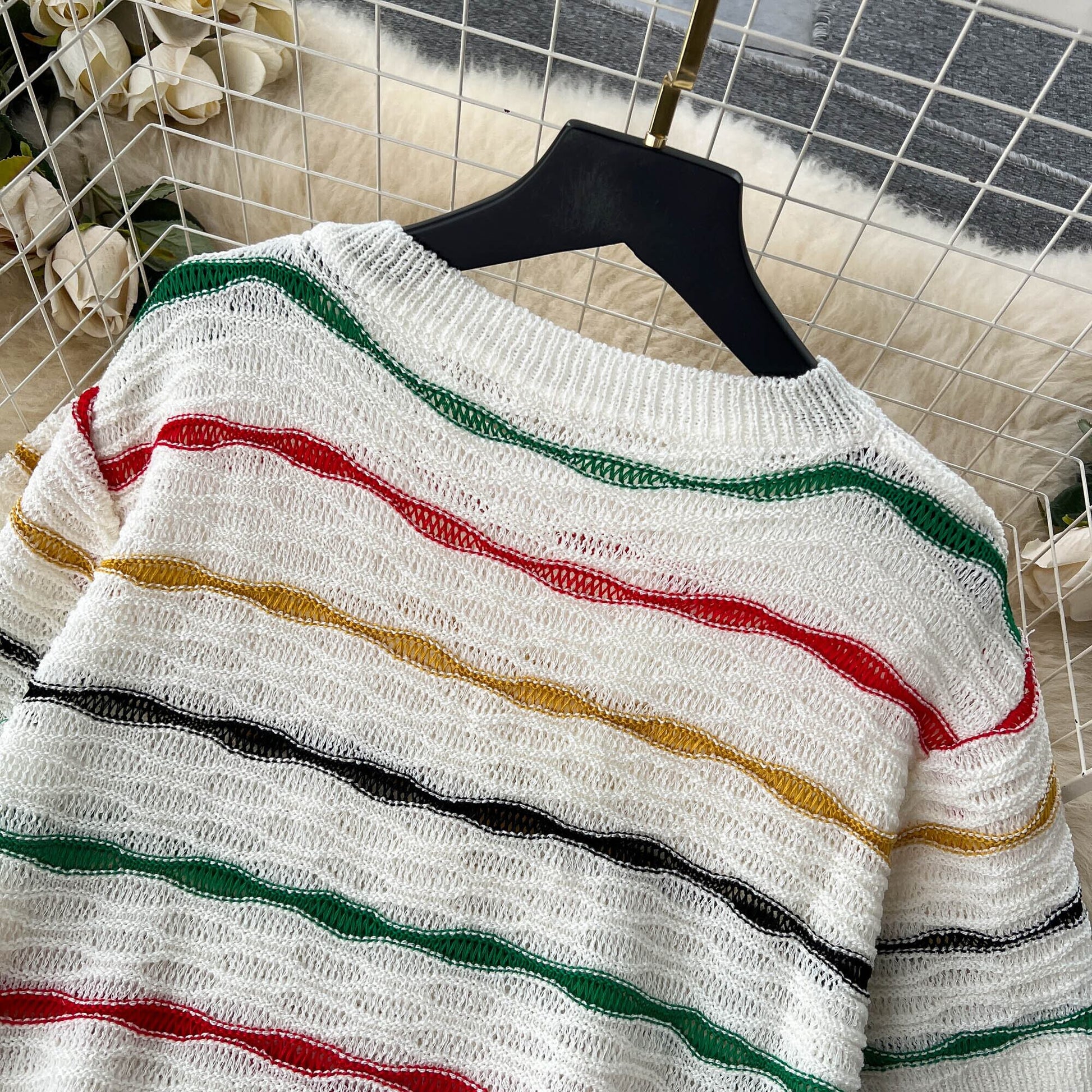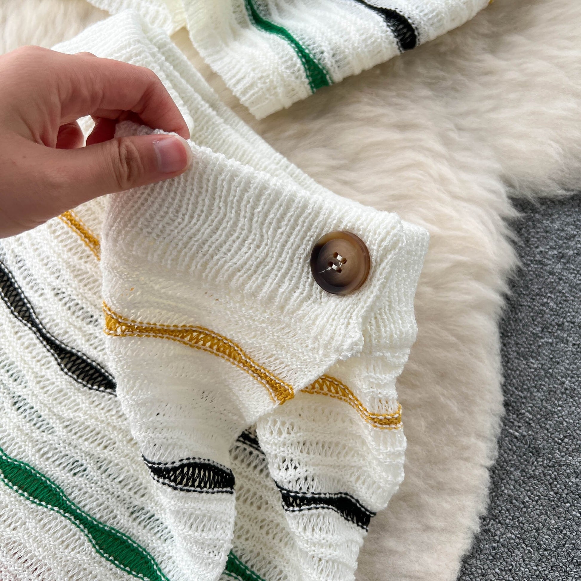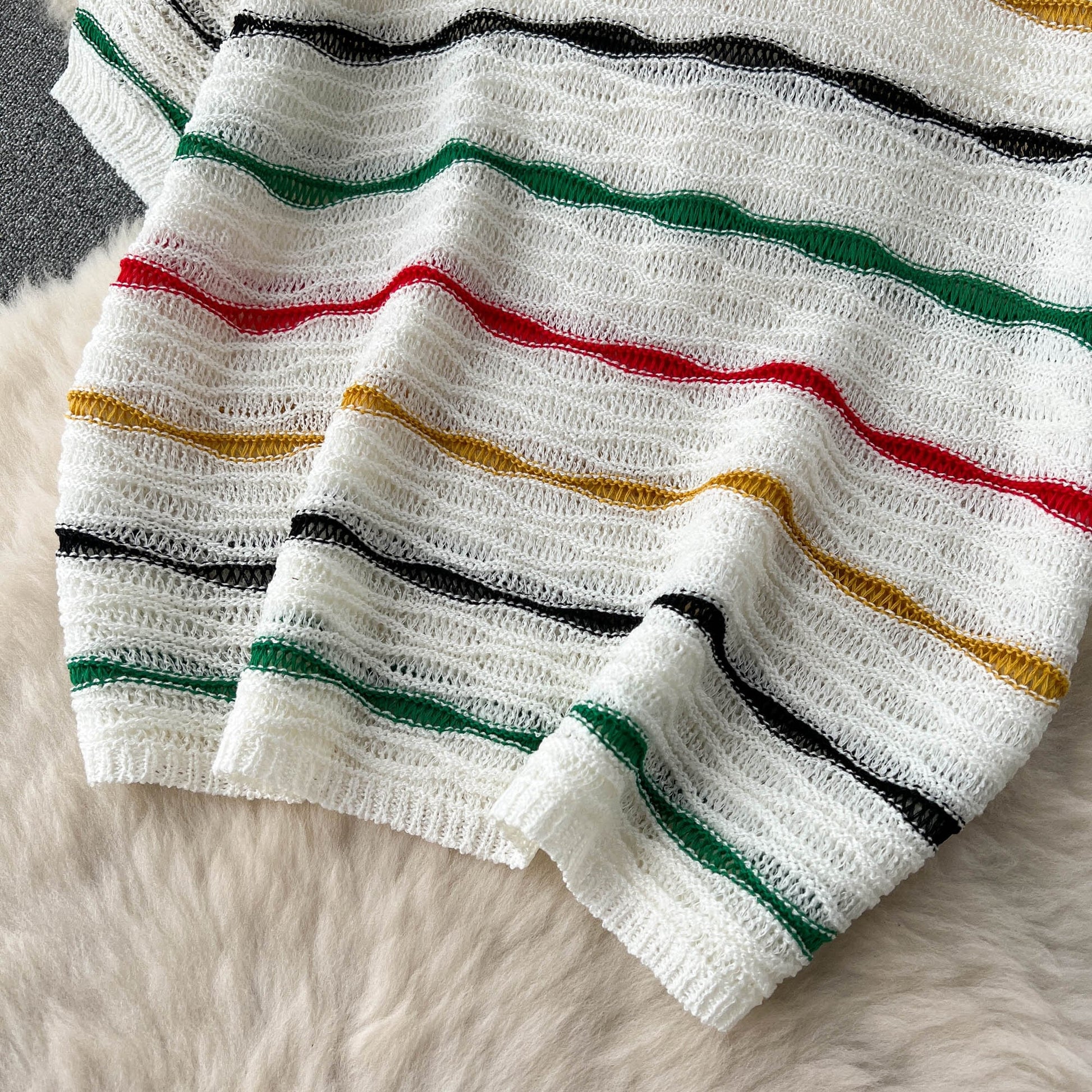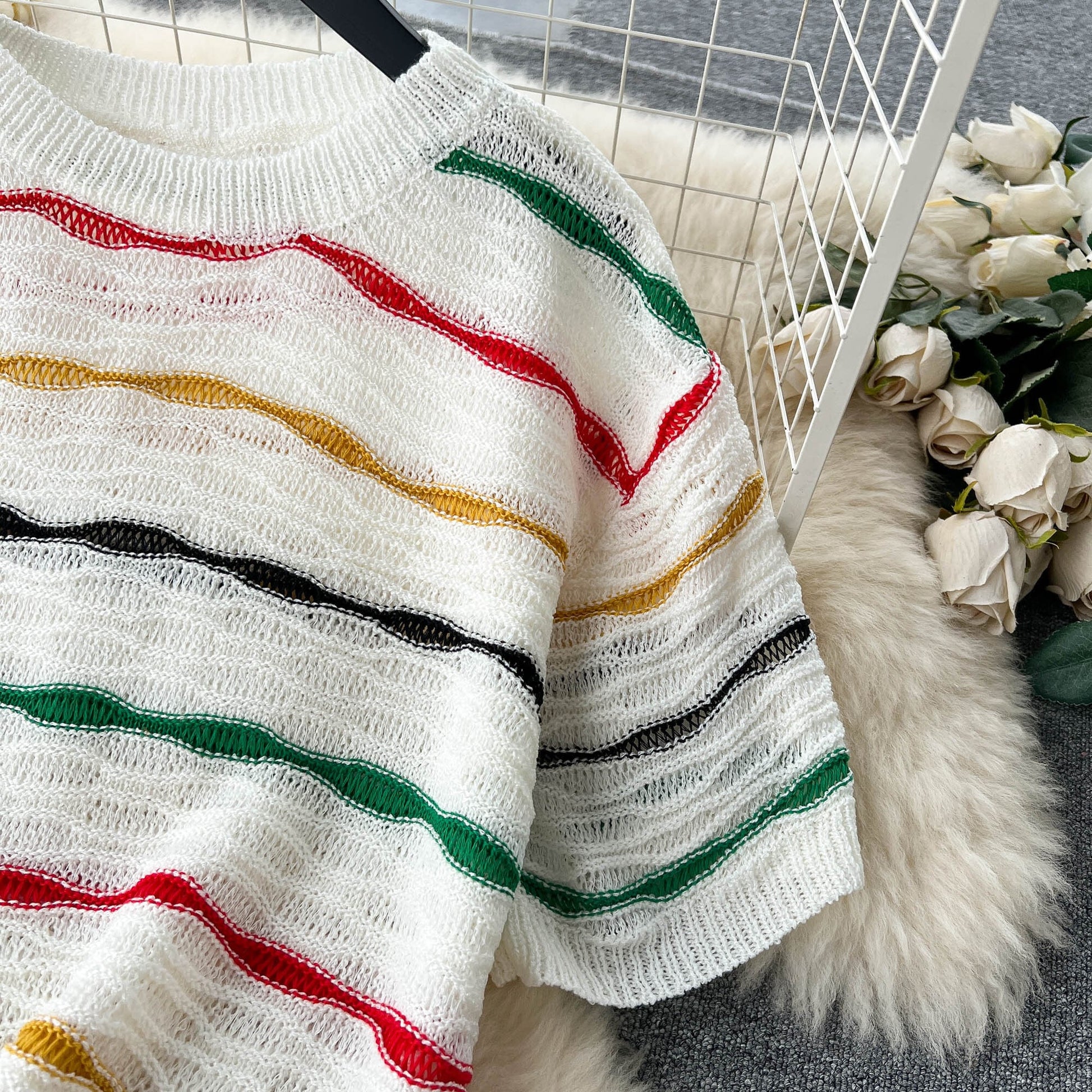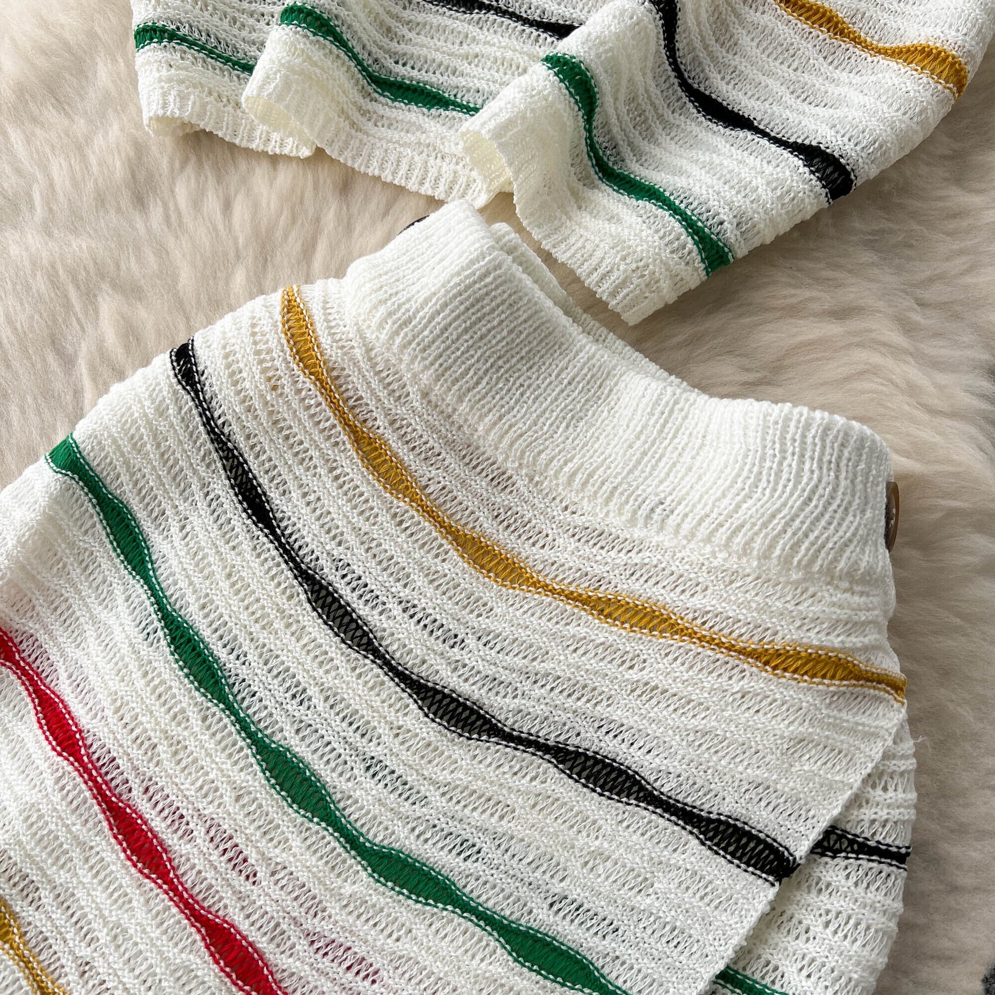 【set】ストライプ柄ニットトップス+スカート2点セットG20661