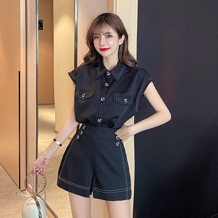 【set】ノースリーブトップス+ショートパンツ2点セットG20710