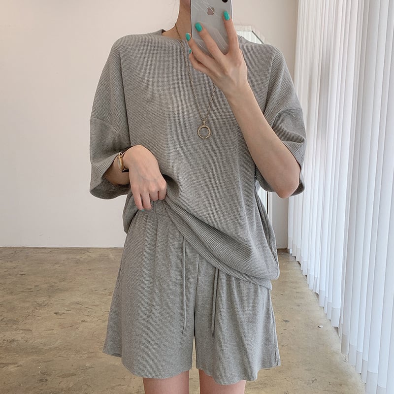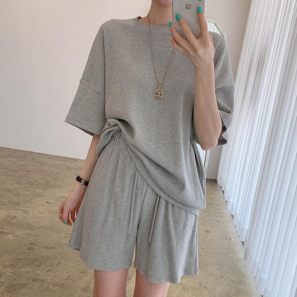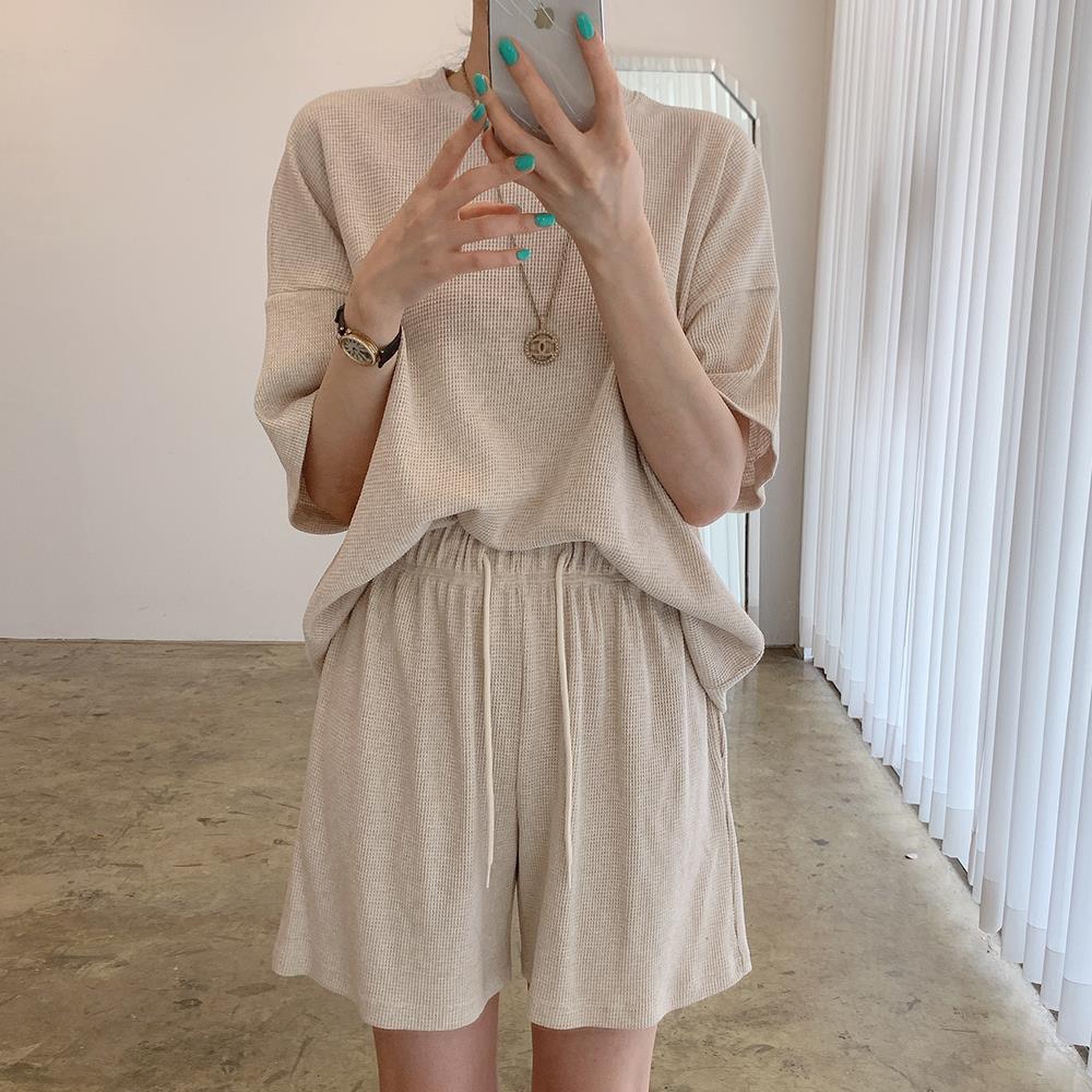 【set】薄手ニットトップス+ショートパンツ2点セットG21376