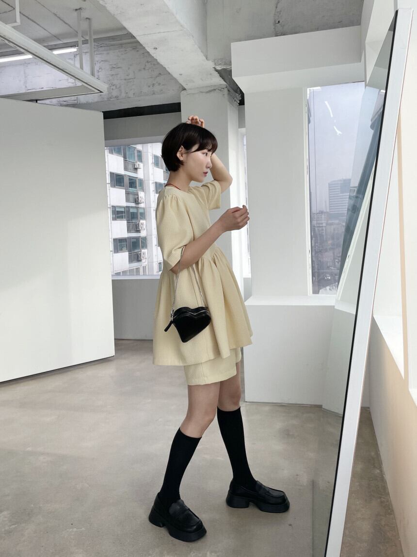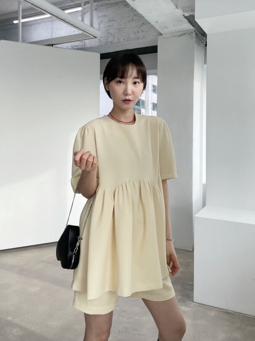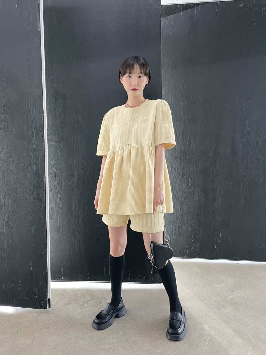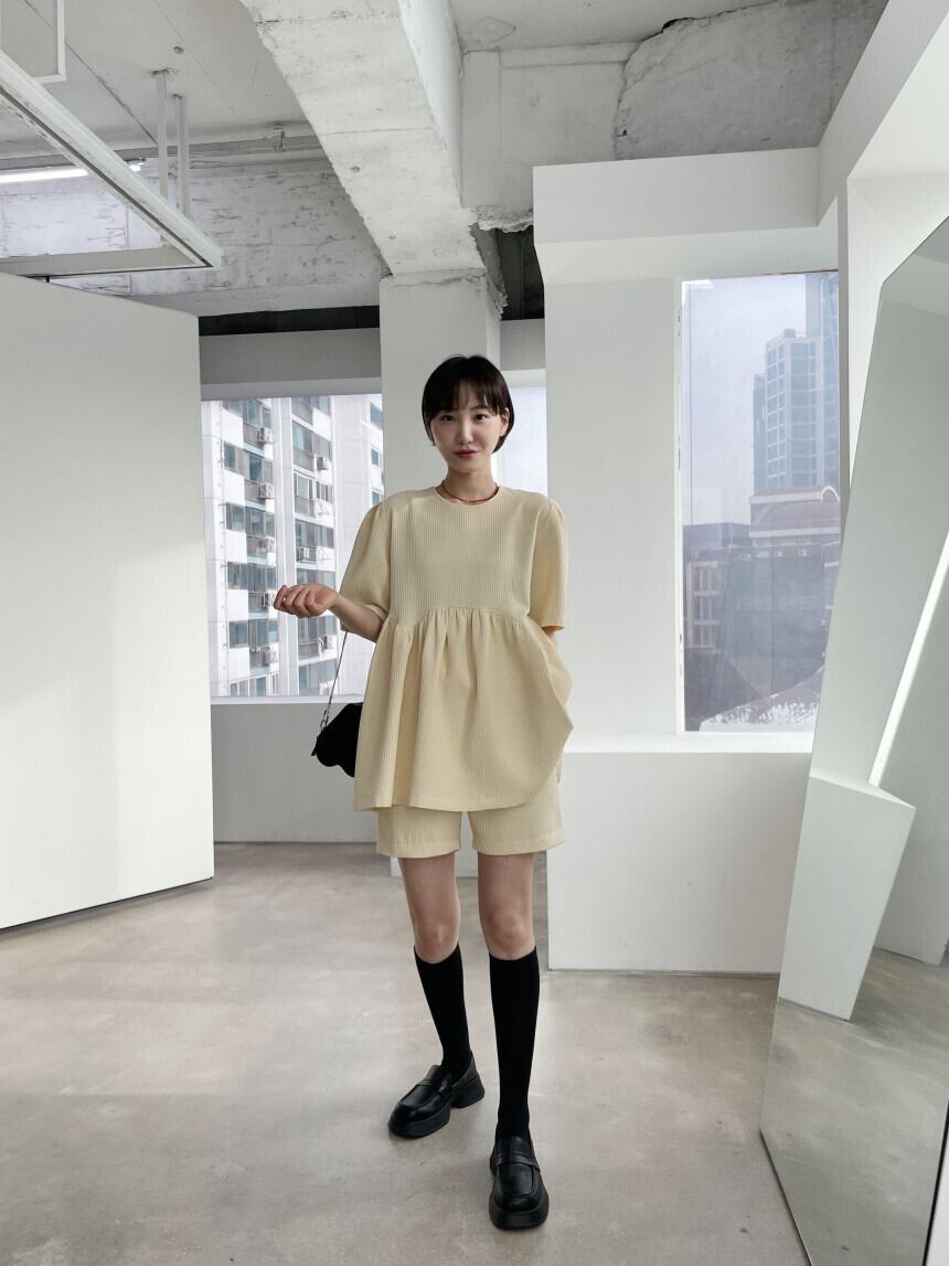 【set】ラウンドネックトップス+ショートパンツ2点セットG21509