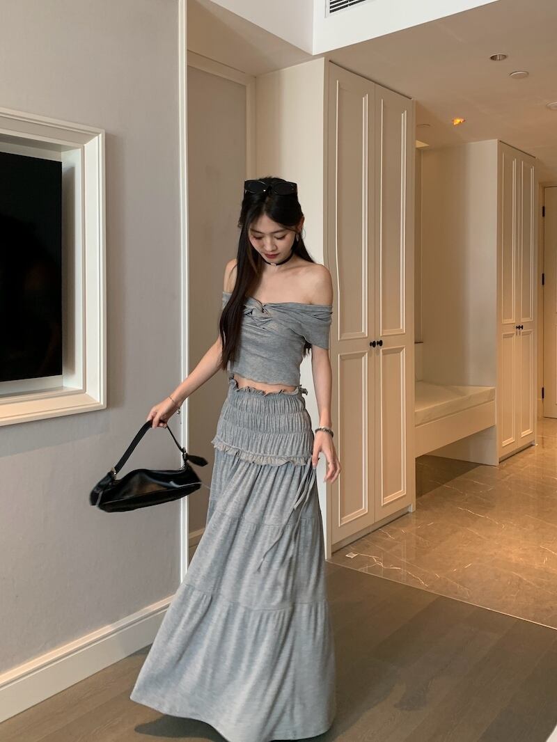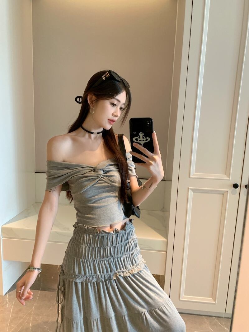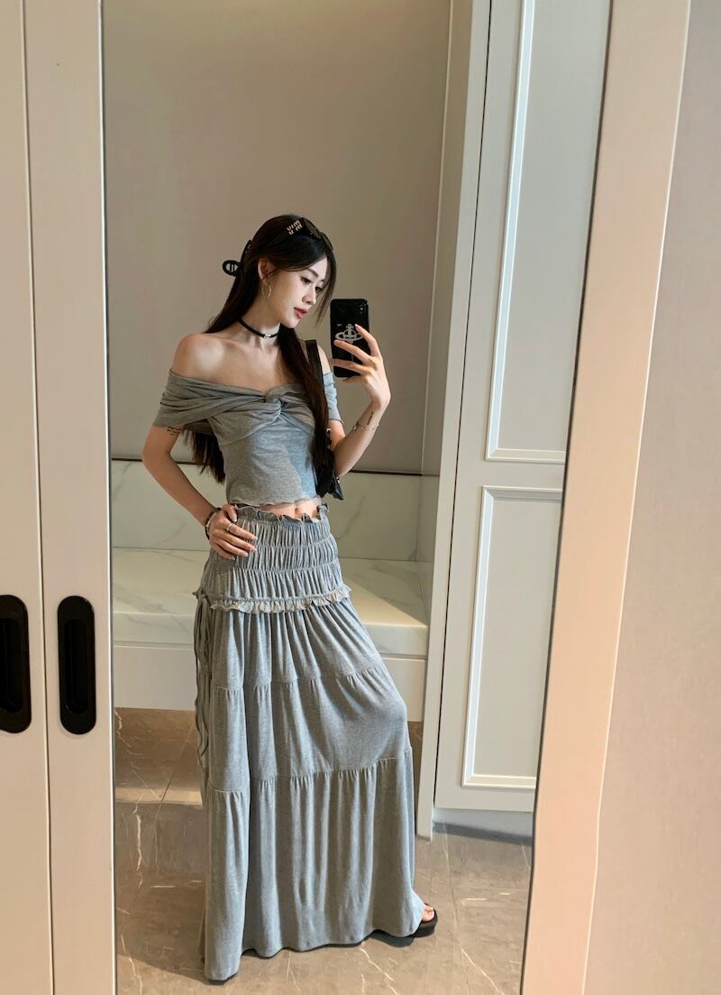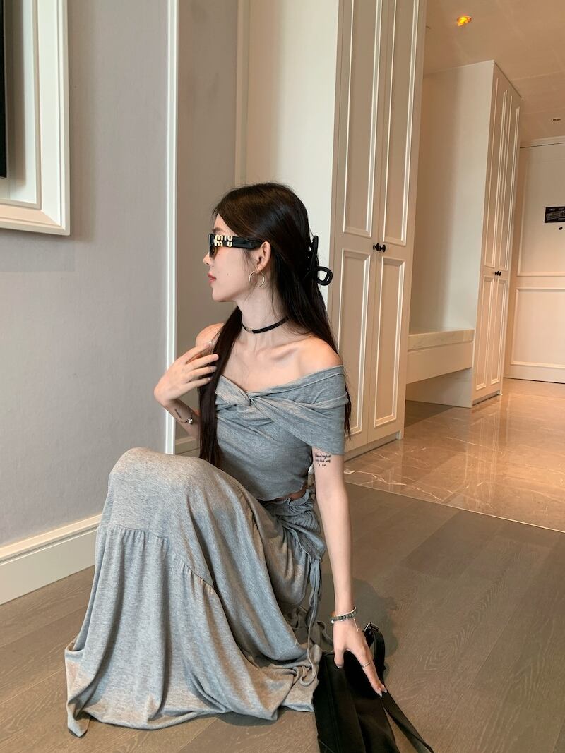 【set】オフショルダーTシャツ+スカート2点セットG21577