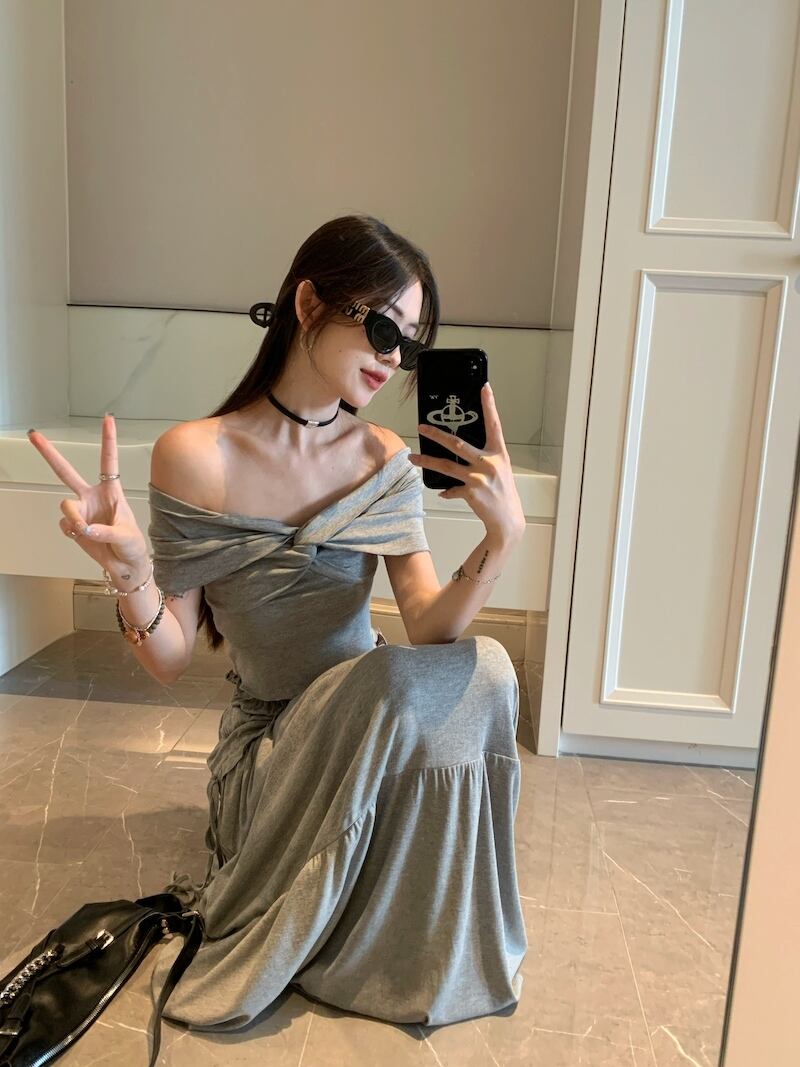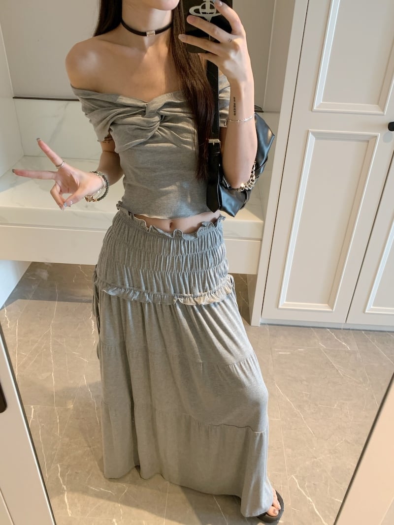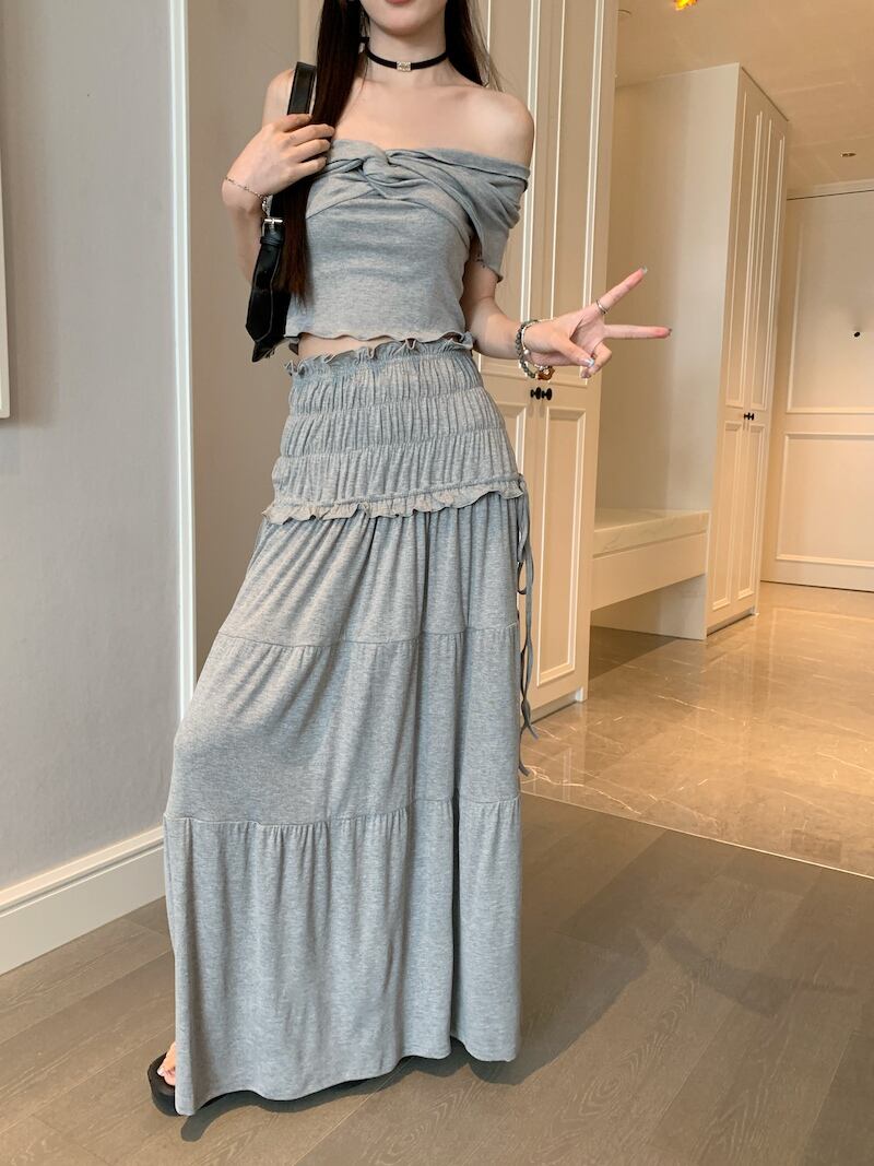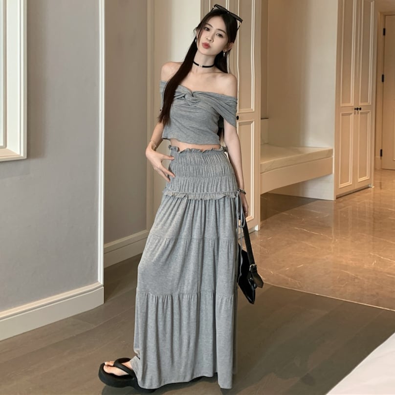 【set】オフショルダーTシャツ+スカート2点セットG21577