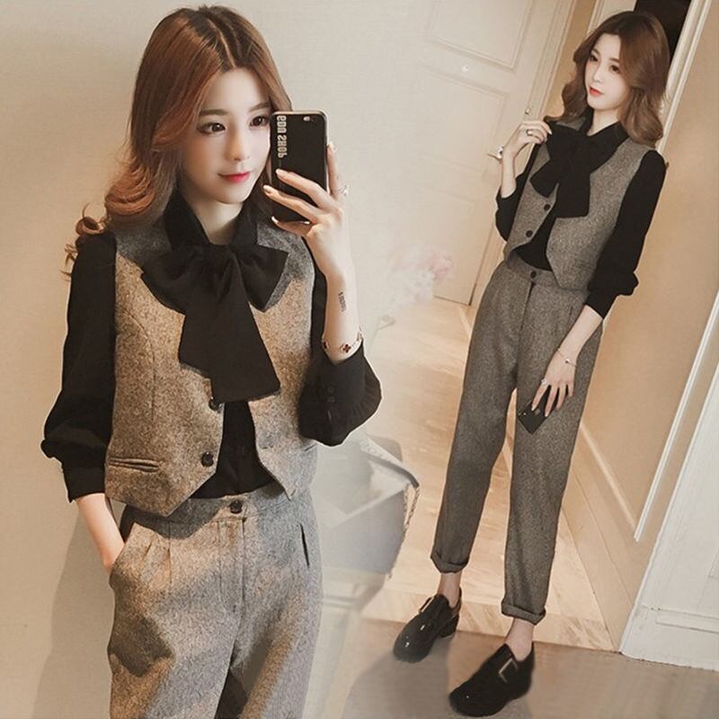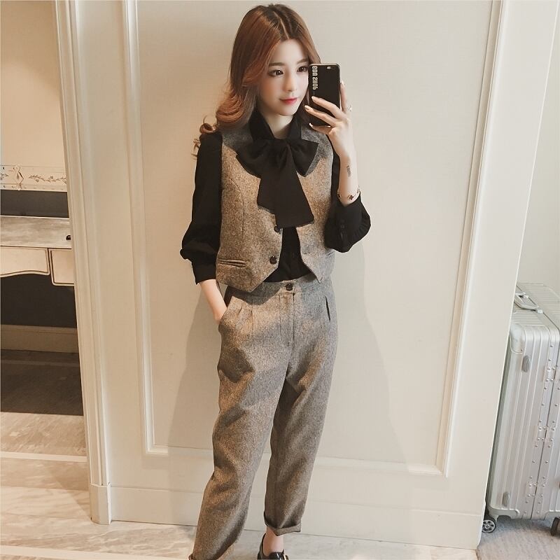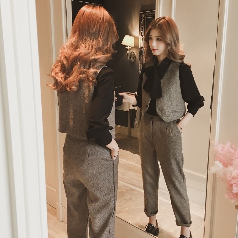 【set】ファッション!気質満点スーツベスト+シャツ+パンツオシャレ3点セット G2525