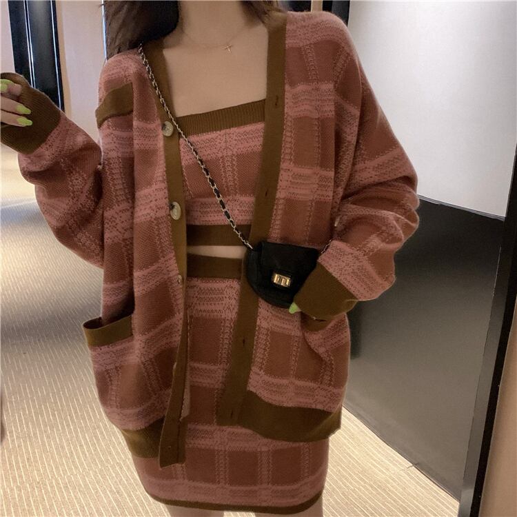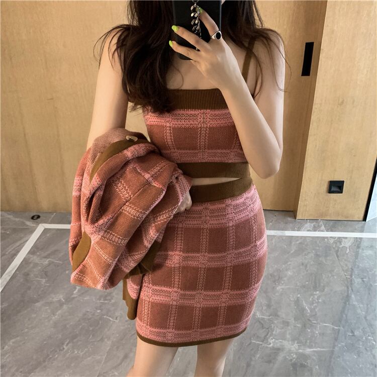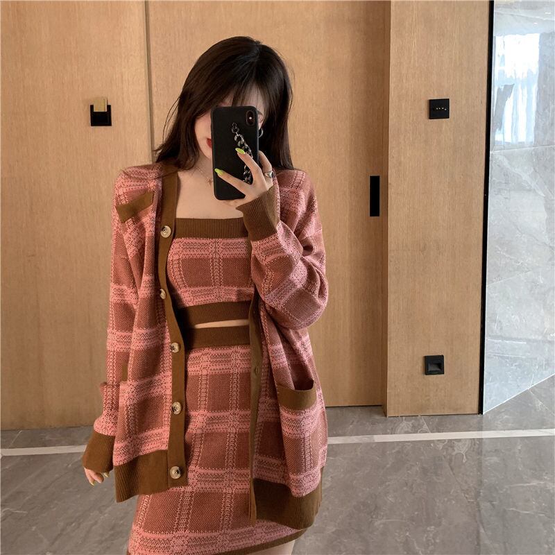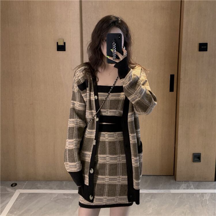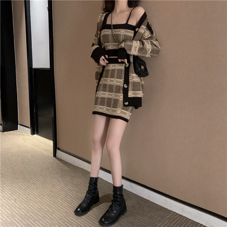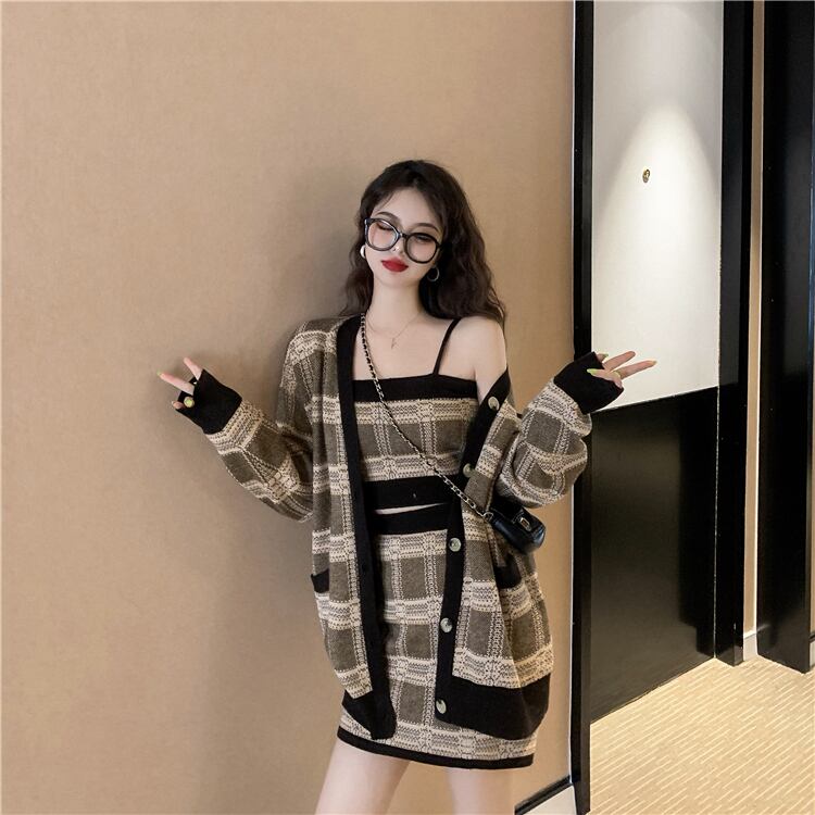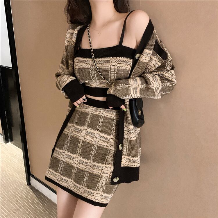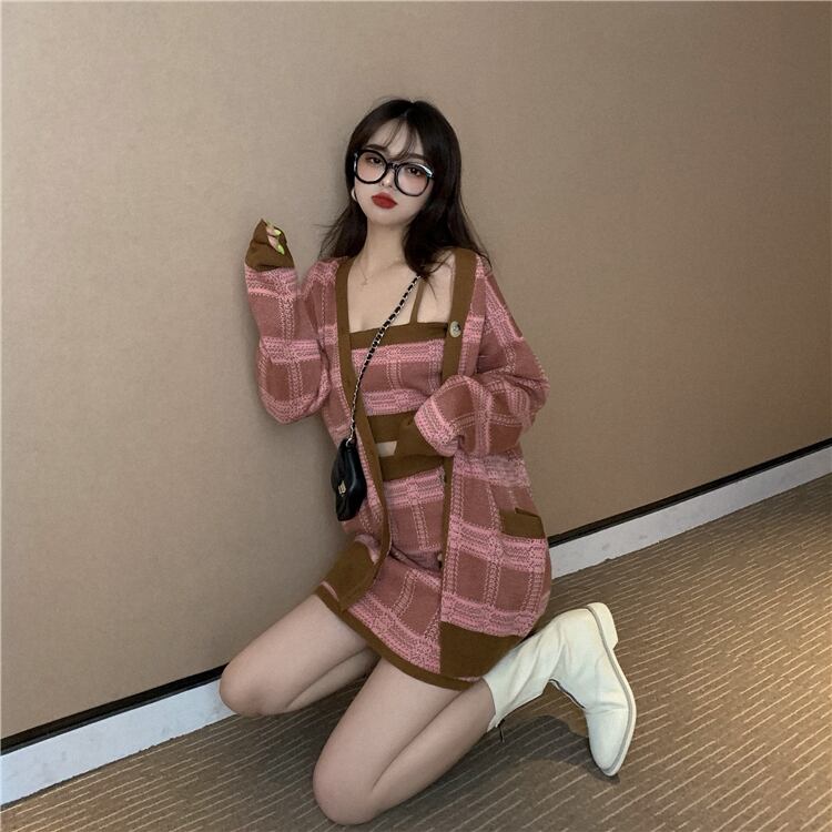 【set】好感度UP!気質満点スウィートカーディガン+キャミソール+スカートオシャレ3点セット G2816