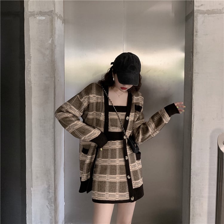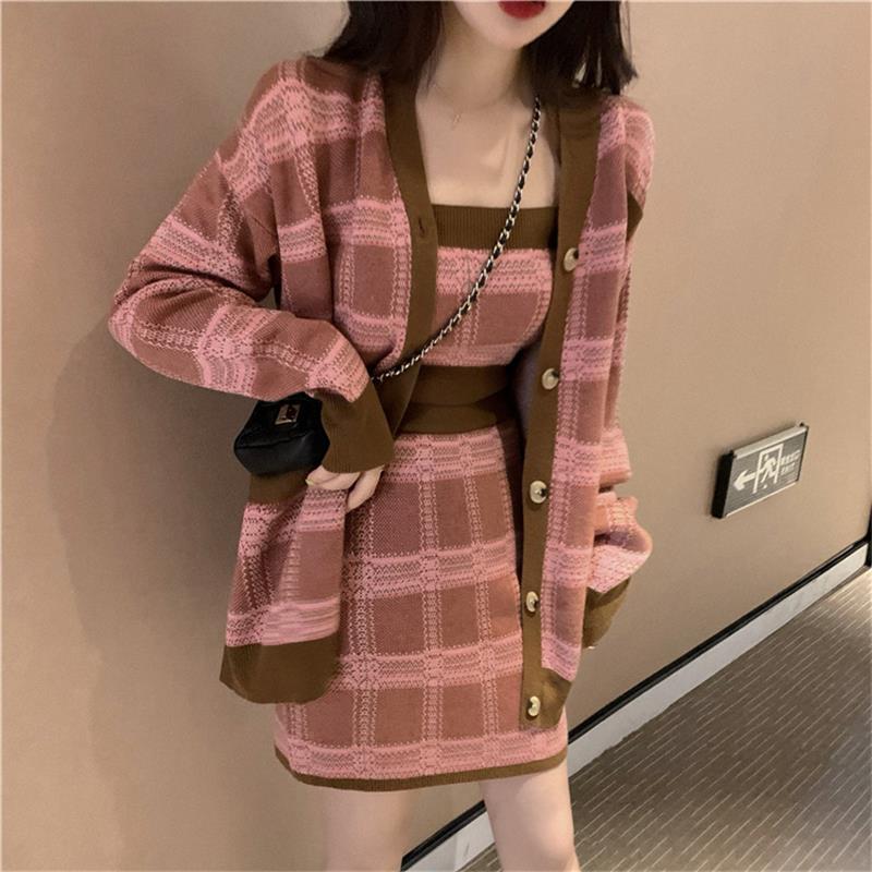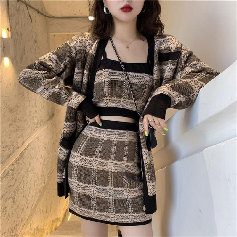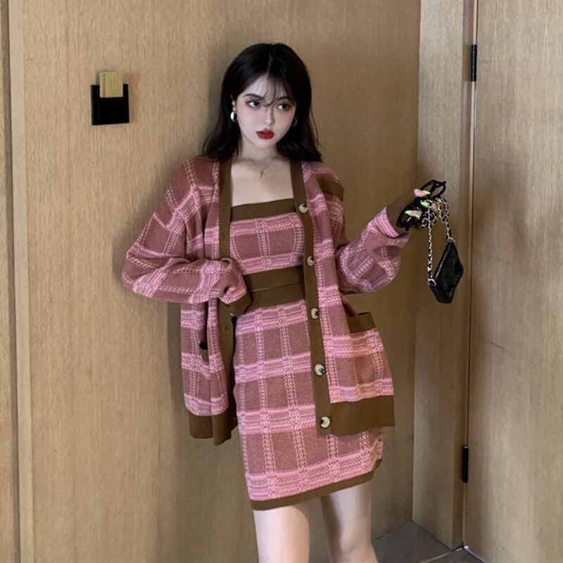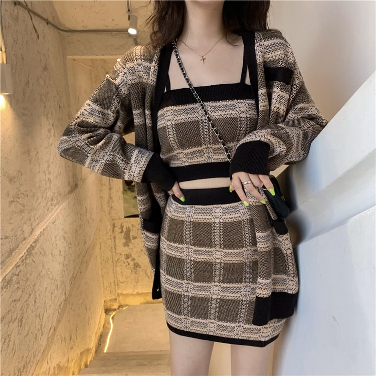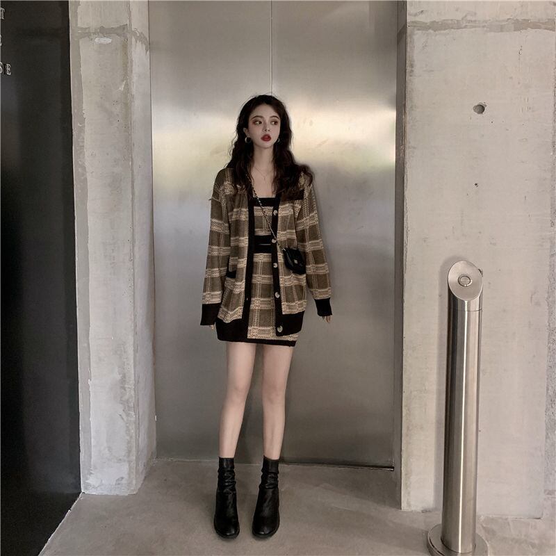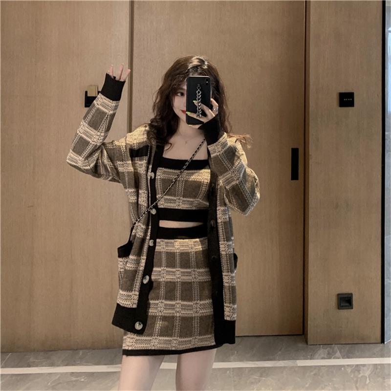 【set】好感度UP!気質満点スウィートカーディガン+キャミソール+スカートオシャレ3点セット G2816