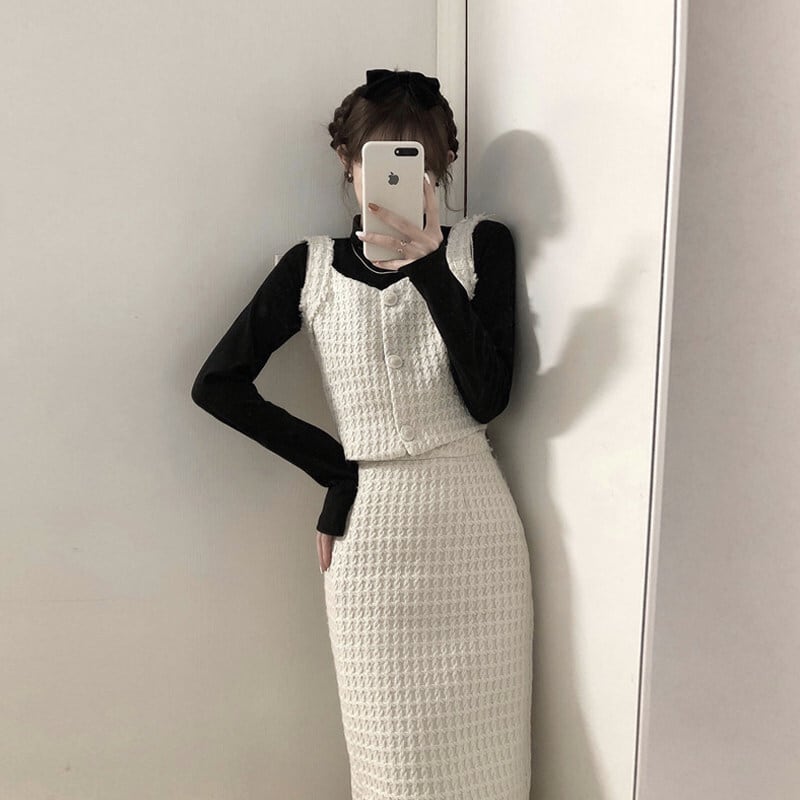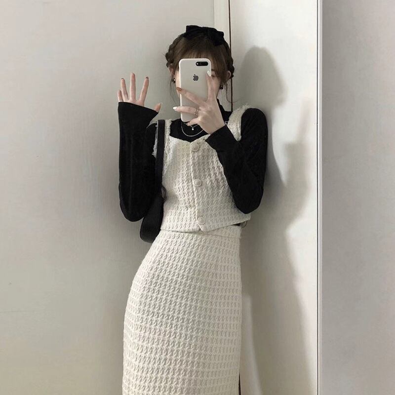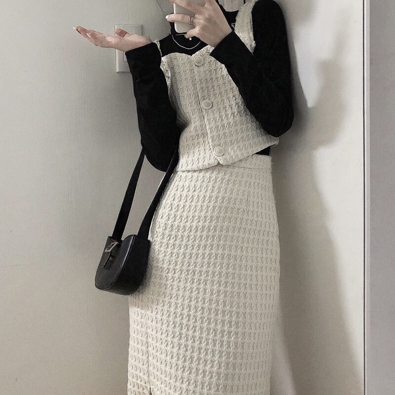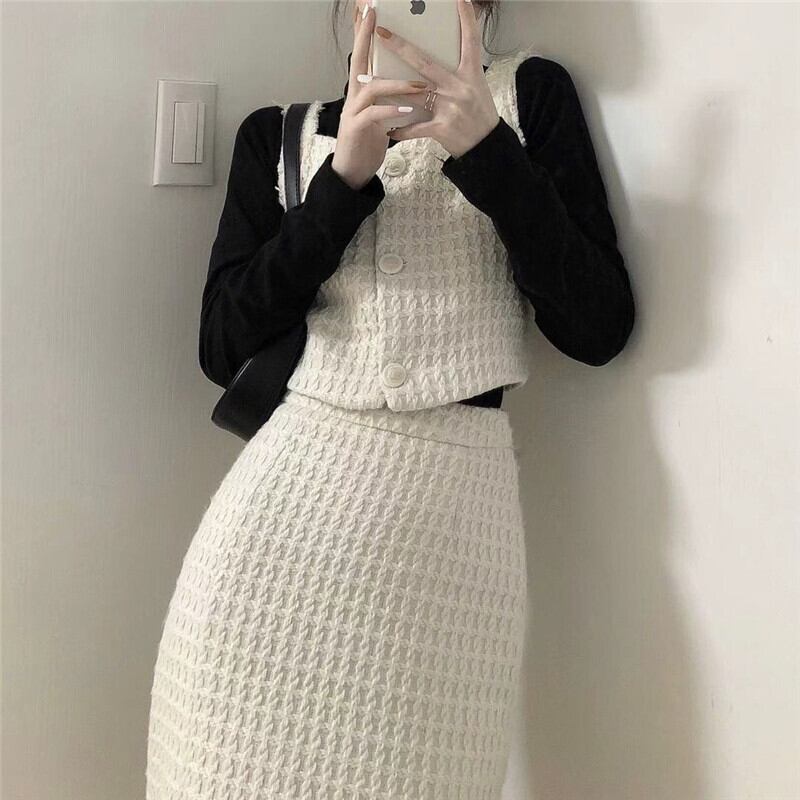 【set】好感度UP!気質満点スウィートトップス+ベスト+スカートオシャレ3点セット G2821