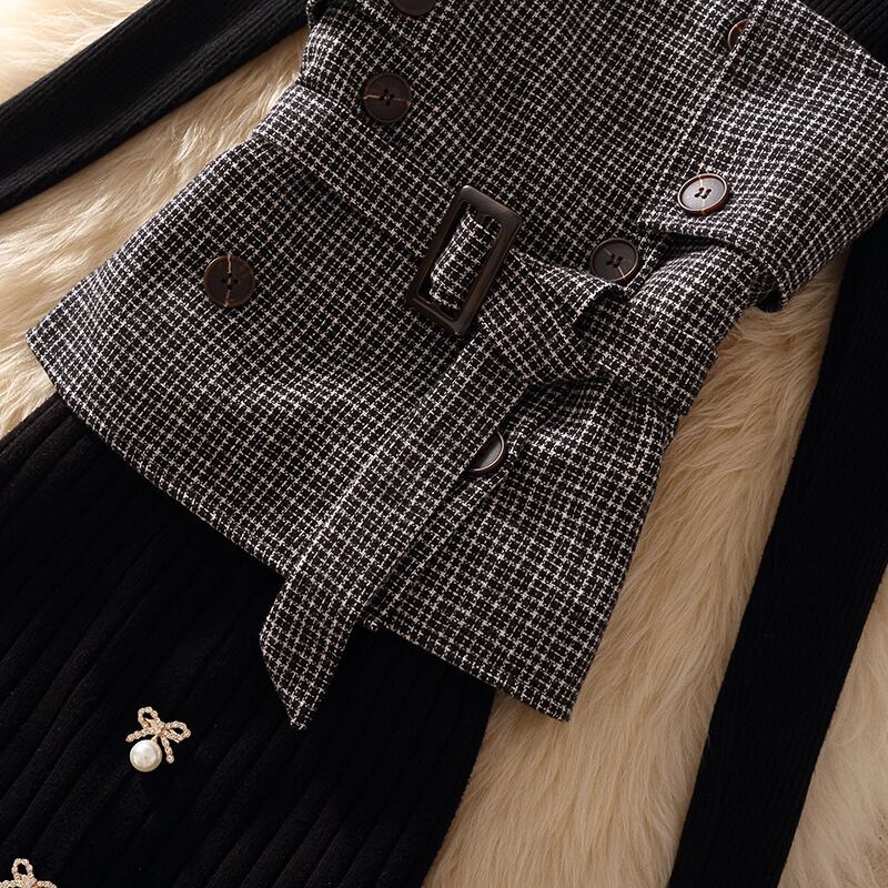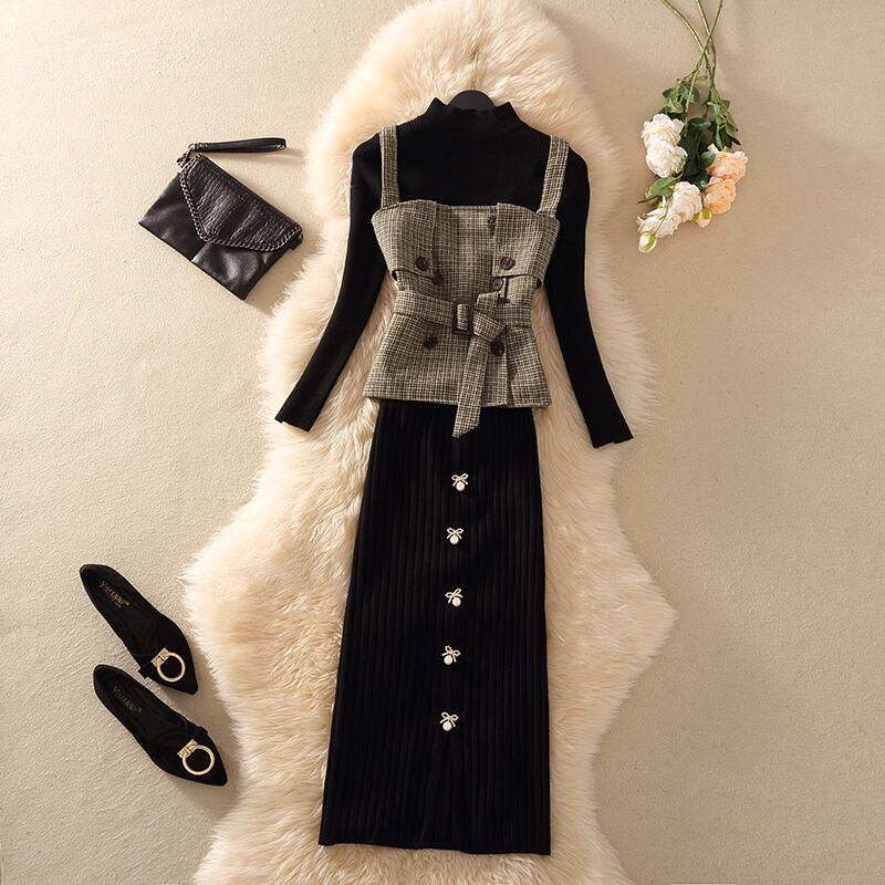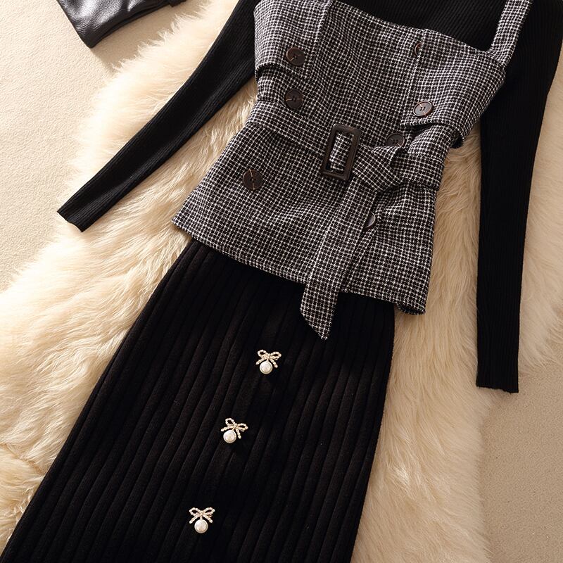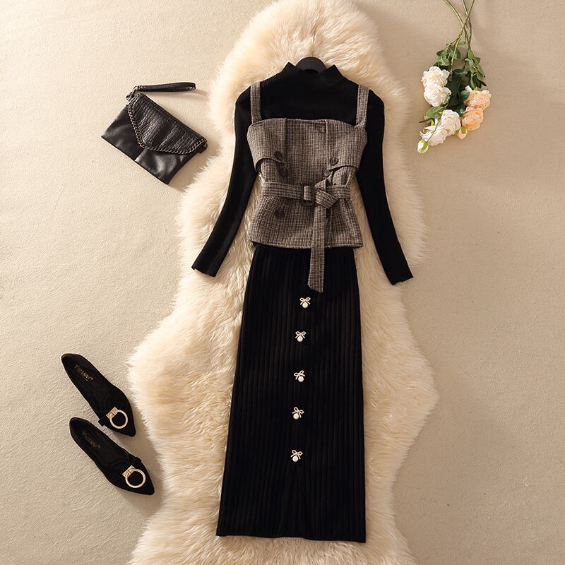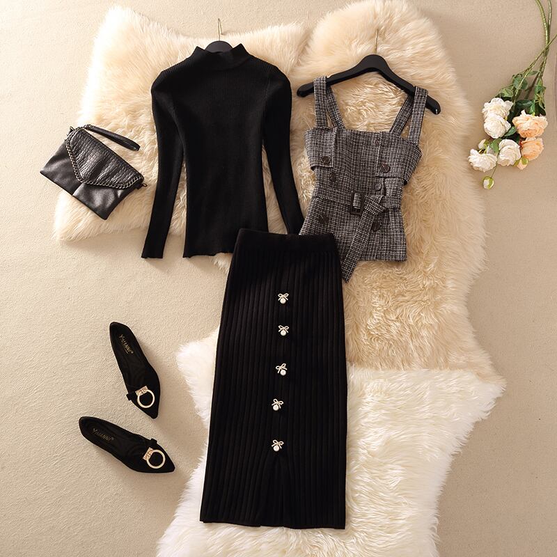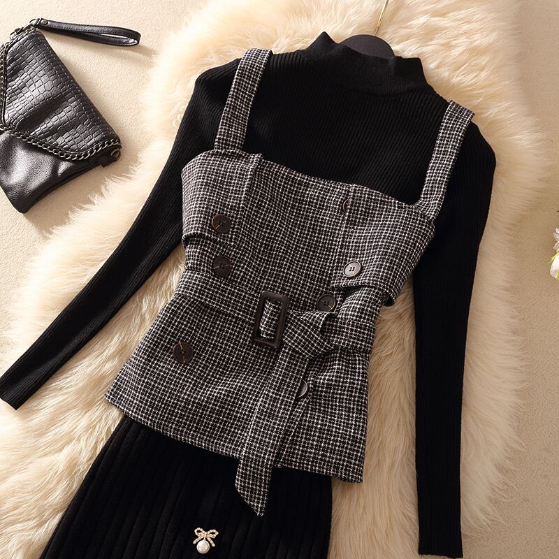 【set】秋冬新作!気質満点レトロニットトップス+ベスト+スカートオシャレ3点セット G2879