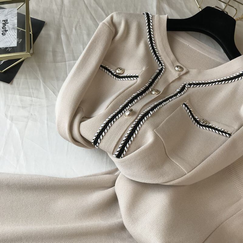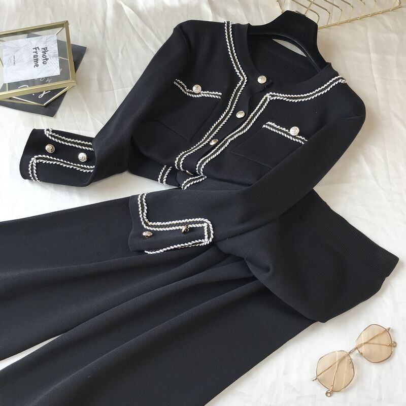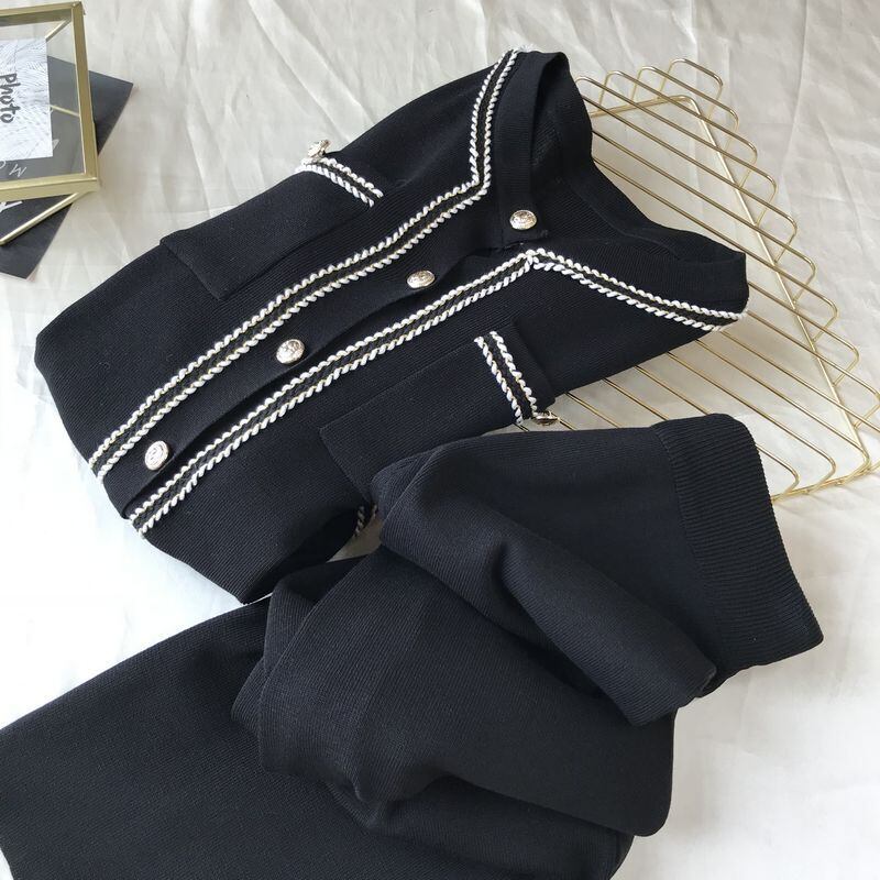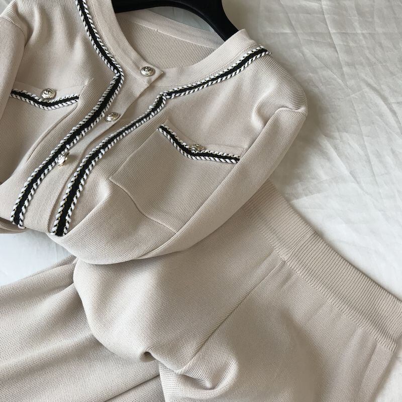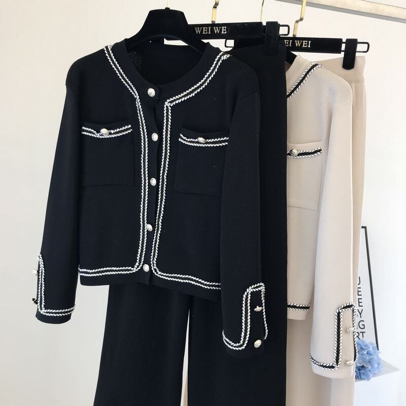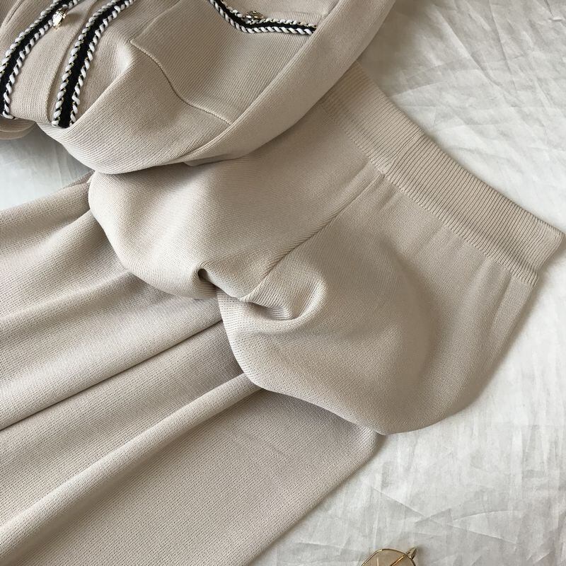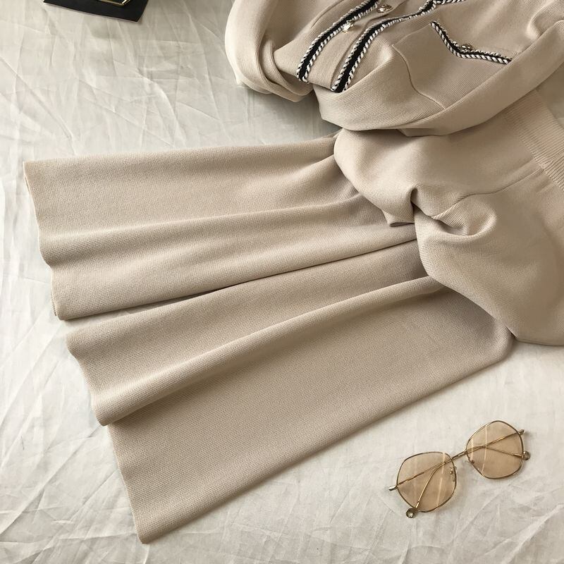 【set】ファッション!気質満点レトロニットカーディガン+ガウチョパンツオシャレ2点セット G3083