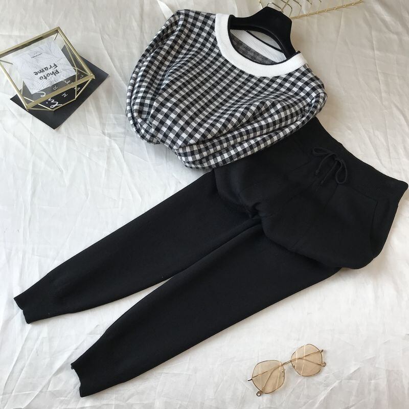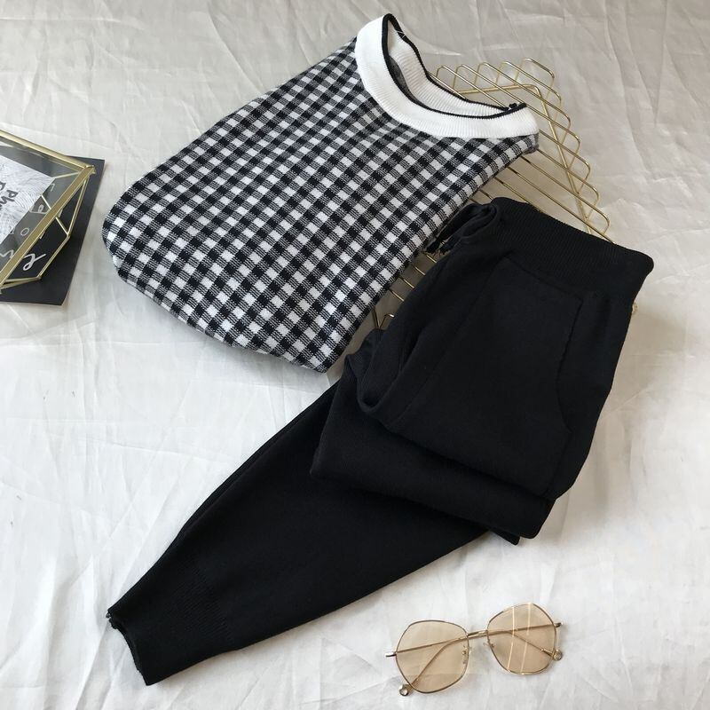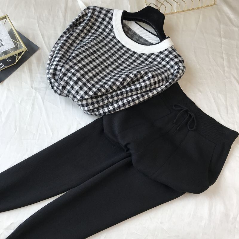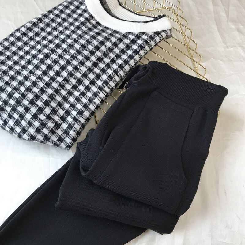 【set】着心地良い気質満点レトロINS風ルーズニットトップス+パンツ2点セット G3138