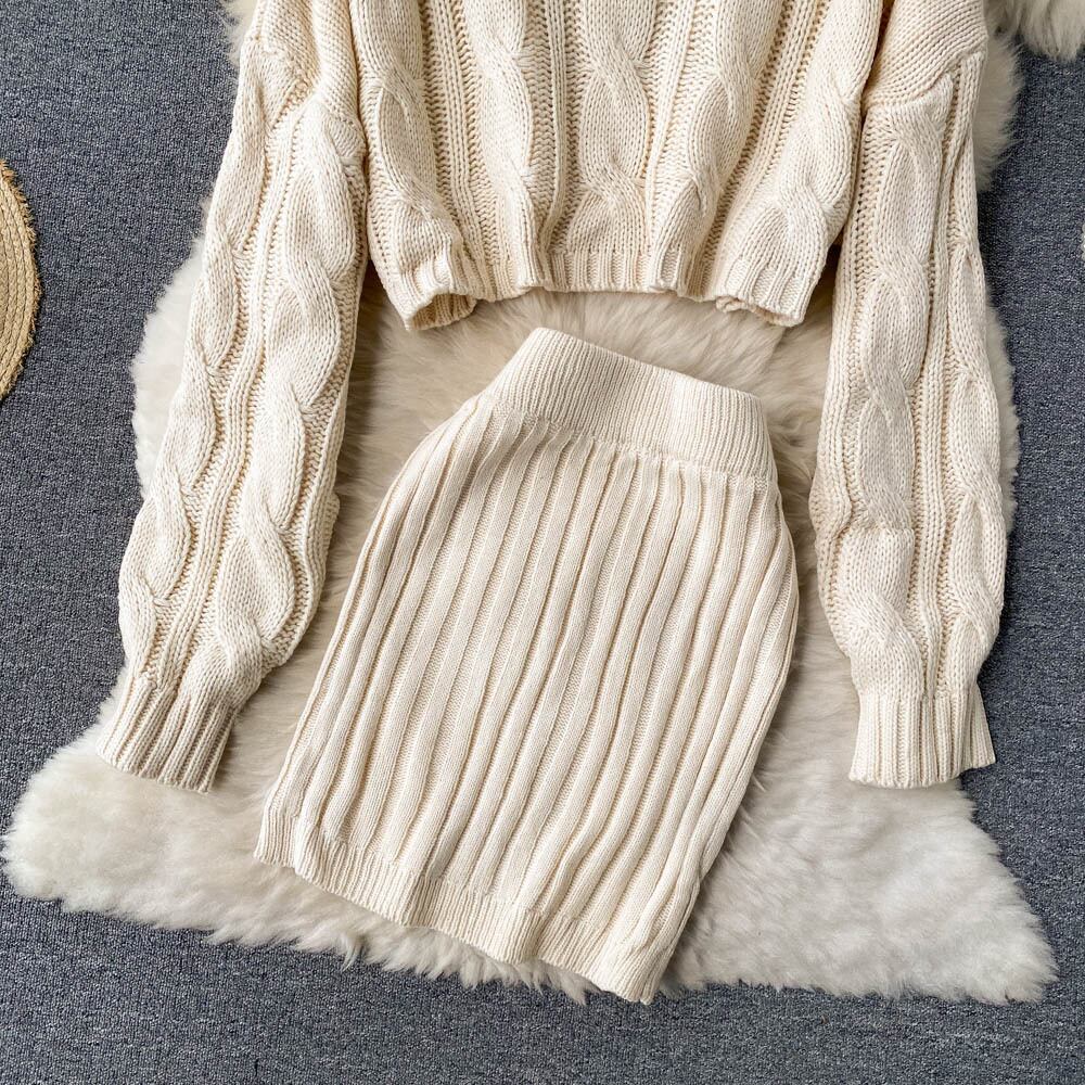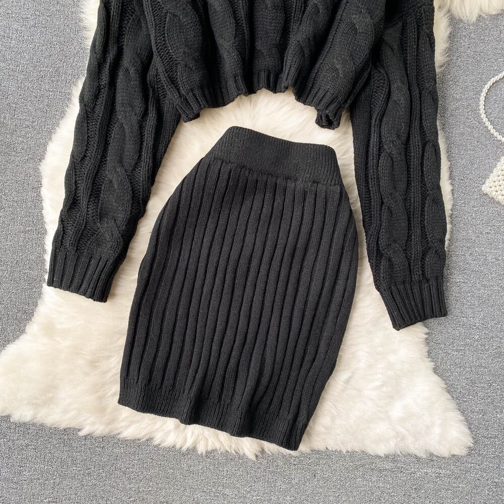 【set】着心地良い!気質満点ハイネックセーター+タイトスカートオシャレ2点セット G3271