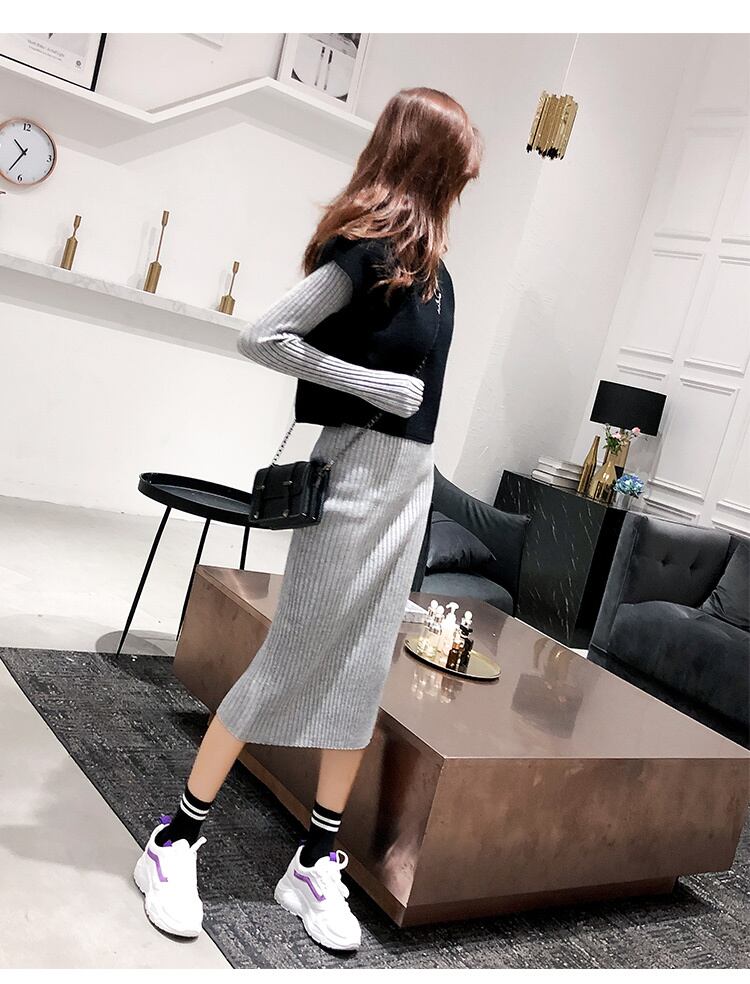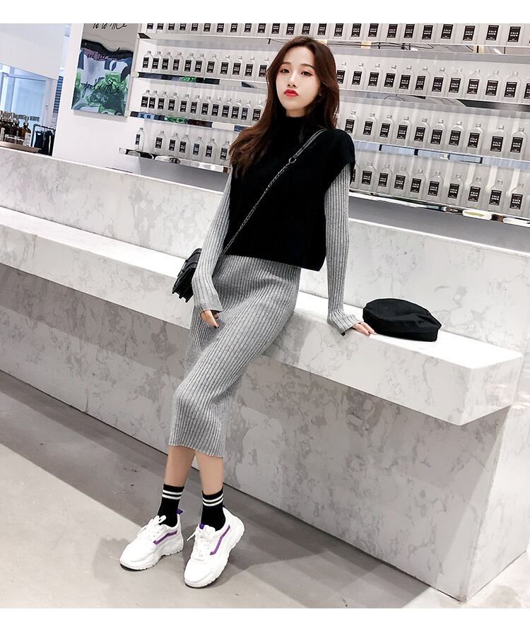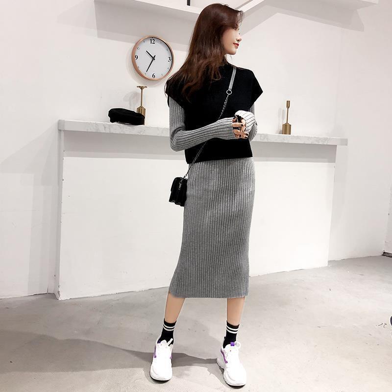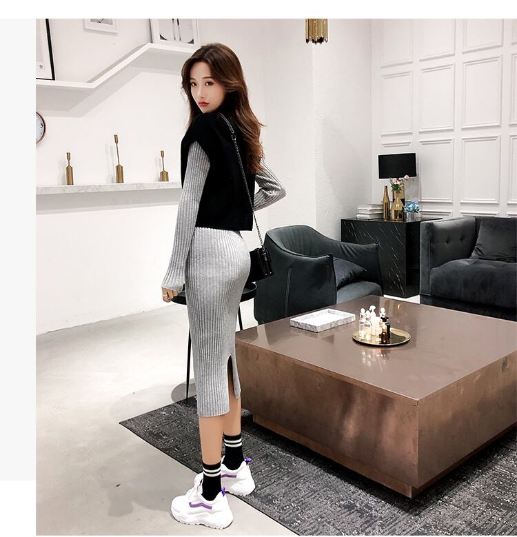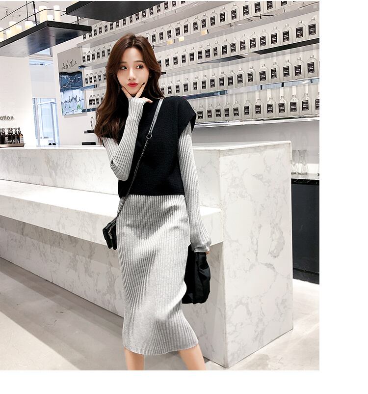 【set】秋冬新作好感度UP!気質満点ファッションベスト+ニットワンピース2点セット G3606