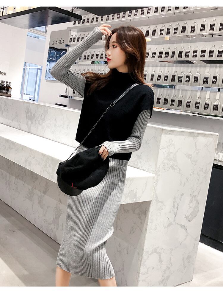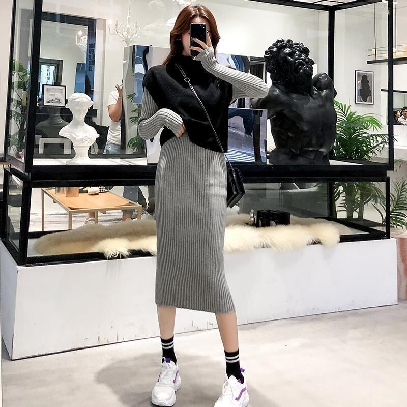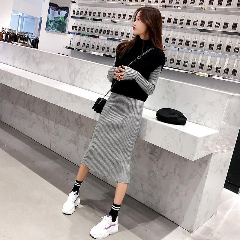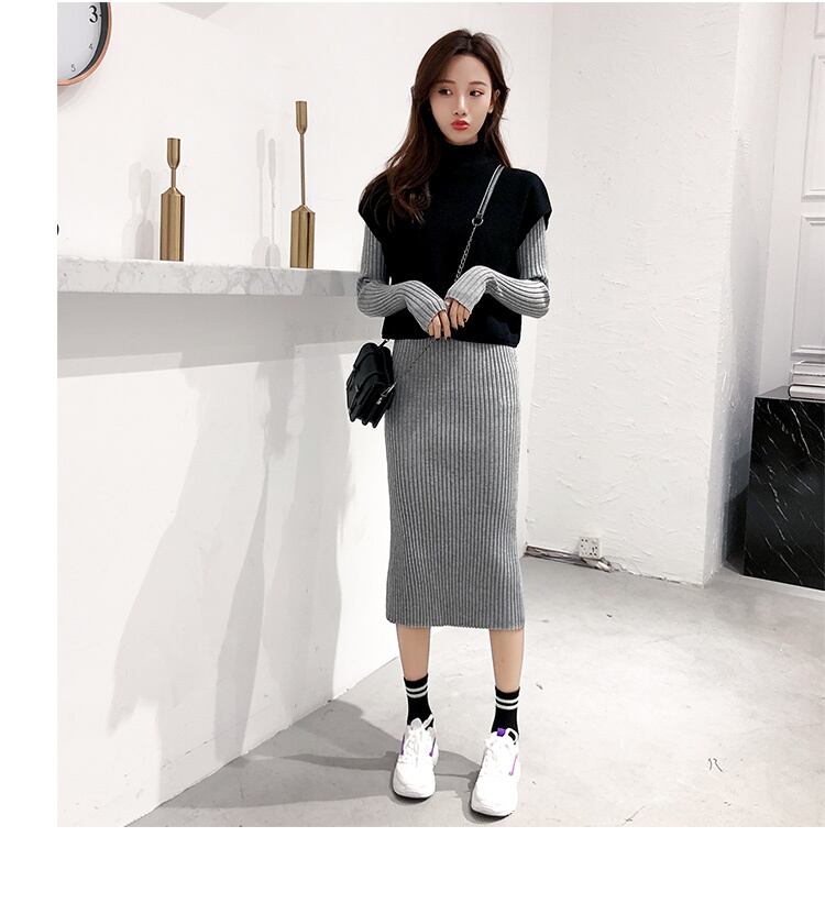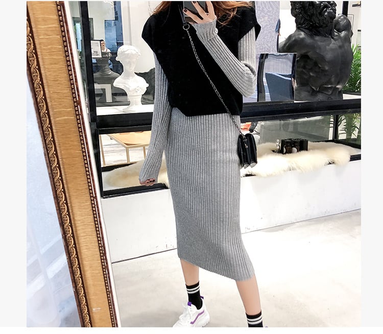 【set】秋冬新作好感度UP!気質満点ファッションベスト+ニットワンピース2点セット G3606