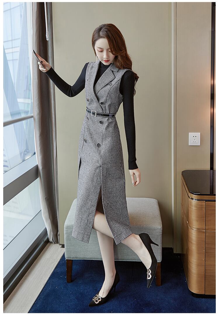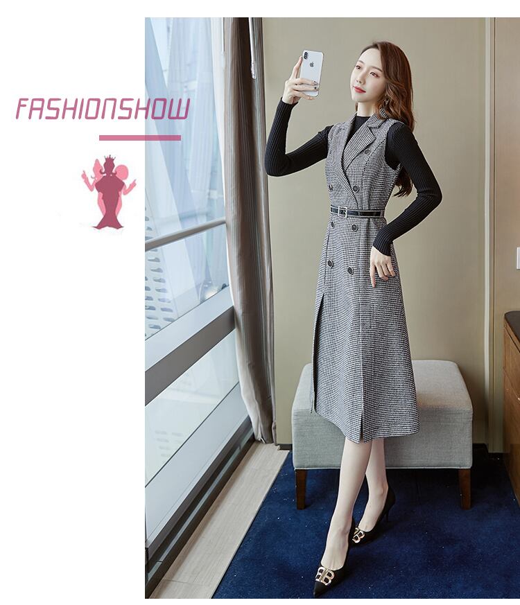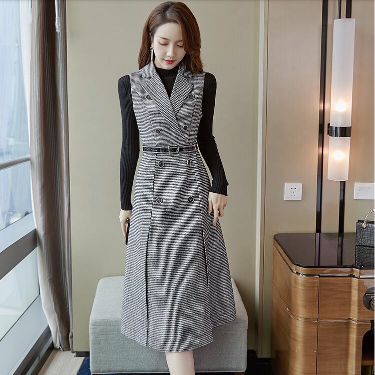 【set】好感度UP!気質満点レトロ高品質秋冬新作トップス+ベストワンピース2点セット G4723