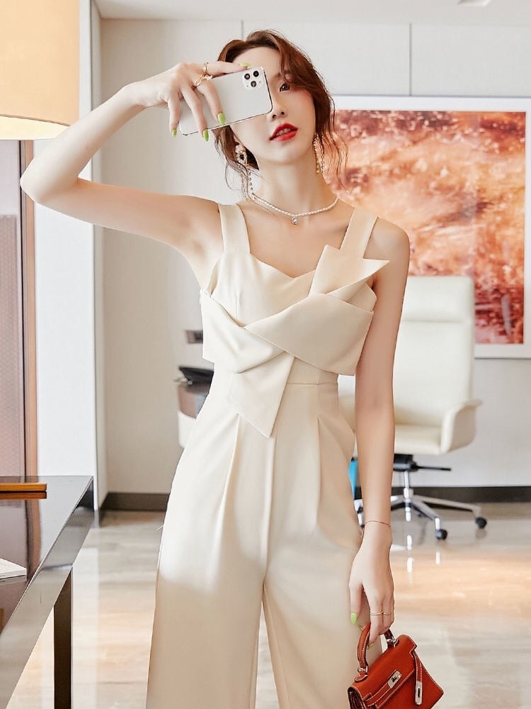 【set】早い者勝ち!気質満点レトロ着痩せハイウエスト合わせやすいINS風オールインワン G6877