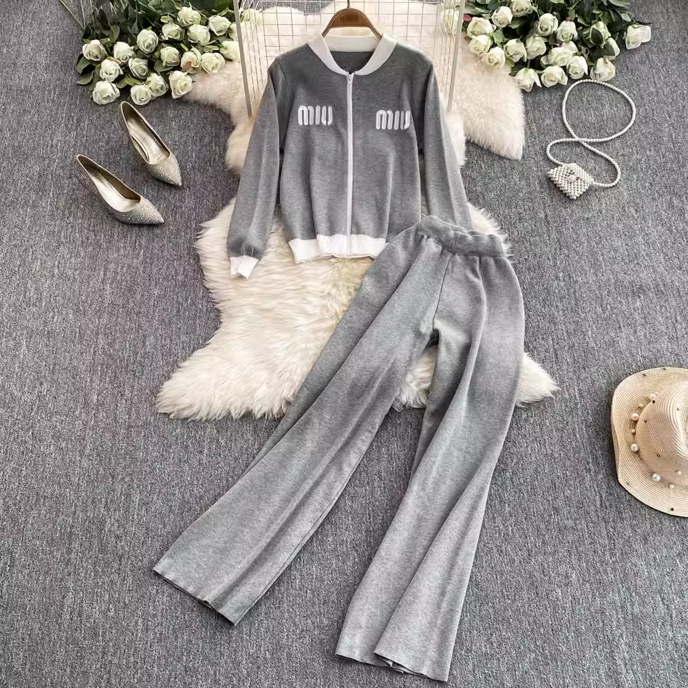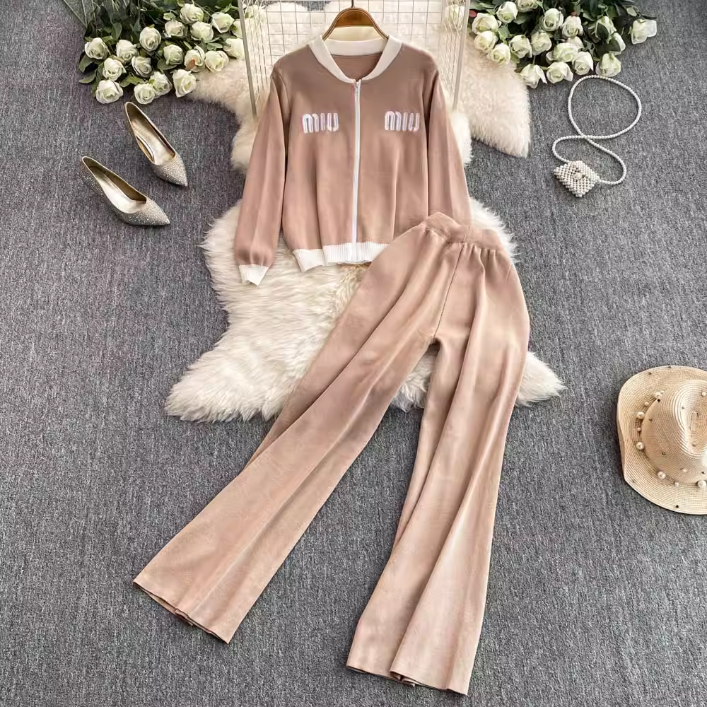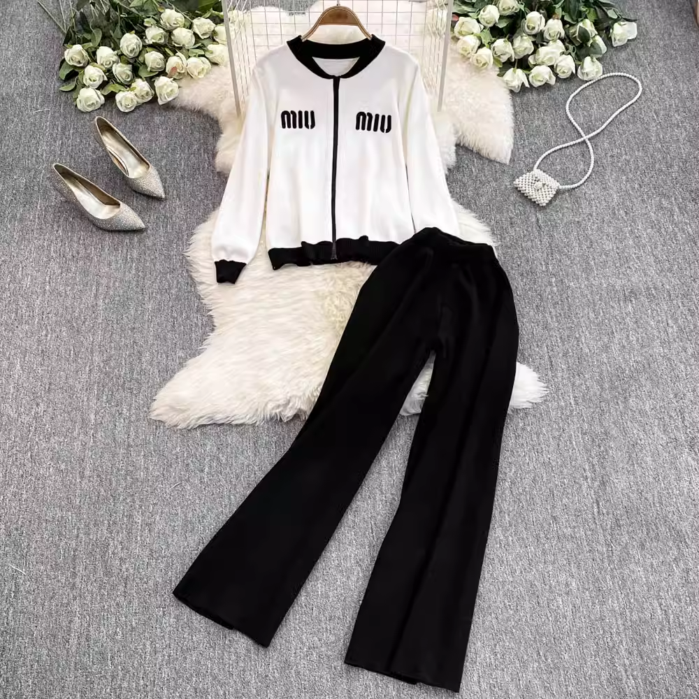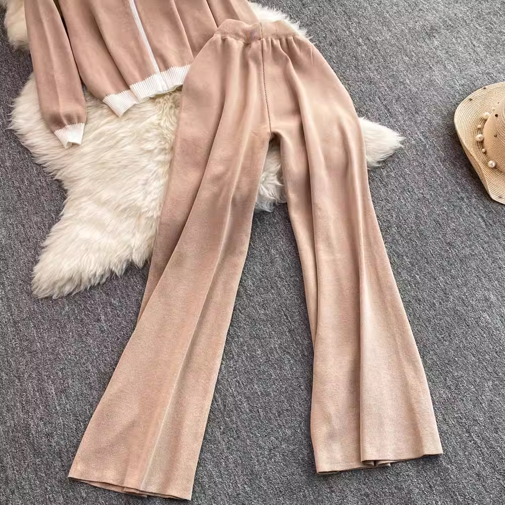 【set】ジップアップニット&ワイドパンツ K0132