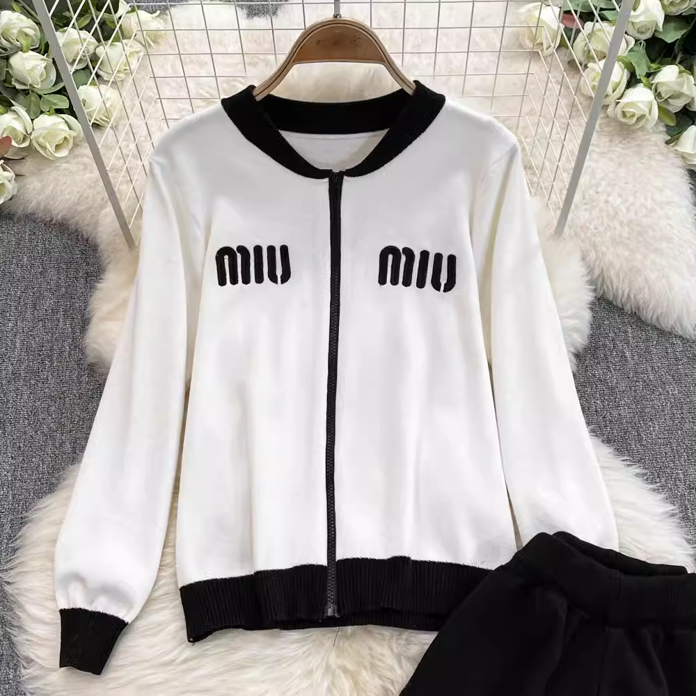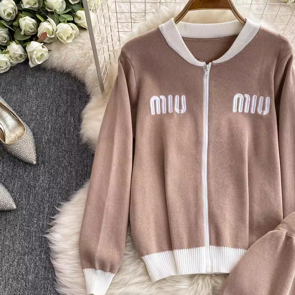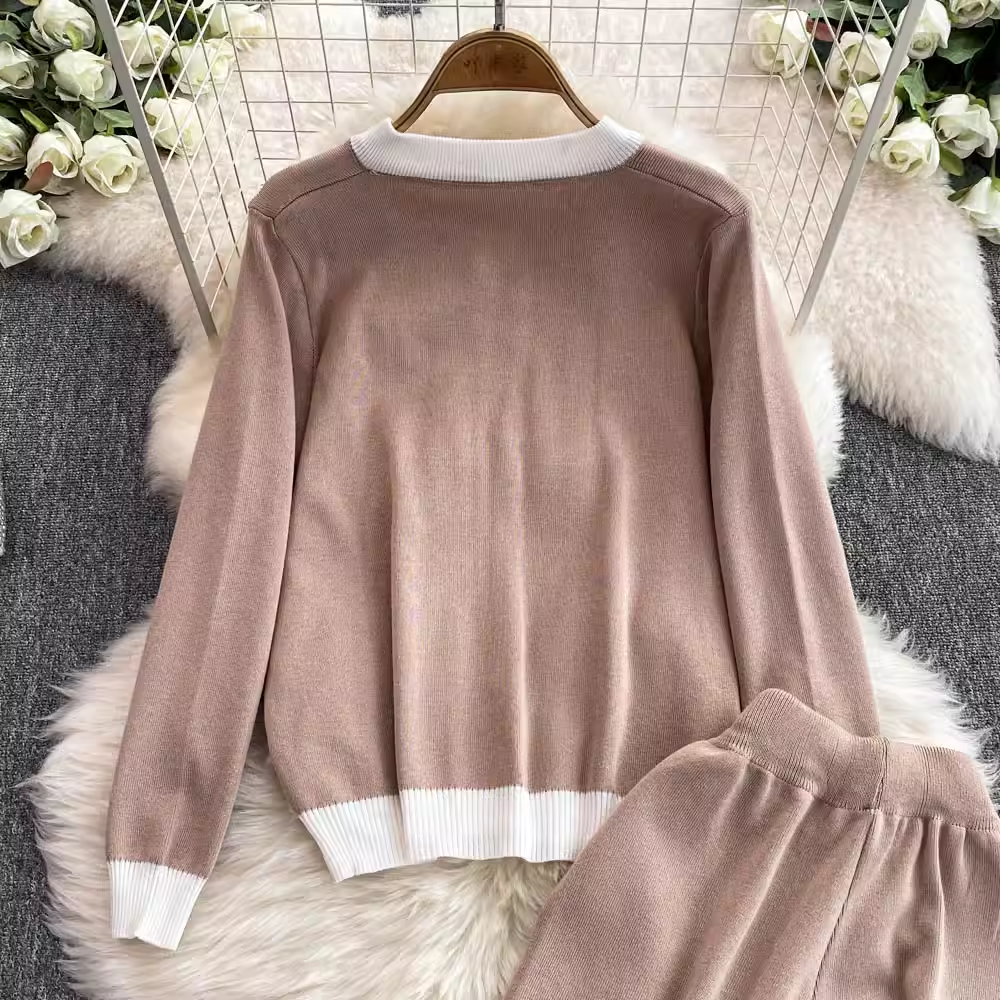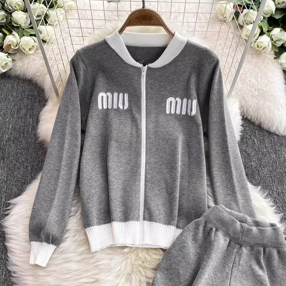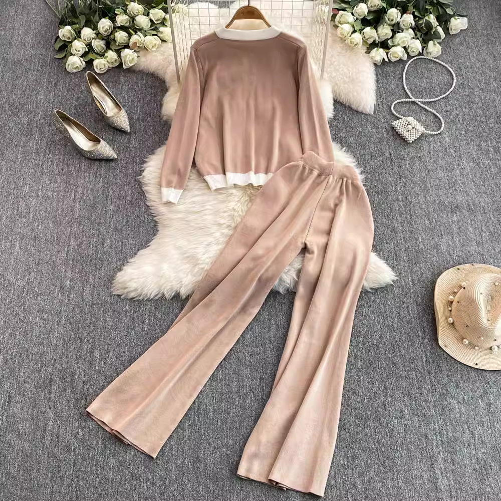 【set】ジップアップニット&ワイドパンツ K0132