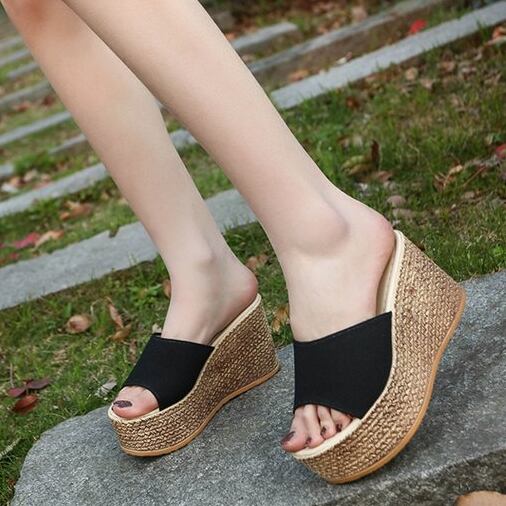 【shoes】一目惚れ!4色シンプル無地履きやすい合わせやすい厚底サンダル