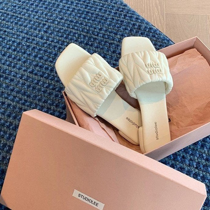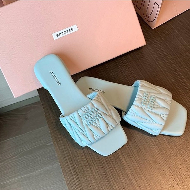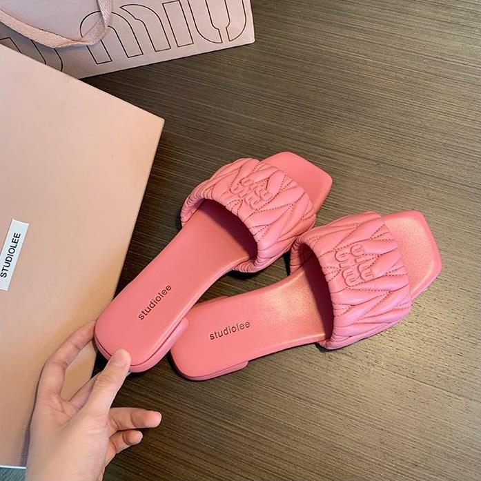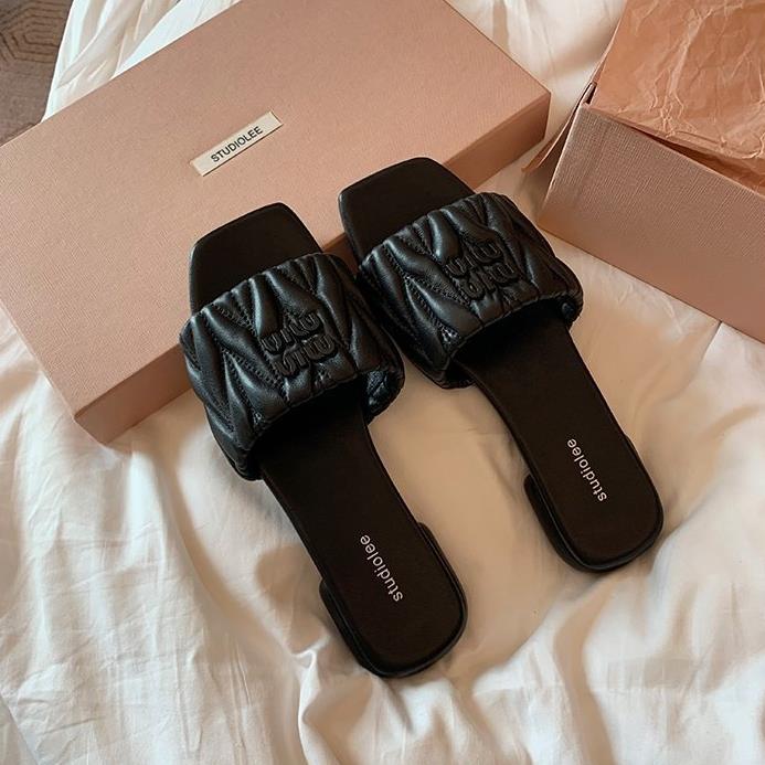 【shoes】4色スクエアトゥサンダルスリッパF7695