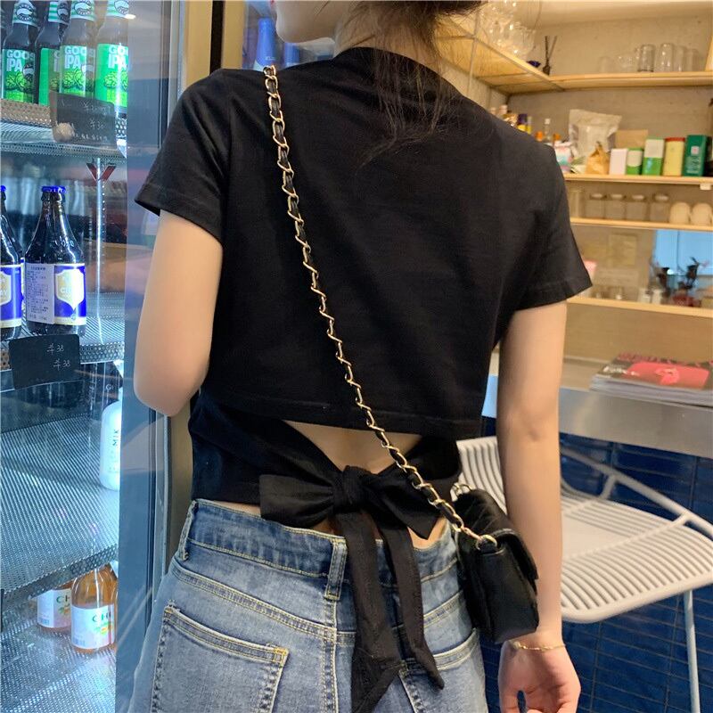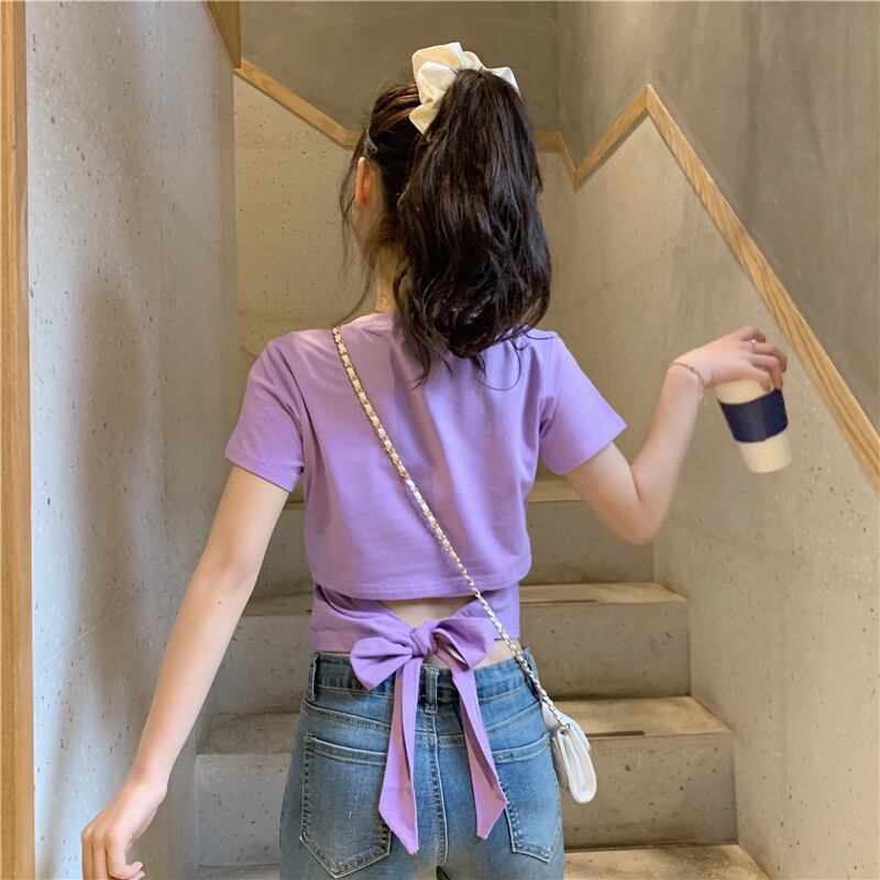 【tops】選べる5色!ラウンドネック半袖無地着回し蝶々結びTシャツ