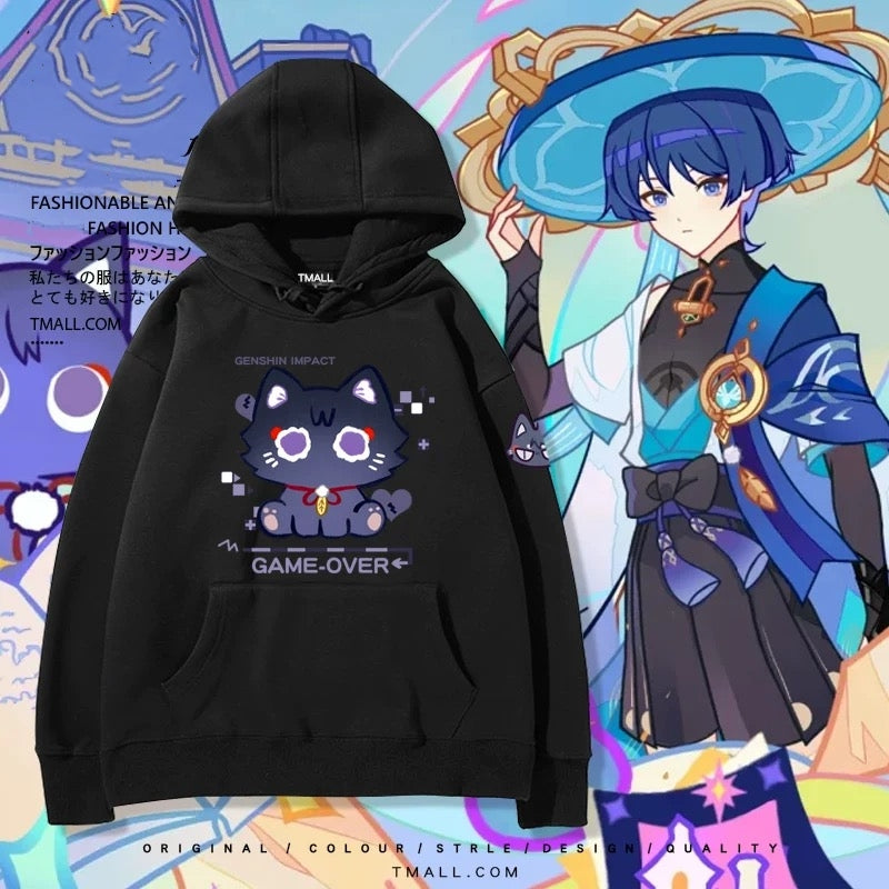 【tops】散兵猫プリントパーカー( 男女兼用)K0200