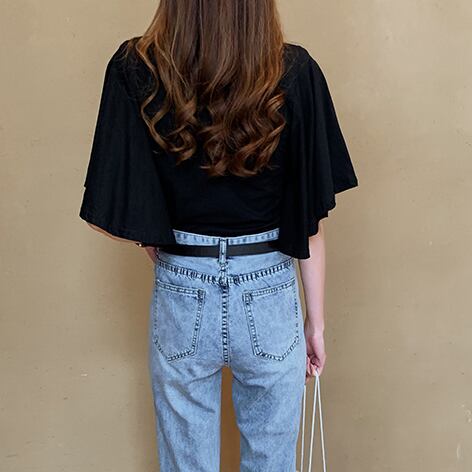 【tops】美人度アップVネック半袖ファッションフレアスリーブ無地着回しTシャツF0001
