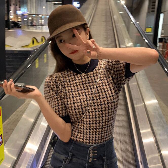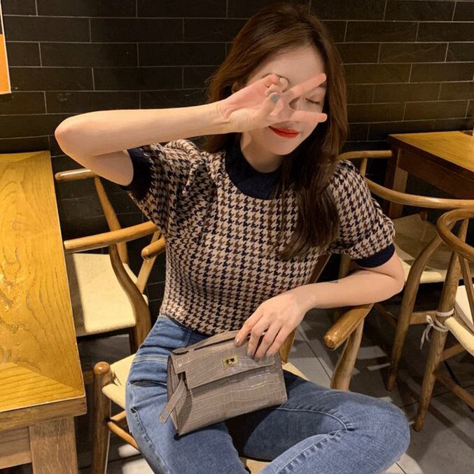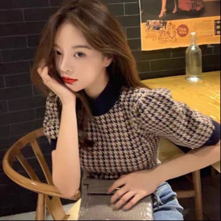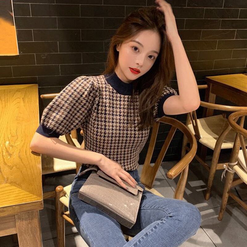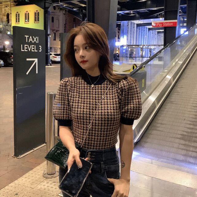 【tops】韓国ファッション〜ラウンドネックパフスリーブ着回しレトロニットF0099