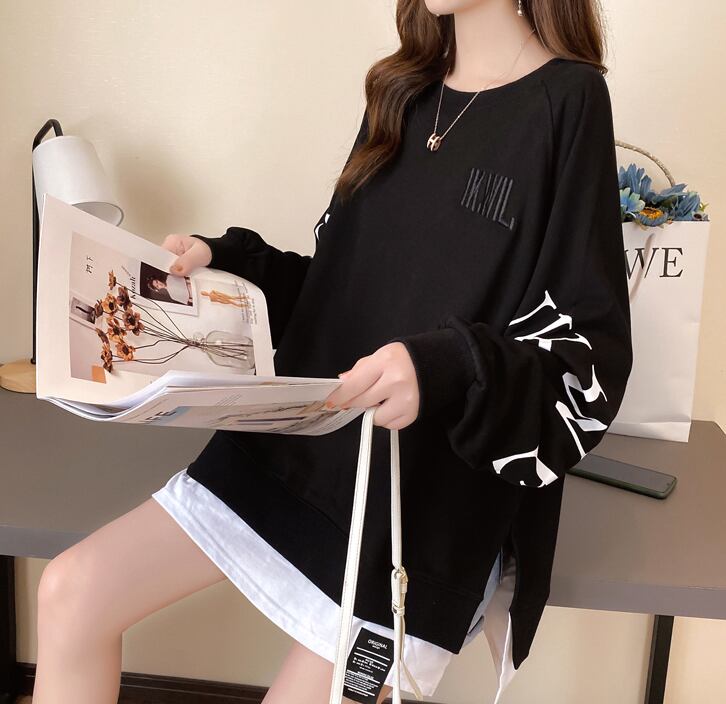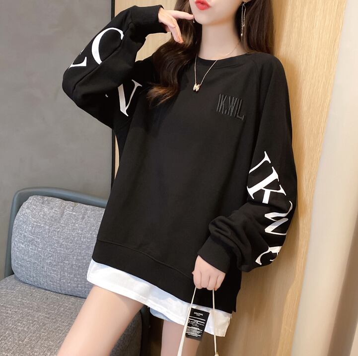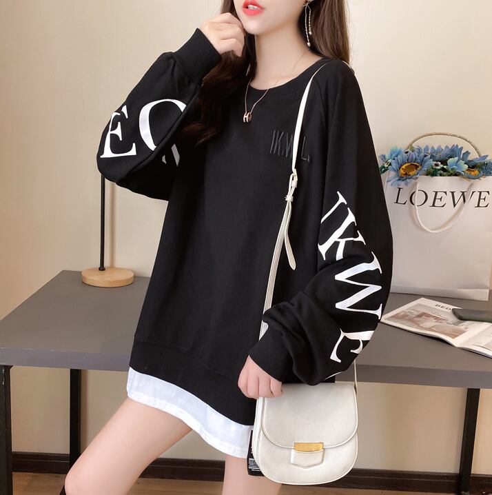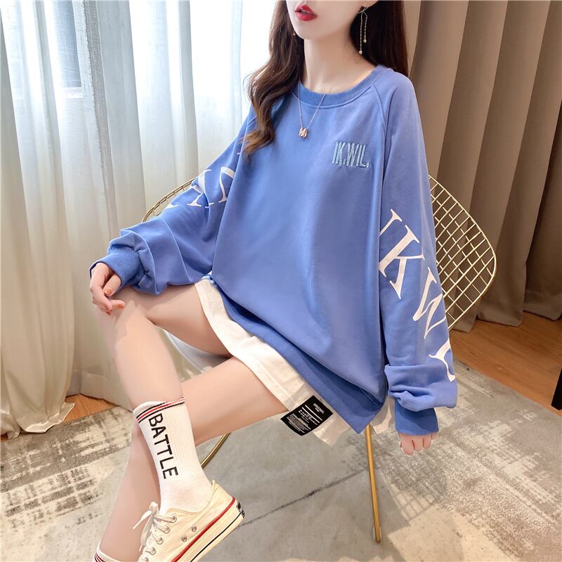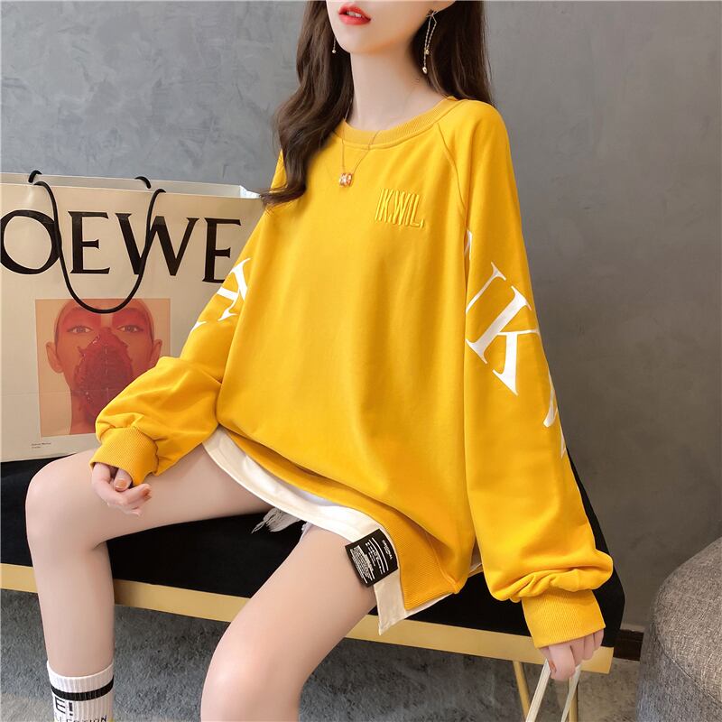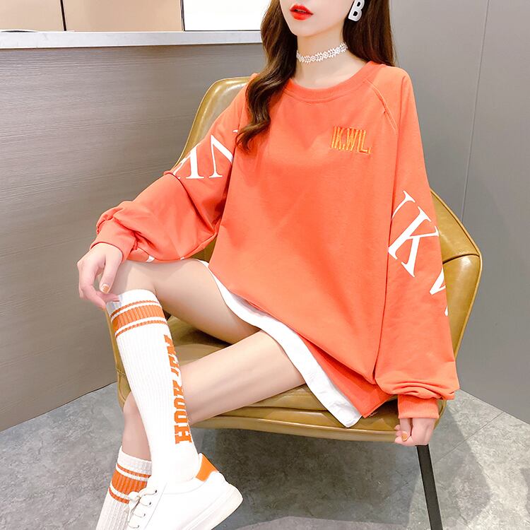 【tops】選べる5色!ラウンドネック長袖英字柄ファッションゆったり着回しパーカーF0673