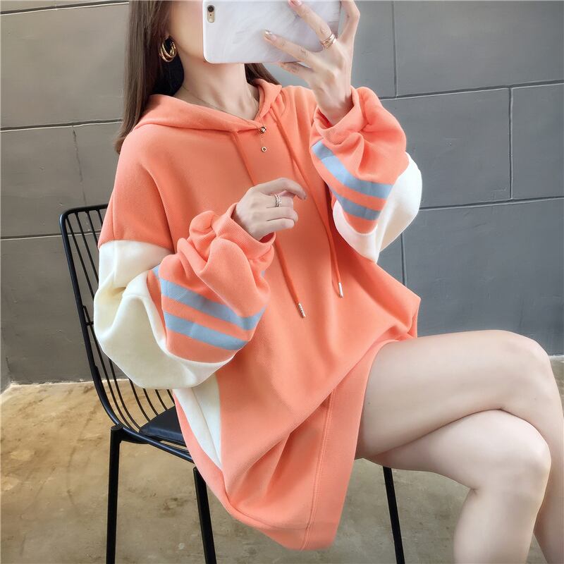 【tops】必ず目を引くフード付き長袖配色秋新作3色カジュアルゆったり着回しパーカーF0721