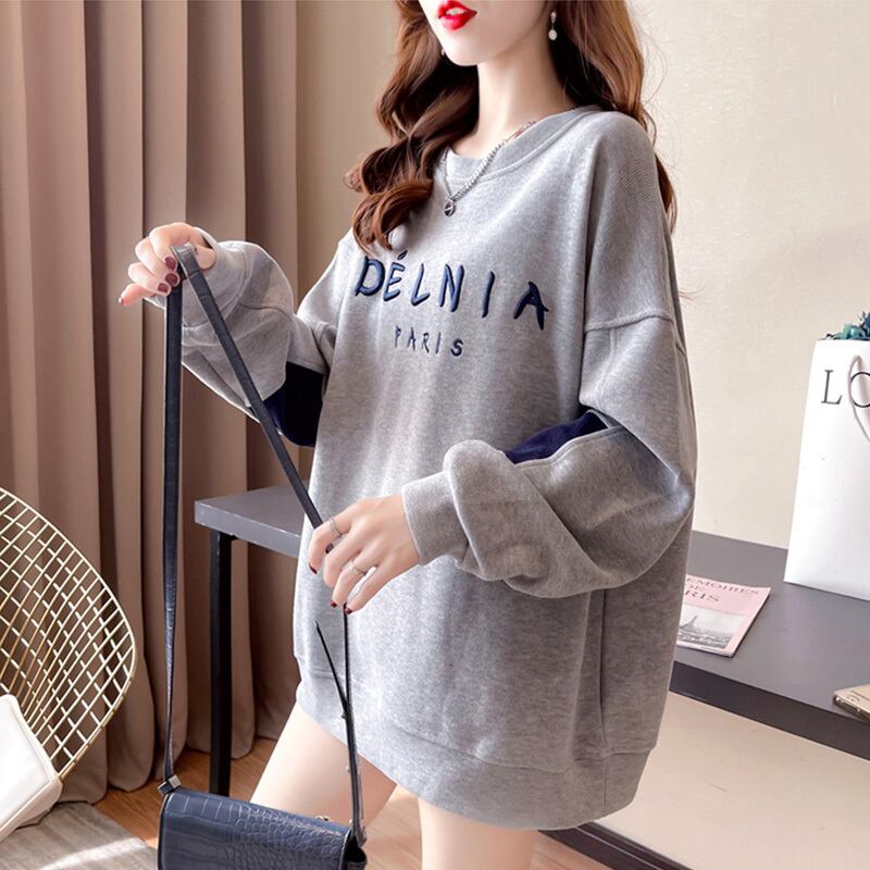 【tops】必ず目を引く秋新作〜3色ラウンドネック長袖ファッション配色英字柄着回しパーカーF0729