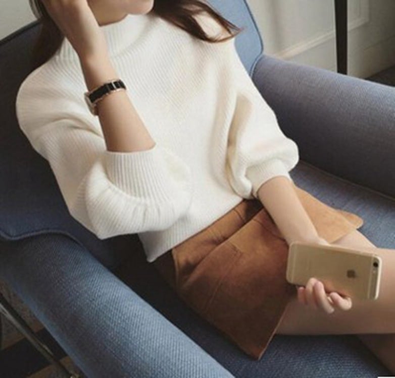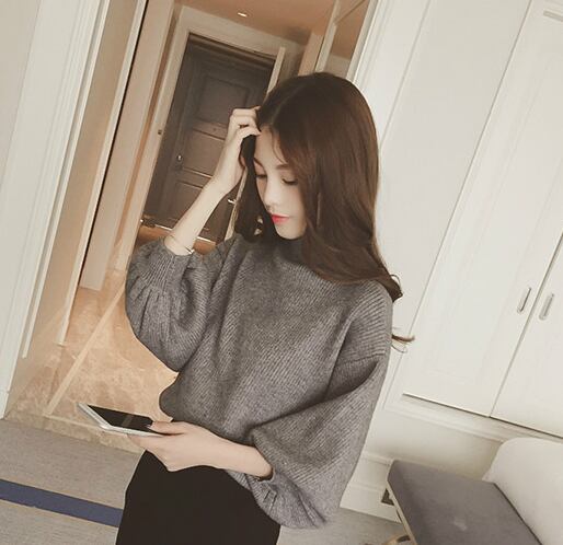 【tops】女性力を高める〜ハーフネック長袖パフ袖体型カバーファッション無地セーターF0826