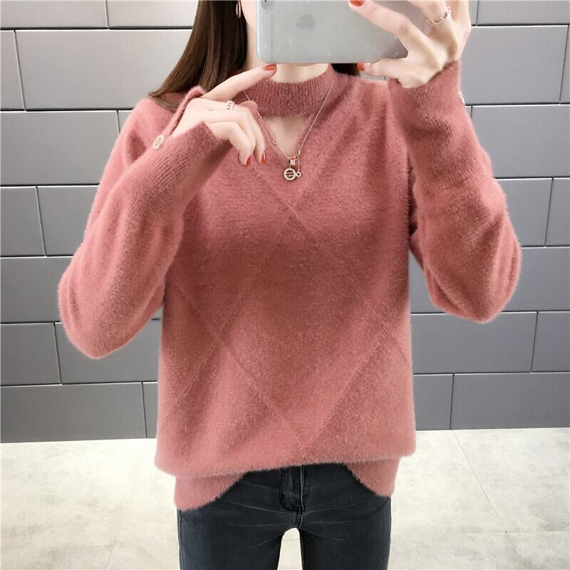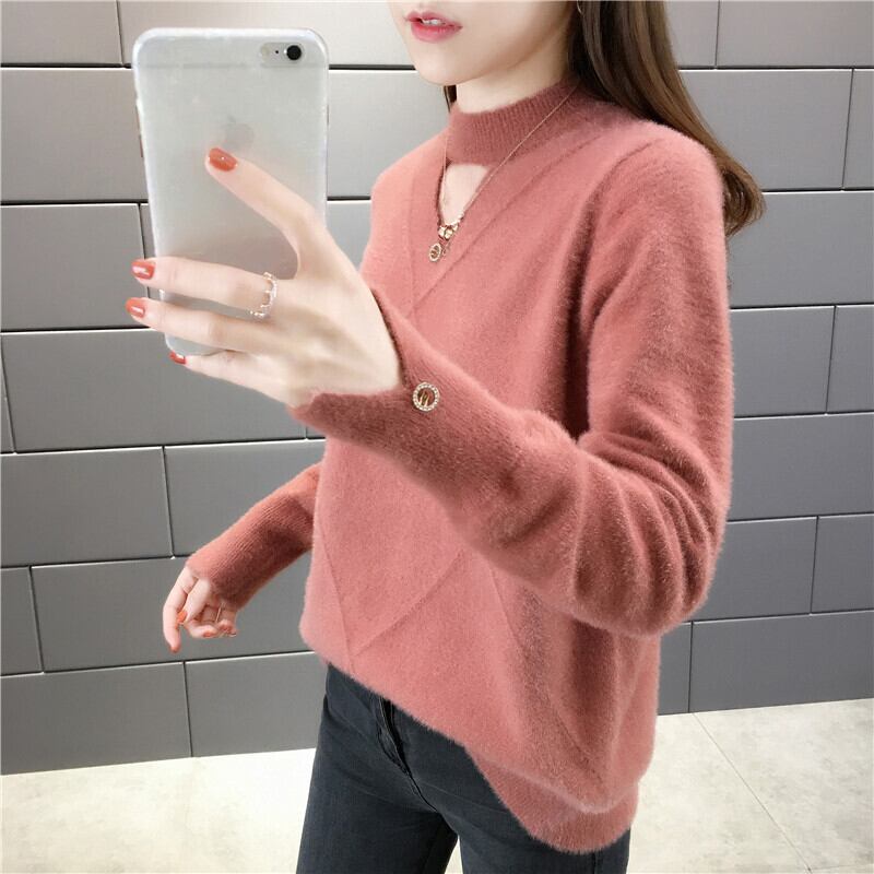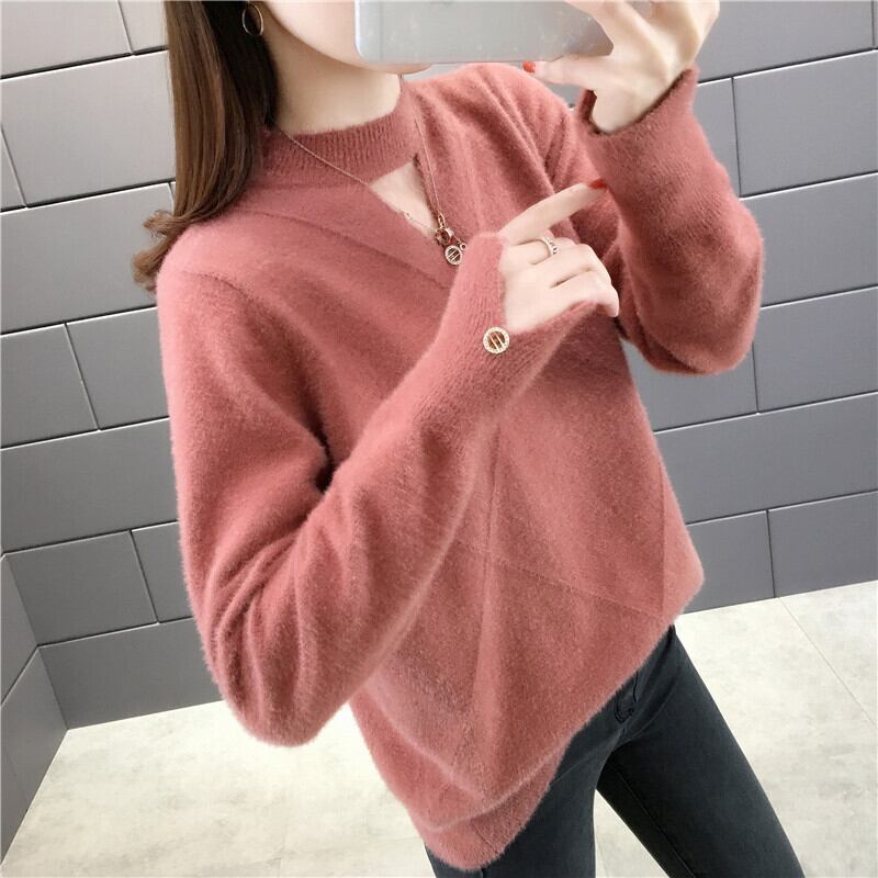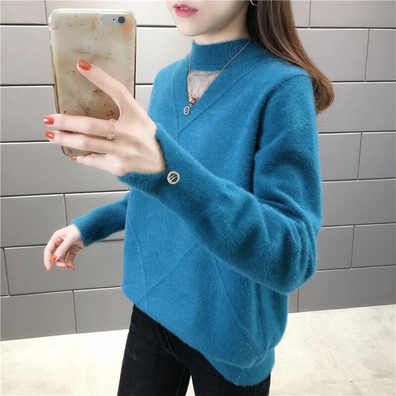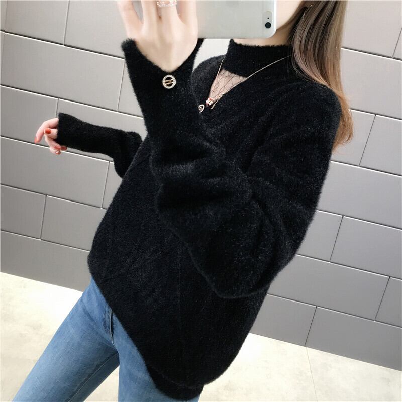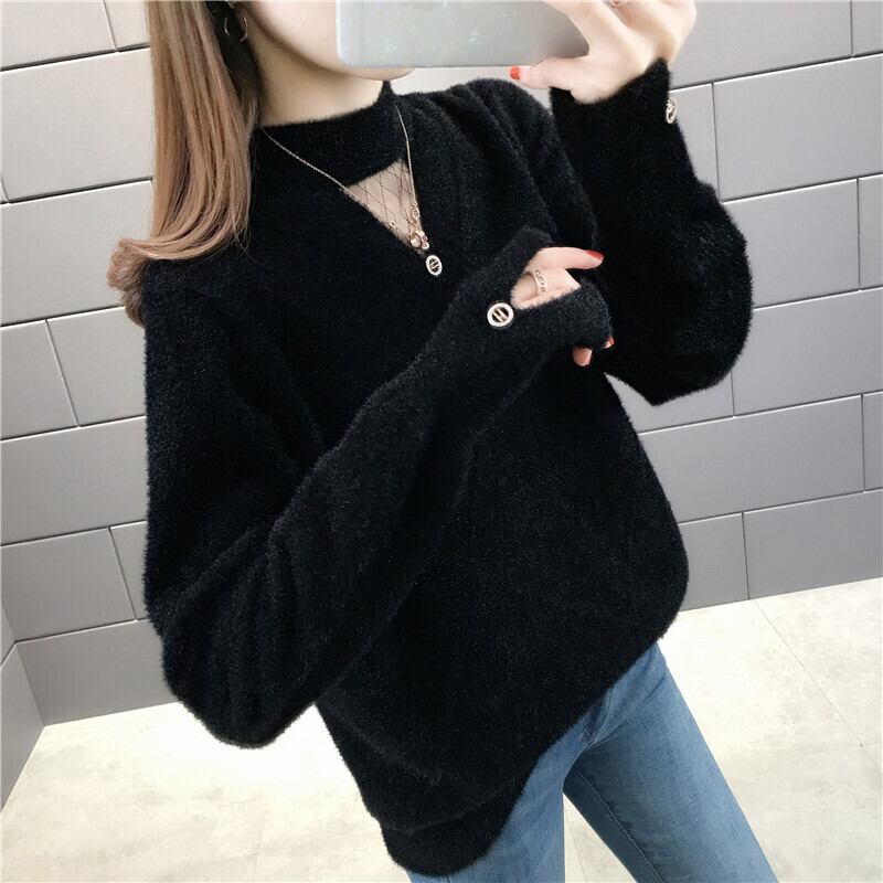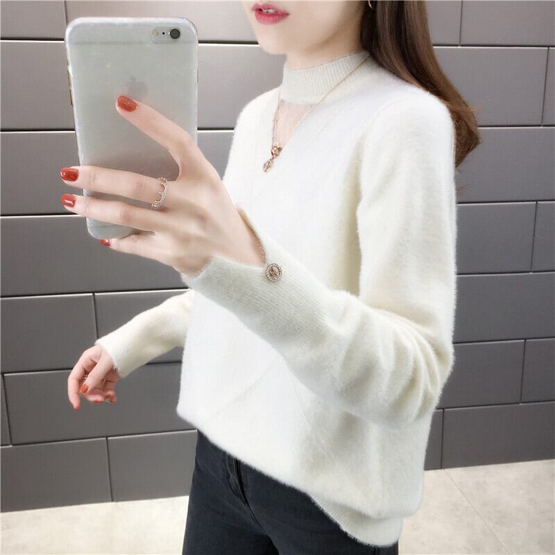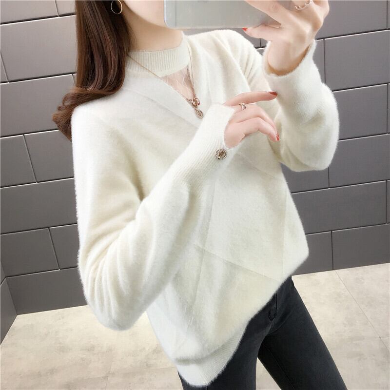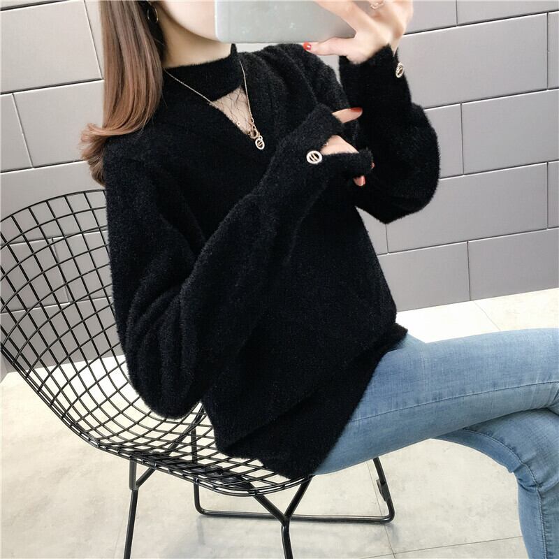 【tops】選べる5色!ハーフネック長袖メッシュ切り替え無地お洒落韓国風ニットセーターF0861