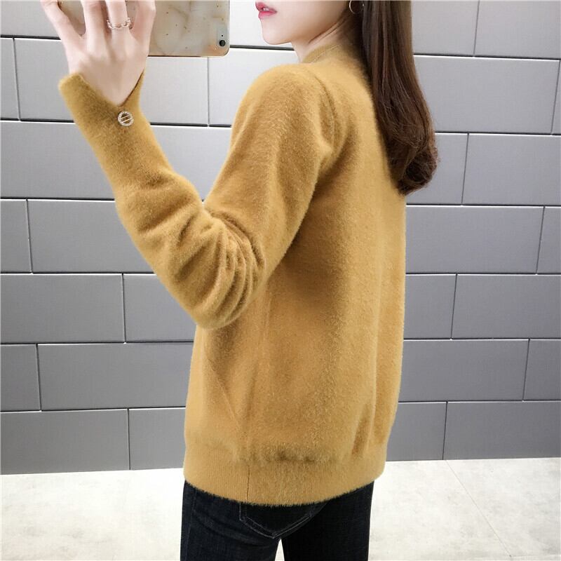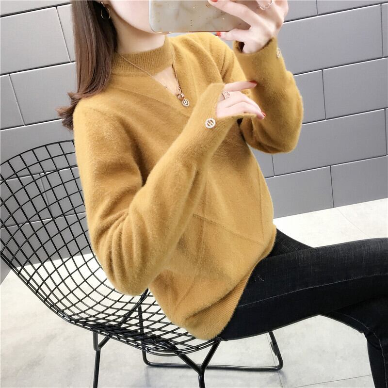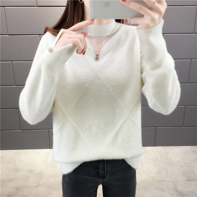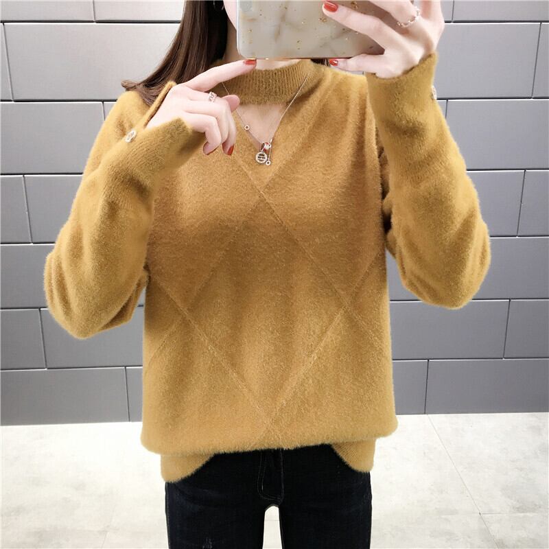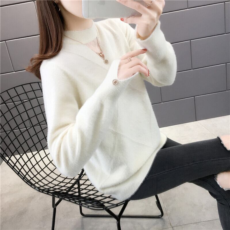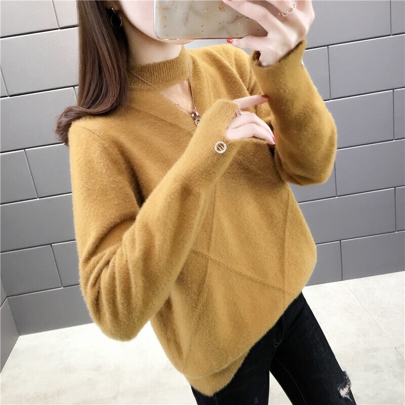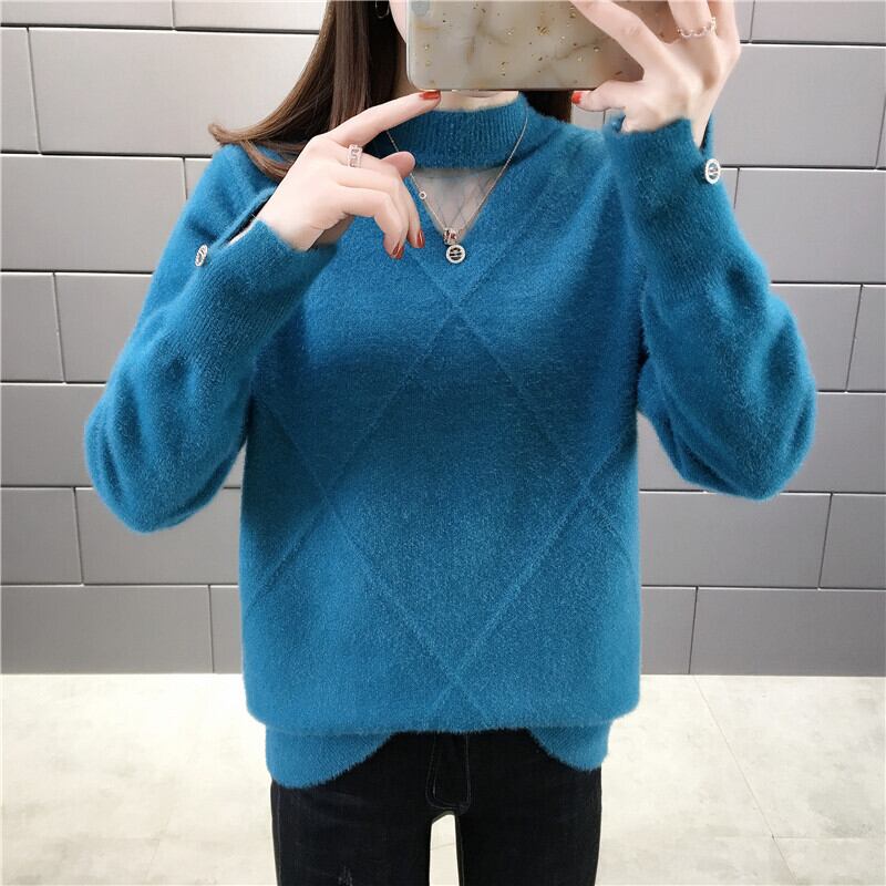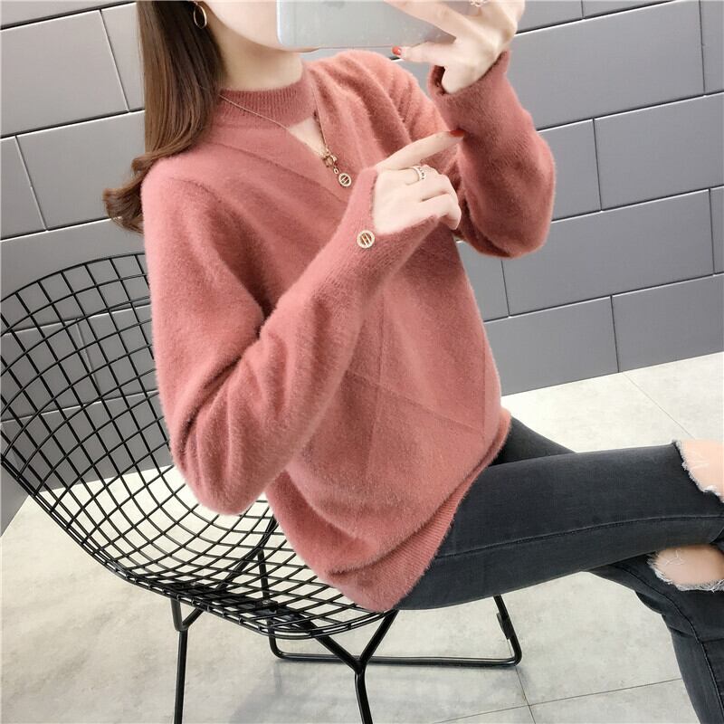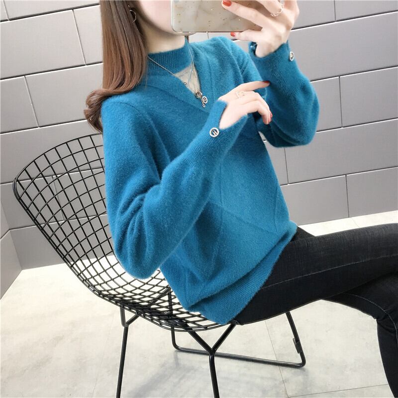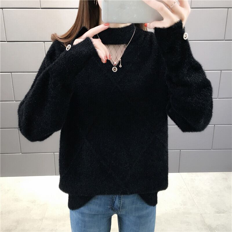【tops】選べる5色!ハーフネック長袖メッシュ切り替え無地お洒落韓国風ニットセーターF0861
