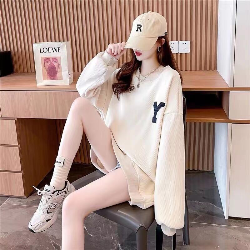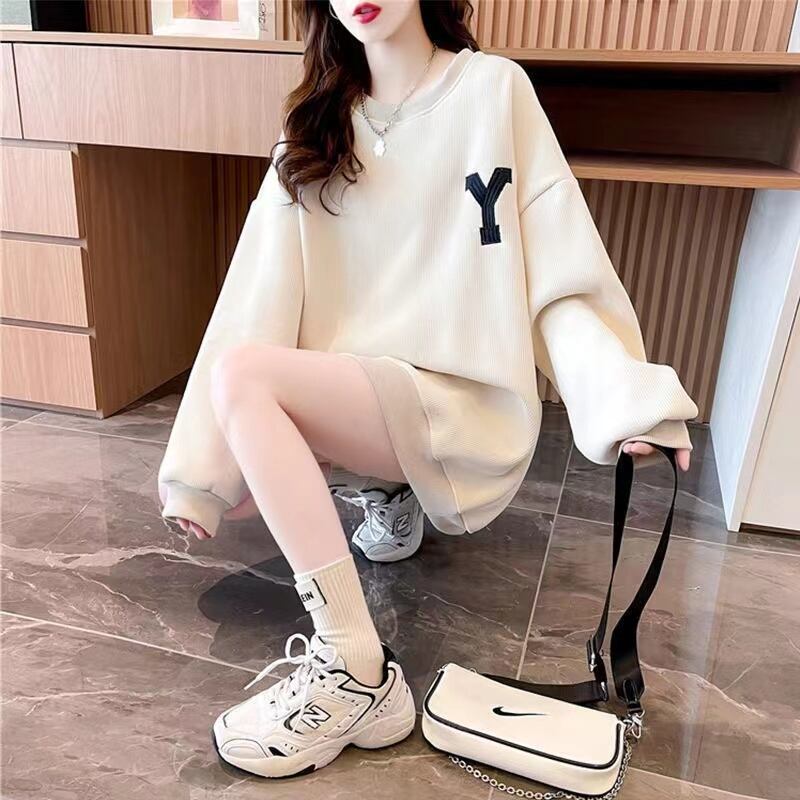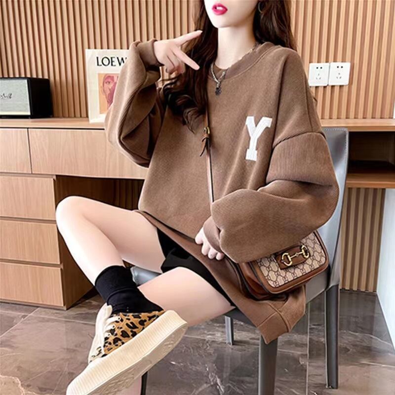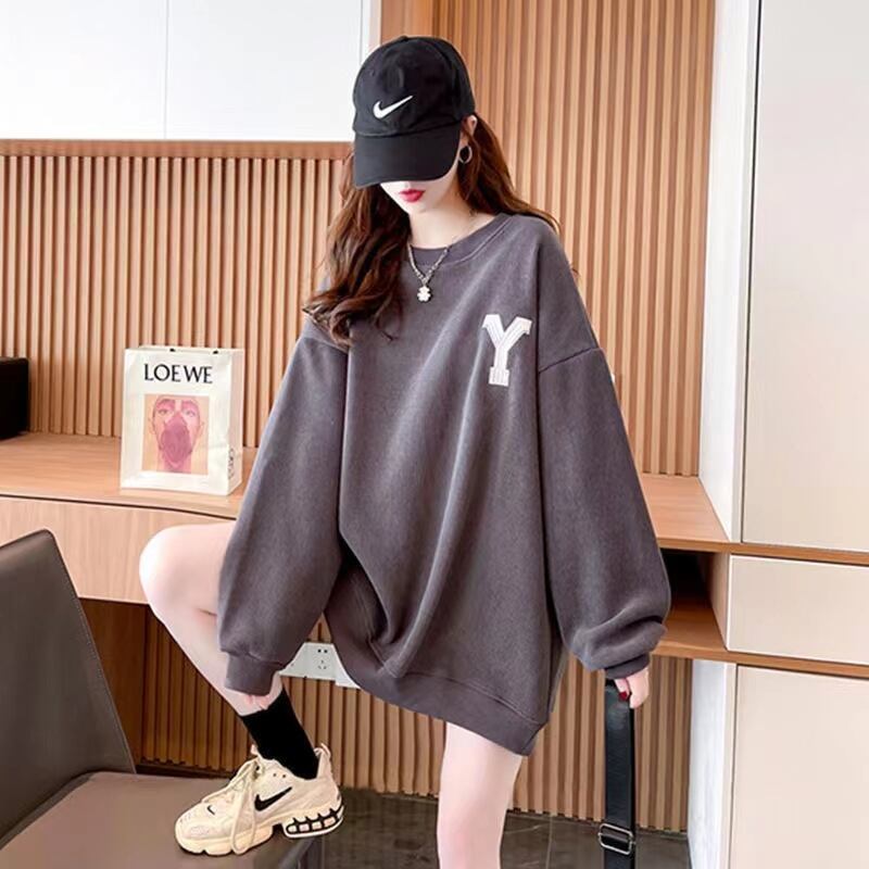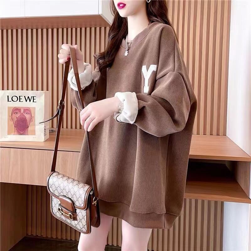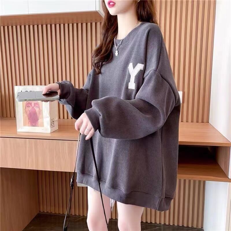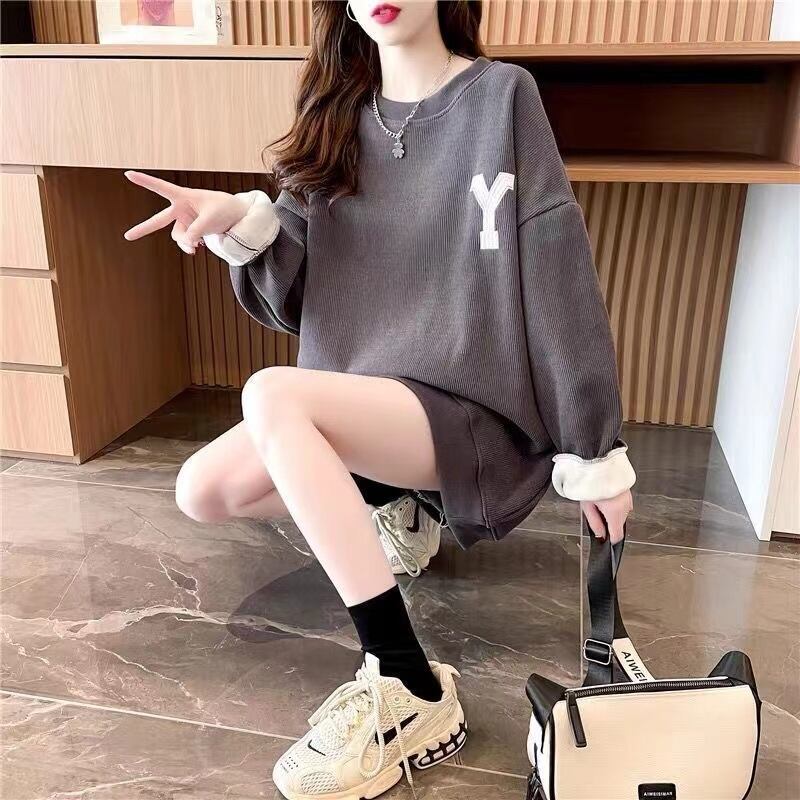 【tops】学院風アルファベット3色裏起毛秋冬新作配色ラウンドネック長袖厚手着回しパーカーF1334