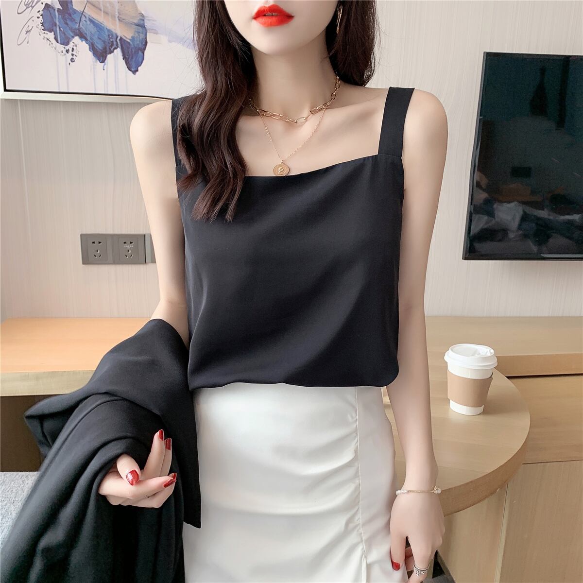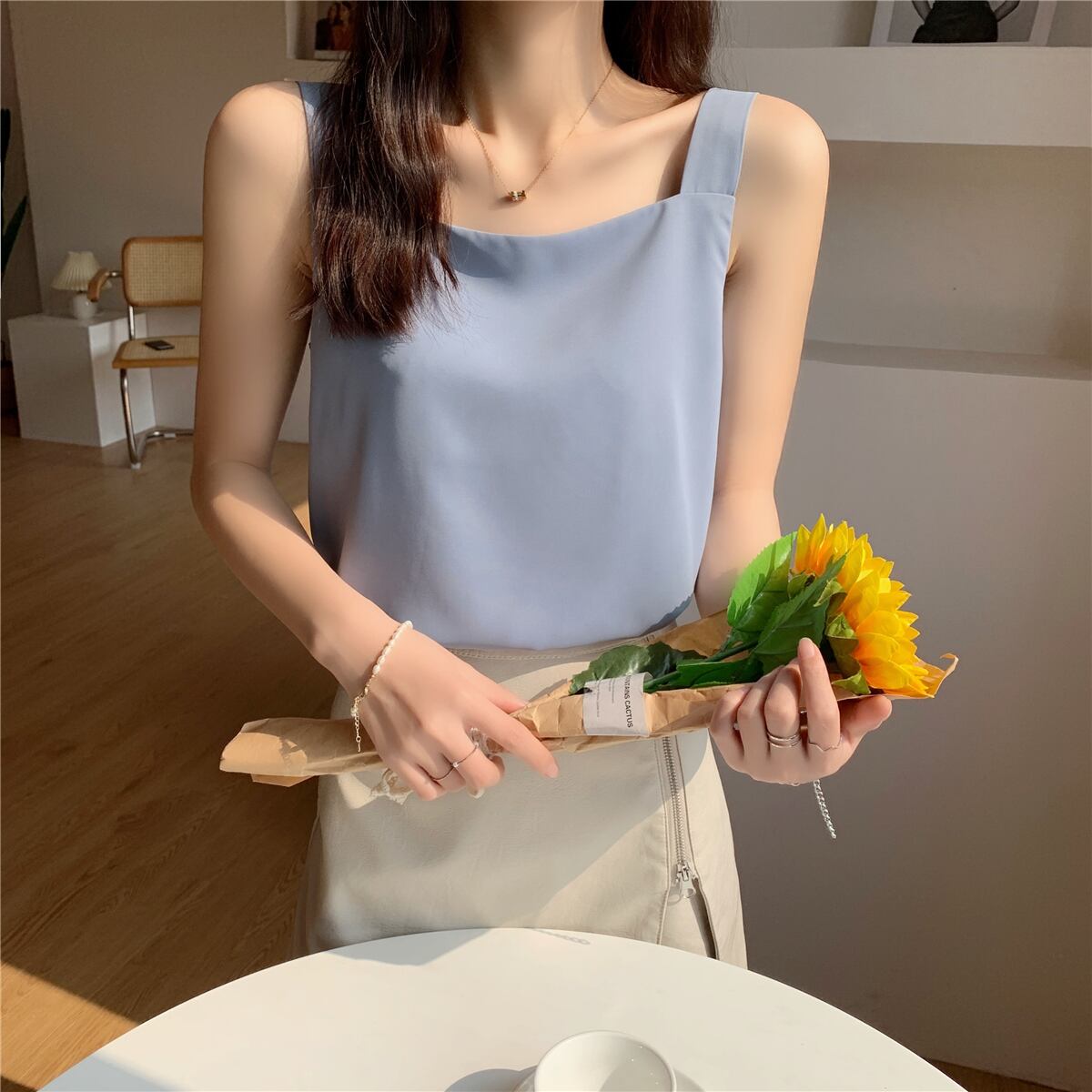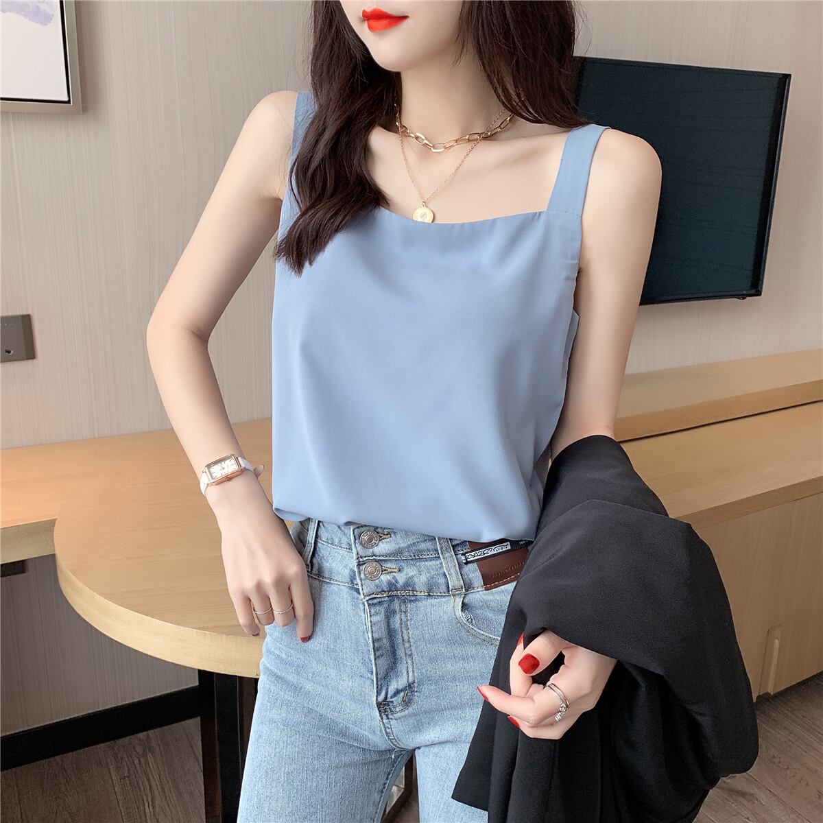 【tops】店長推薦3色夏新作韓国風INS風スクエアネック無地着回しキャミソールF1996