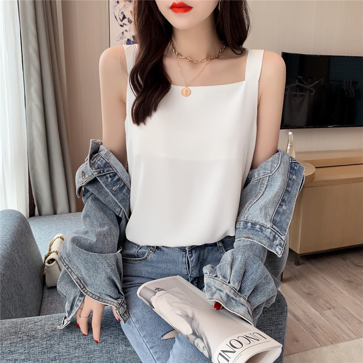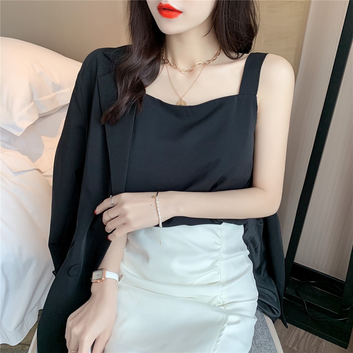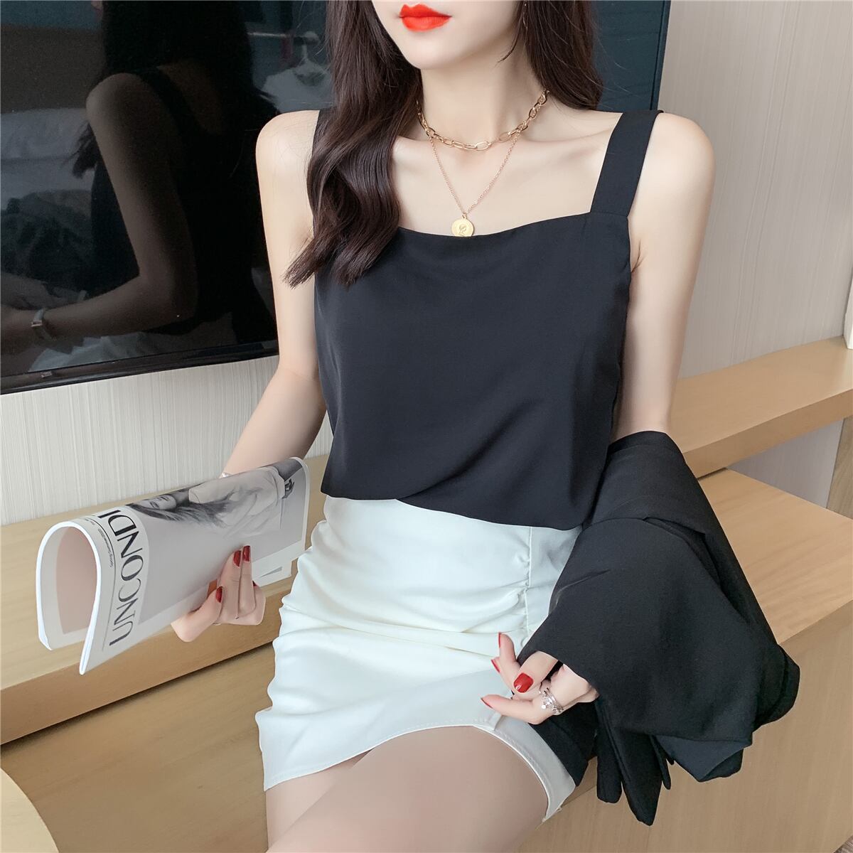 【tops】店長推薦3色夏新作韓国風INS風スクエアネック無地着回しキャミソールF1996