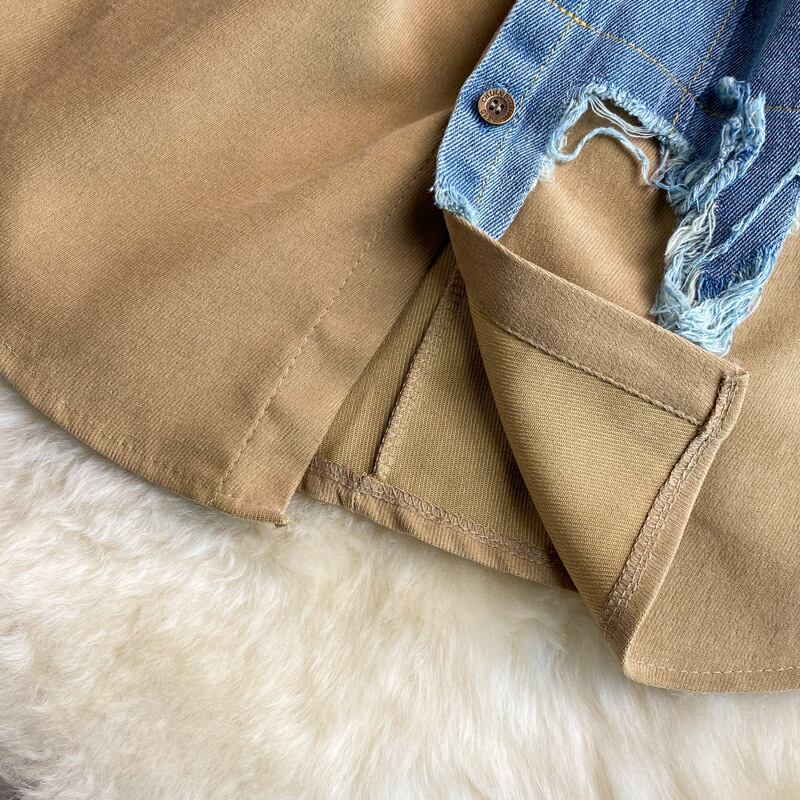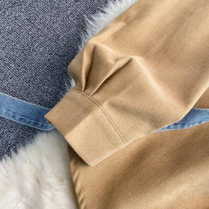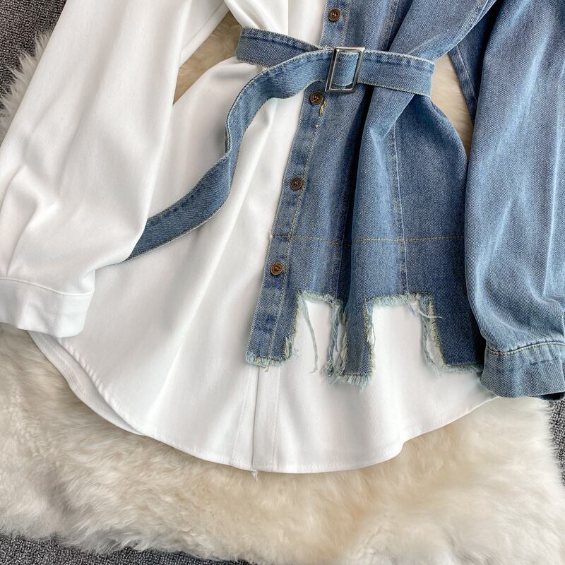 【tops】話題沸騰中春新作4色POLOネック長袖人気デニム切り替え配色着回しブラウスF4620