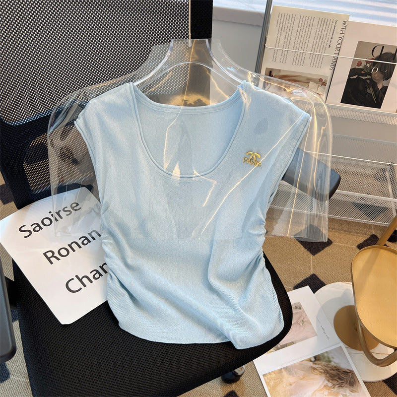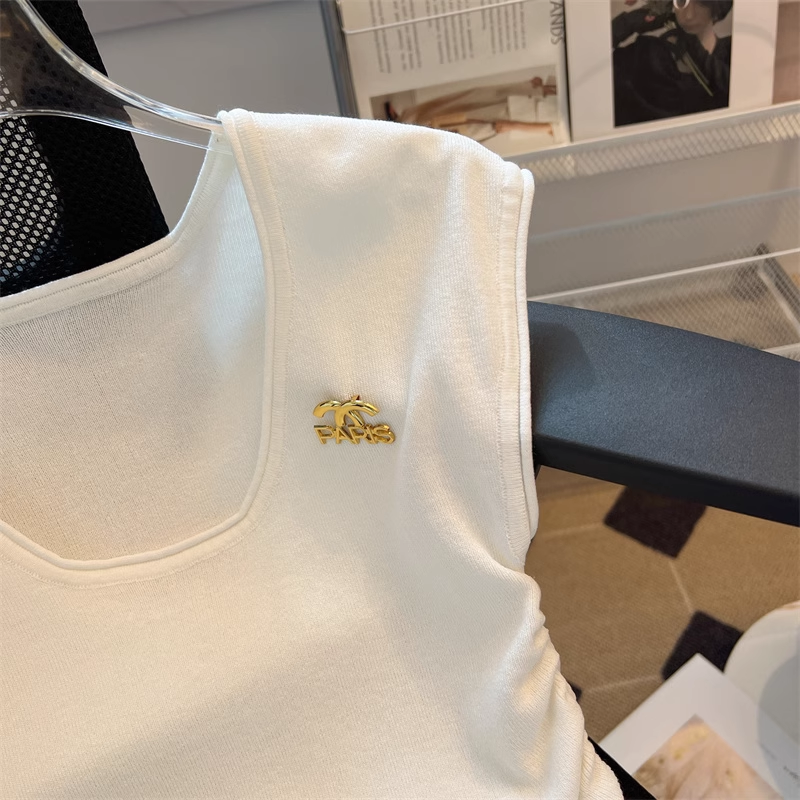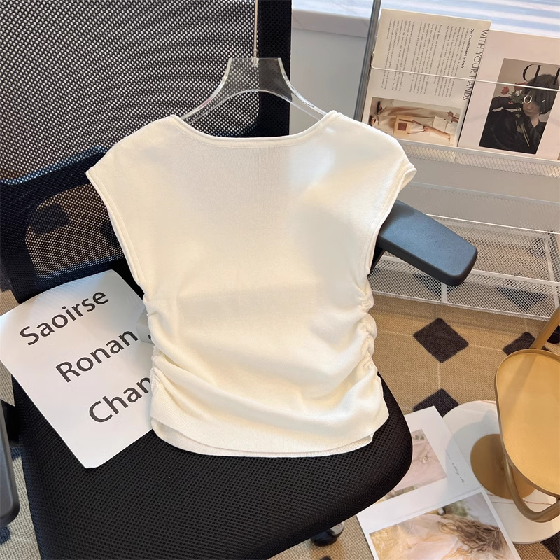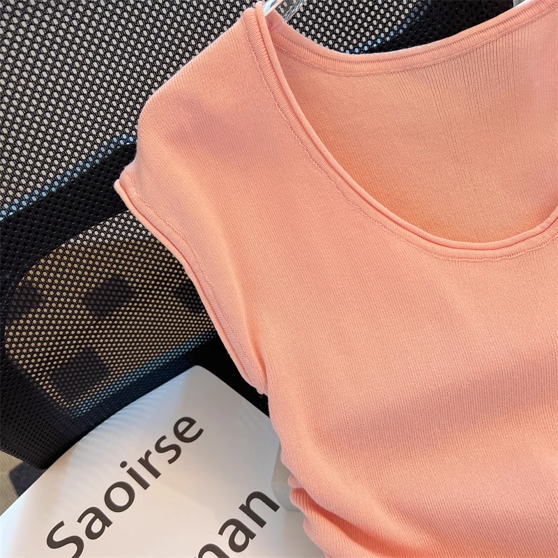 【tops】4色ノースリーブニットTシャツF7886