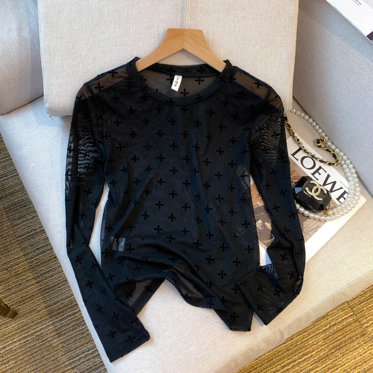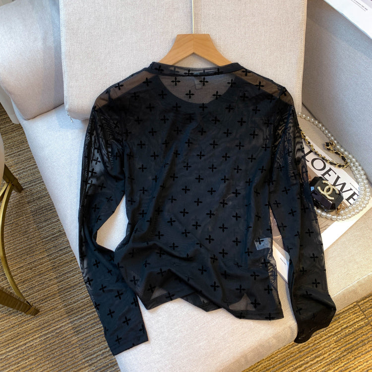 【tops】長袖透け感TシャツF8043