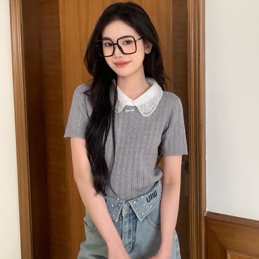 【tops】レース切り替えニットTシャツG20277