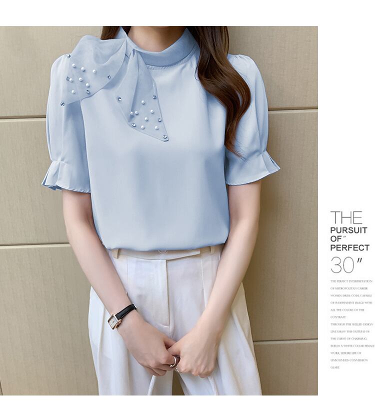 【tops】美人度アップ!スウィートリボンルーズシフォンパフスリーブフランス風シャツ G6683