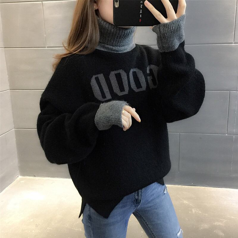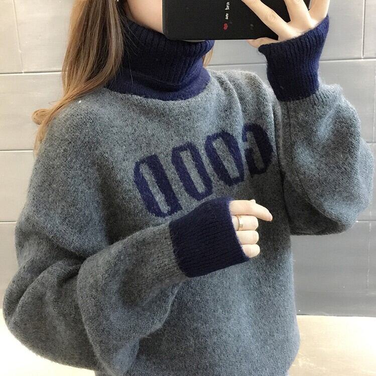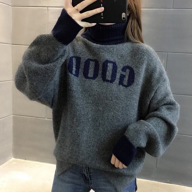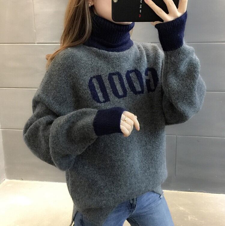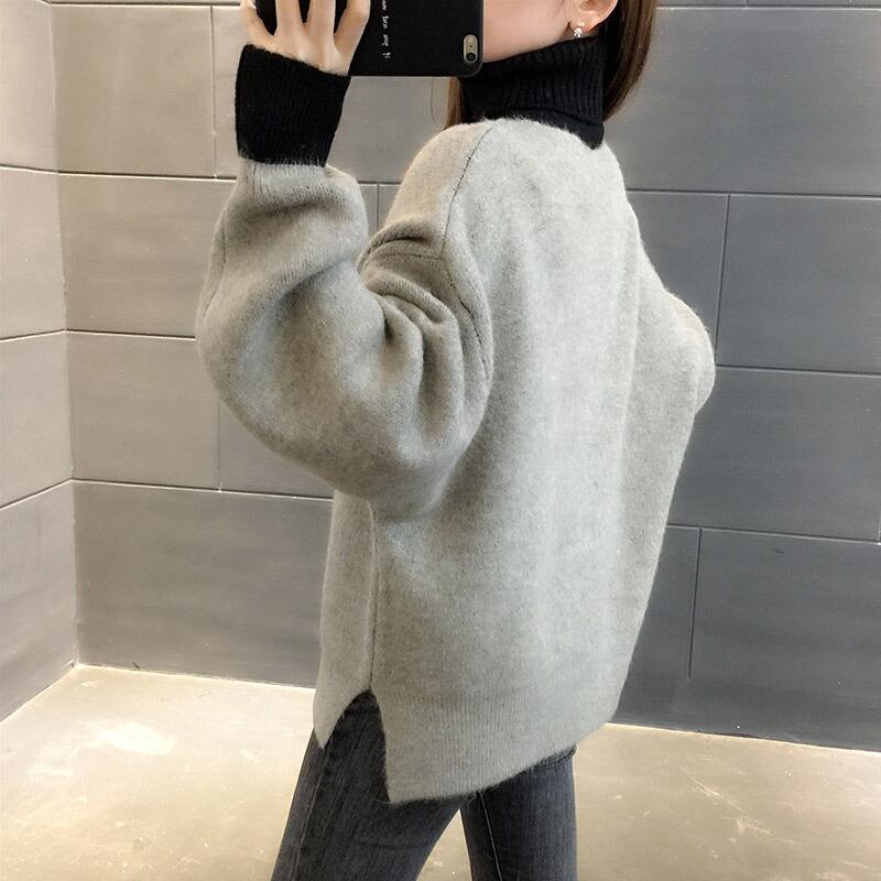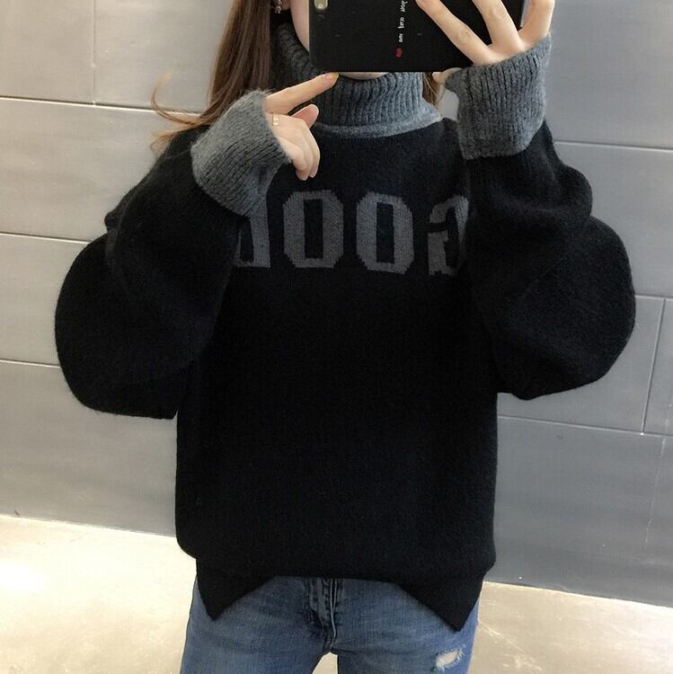 【tops】選べる3色!タートルネック長袖キャンパスお洒落ルーズ韓国風ニットセーターW0084