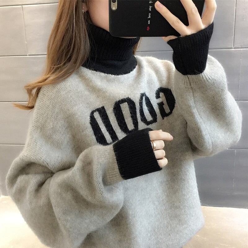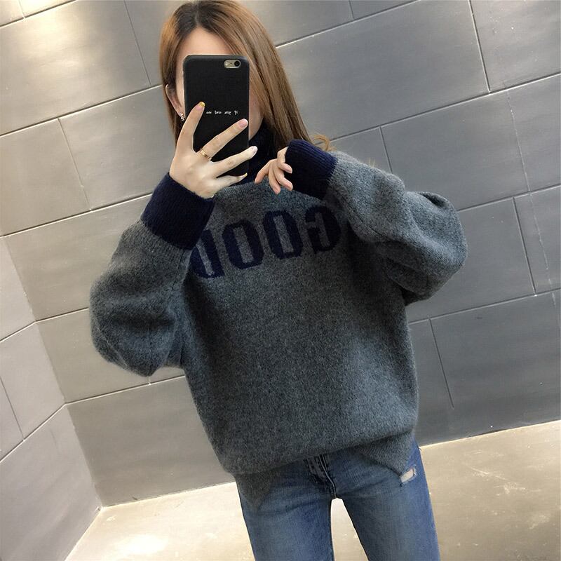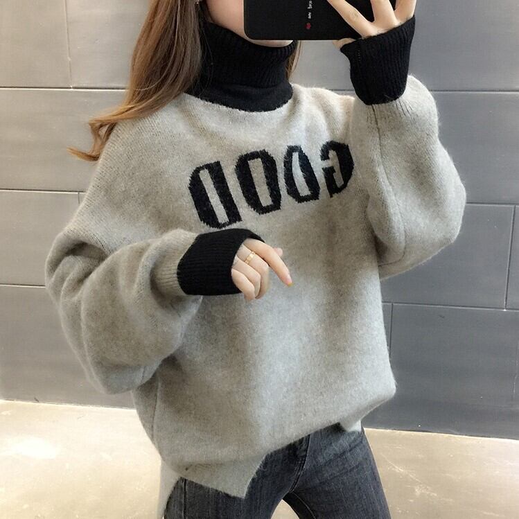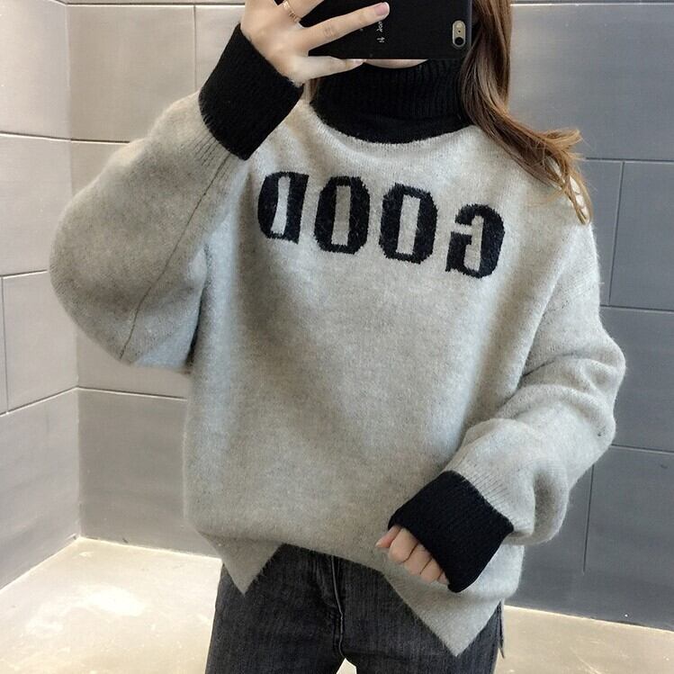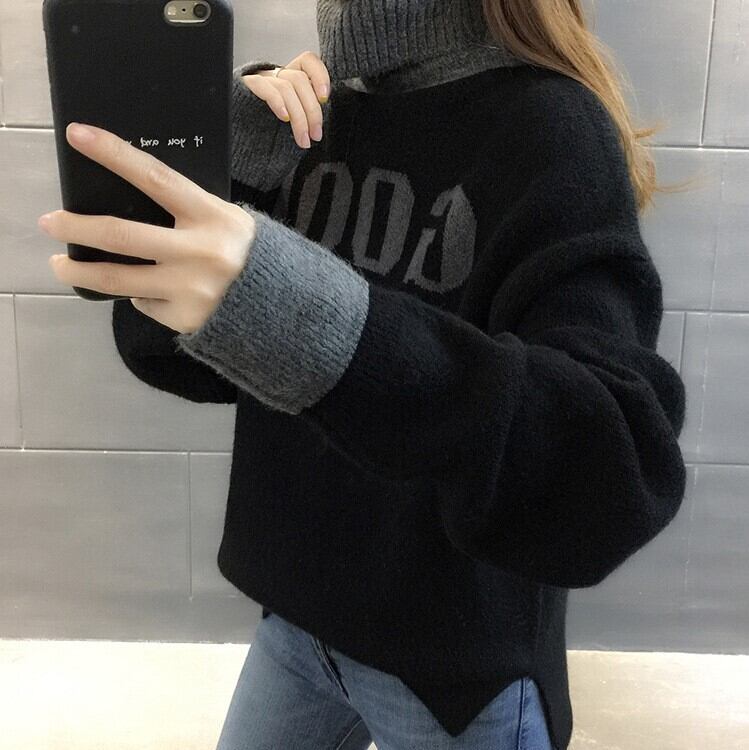 【tops】選べる3色!タートルネック長袖キャンパスお洒落ルーズ韓国風ニットセーターW0084