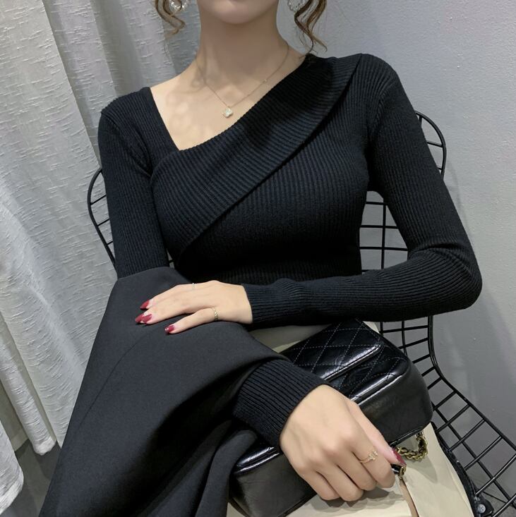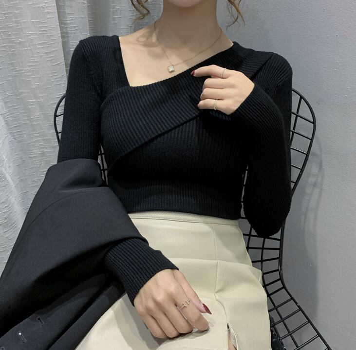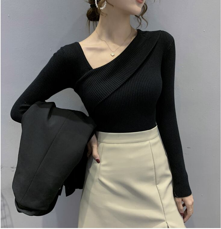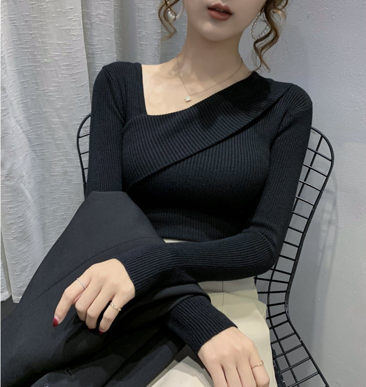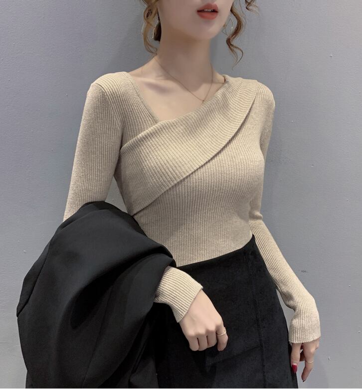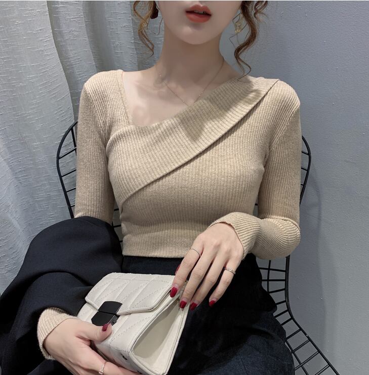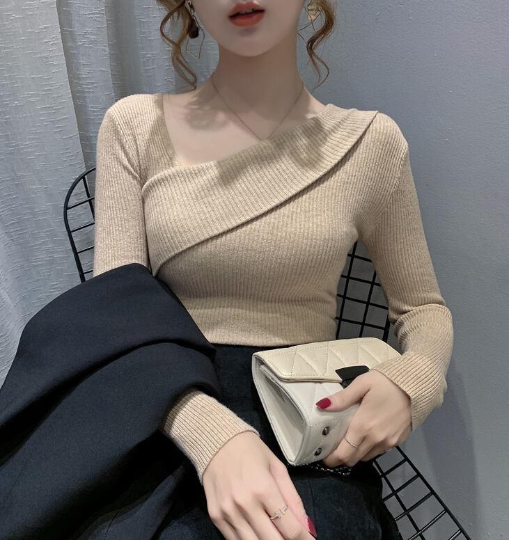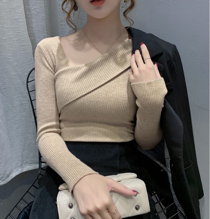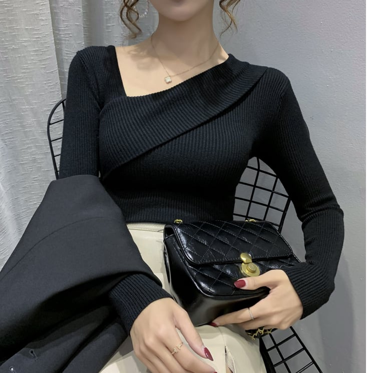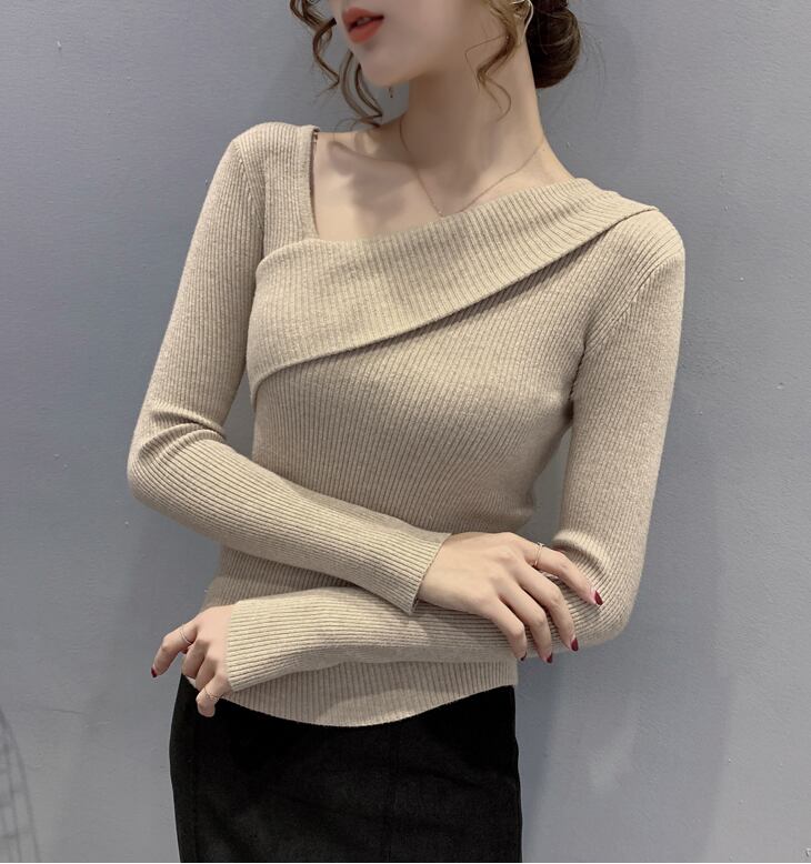 【tops】早い者勝ち! 長袖オブリークネック韓国ファッション着回しゆったりニットセーターW0782