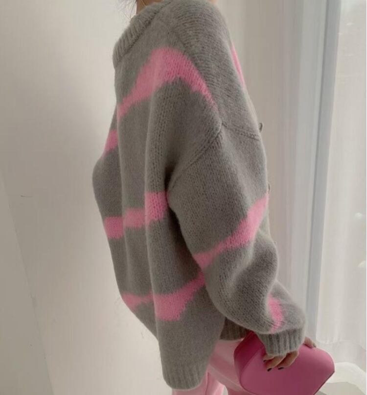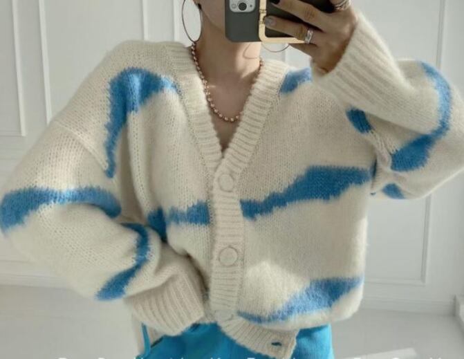 【outer】気質溢れる♪4色Vネック長袖秋配色着回しニットゆったりカーディガンW0517